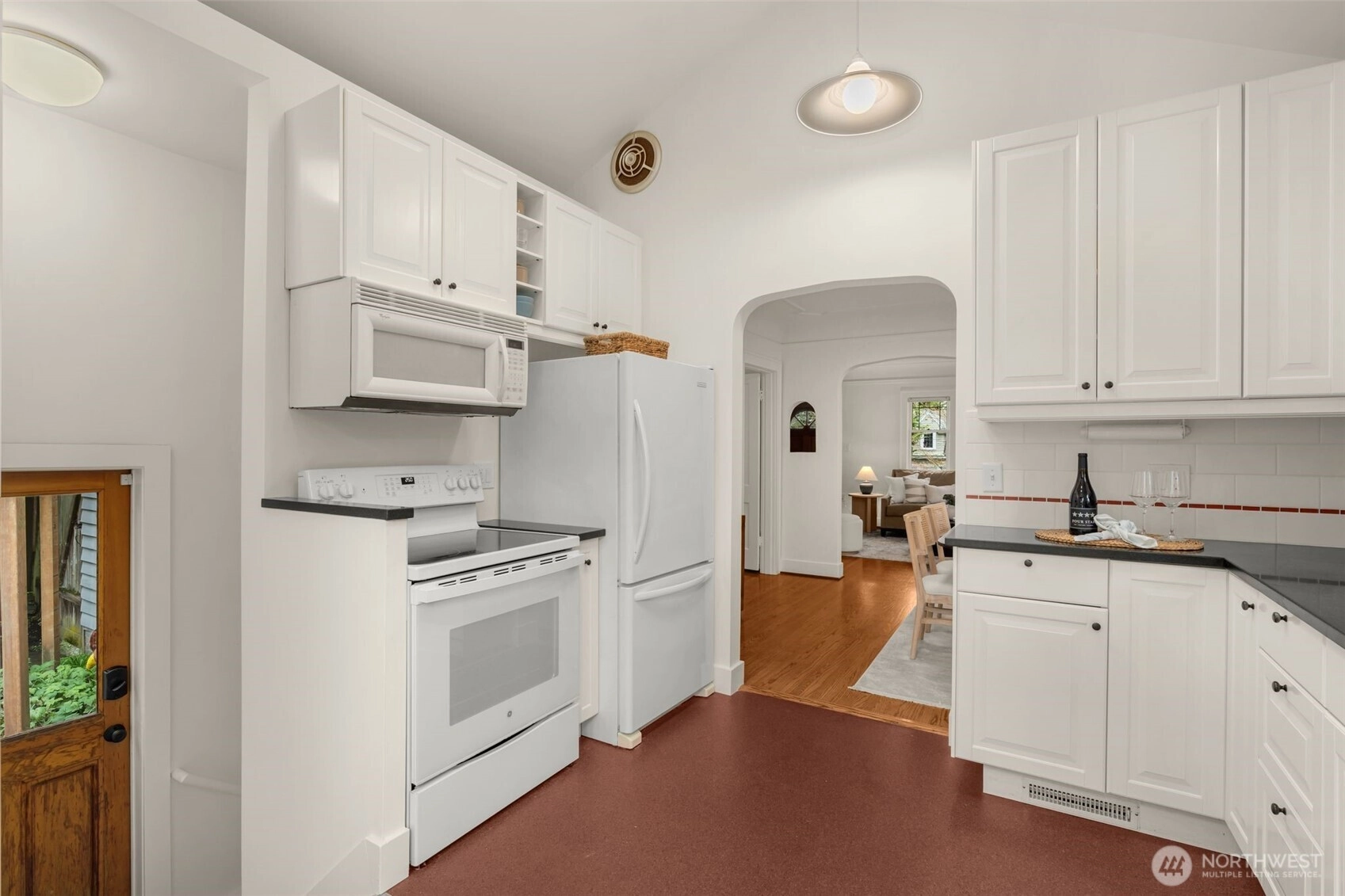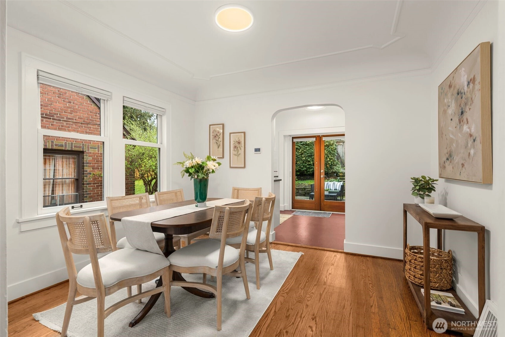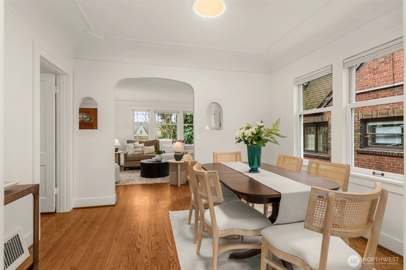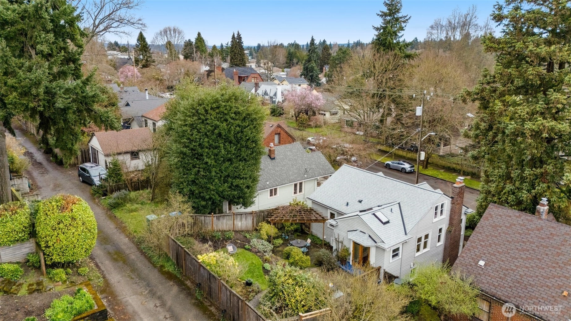 Tucked on a quiet, friendly street, this home offers an everyday lifestyle that feels both peaceful and connected to everything around you. Mornings begin with soft light filtering through vaulted ceilings and skylights in the kitchen, creating a bright, cheerful space for that first cup of coffee. The living room is anchored by a Batchelder-tiled gas fireplace and classic coved ceilings that add character and timeless appeal. The dining room sets the stage for everything from intimate dinners to casual gatherings. Completing the main floor are 2 bedrooms and a full bath. Downstairs offers a flexible space ready to meet your needs. A third bedroom? A media or hang-out room? A potential income-generating suite for Airbnb or long-term rental? The choice is yours. The spacious, terraced backyard creates multiple areas to gather, relax and entertain. Host summer dinners on one level, set up a firepit or lounge area on another and still have room to play and garden. It’s a yard that adapts to every occasion from lively celebrations to quiet Sunday mornings with a cup of tea. Beyond your front door, the neighborhood invites you outside. Take a morning walk or jog along the trails of Ravenna Park or head to Maple Leaf Reservoir Park where there’s something for everyone; swing sets, pickleball courts, and open fields to kick a ball around. Reward yourself afterward with a treat from Macrina Bakery just across the street.