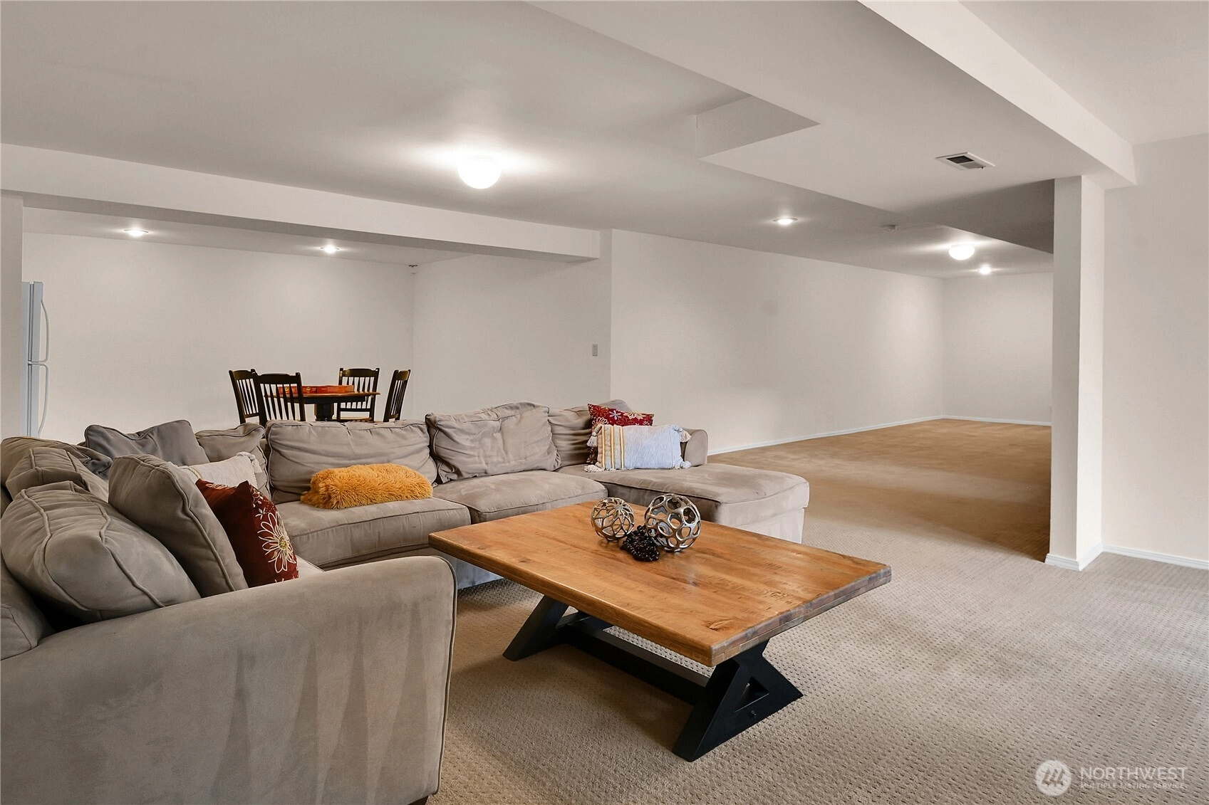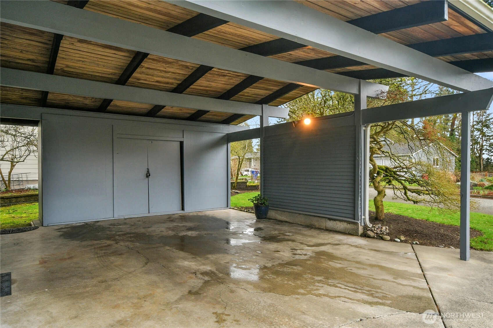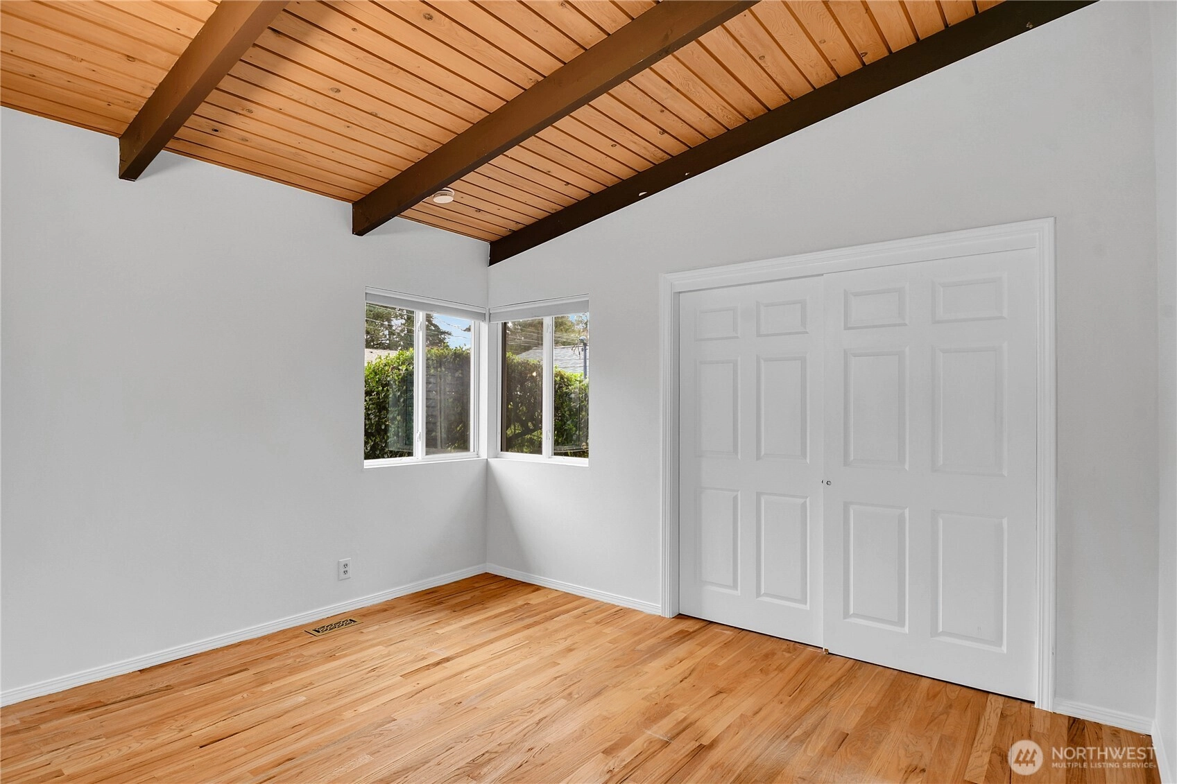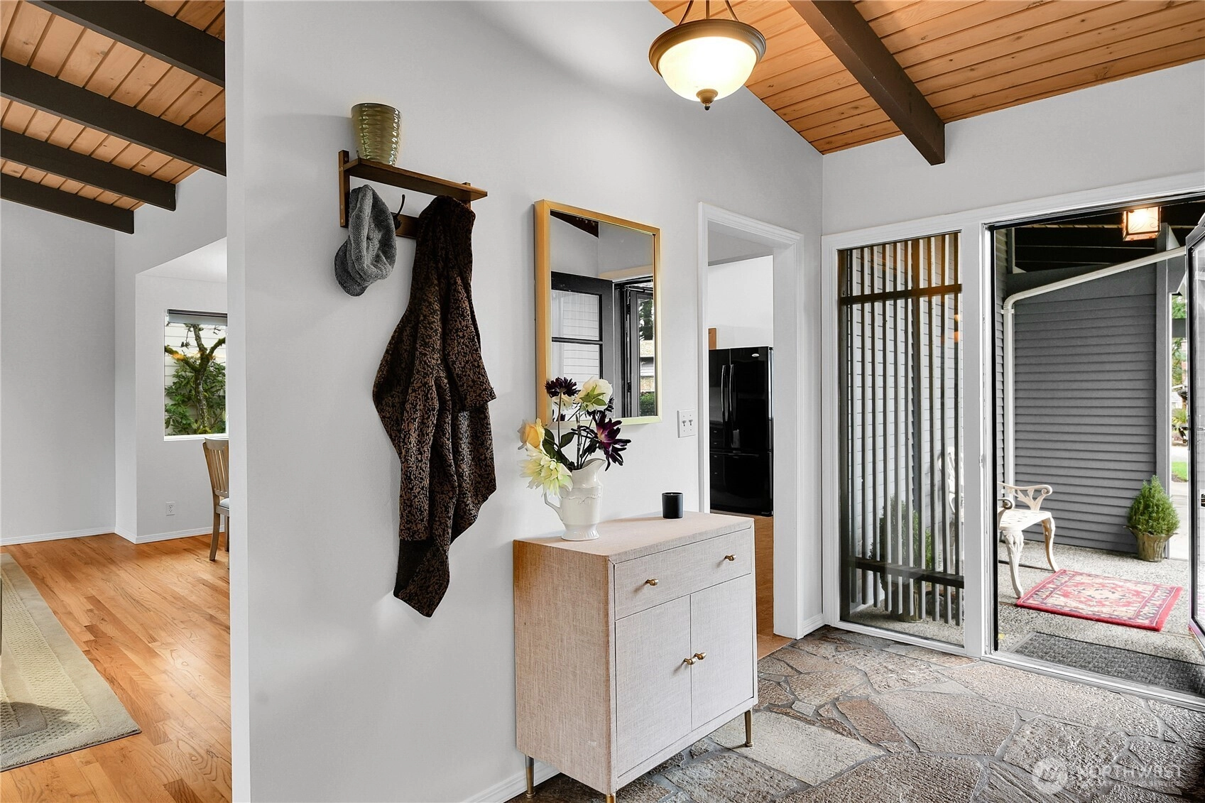 Spacious and light-filled home in the desirable Newport Hills neighborhood offering 2,940 SF, 4 bedrooms, and multiple gathering spaces designed for comfortable living and entertaining. The main level features a wood burning fireplace, soaring alpine wood-beamed ceilings and expansive windows that open to serene greenbelt views, creating a warm and inviting atmosphere throughout the living spaces. The kitchen includes an eat-in breakfast nook and connects easily to the formal dining area, making it ideal for both everyday living and hosting. The main level also offers a private primary suite with ensuite bath, along with two additional bedrooms. Downstairs, the expansive lower level provides exceptional flexibility with a large rec room featuring a wood-burning fireplace, wet bar, and refrigerator, perfect for movie nights, game days, or entertaining guests. A fourth bedroom with a full bath on this level creates an ideal space for guests. Enjoy the outdoors from two separate outdoor living areas, including an upper-level deck overlooking the greenbelt and a lower patio with access to a private yard. Additional highlights include abundant storage and covered parking for two vehicles. Conveniently located minutes to I-405 and I-90, with easy access to the shopping, dining, and amenities of Factoria and Newcastle, this home offers space, comfort, and a fantastic Eastside location in the coveted Bellevue school district.