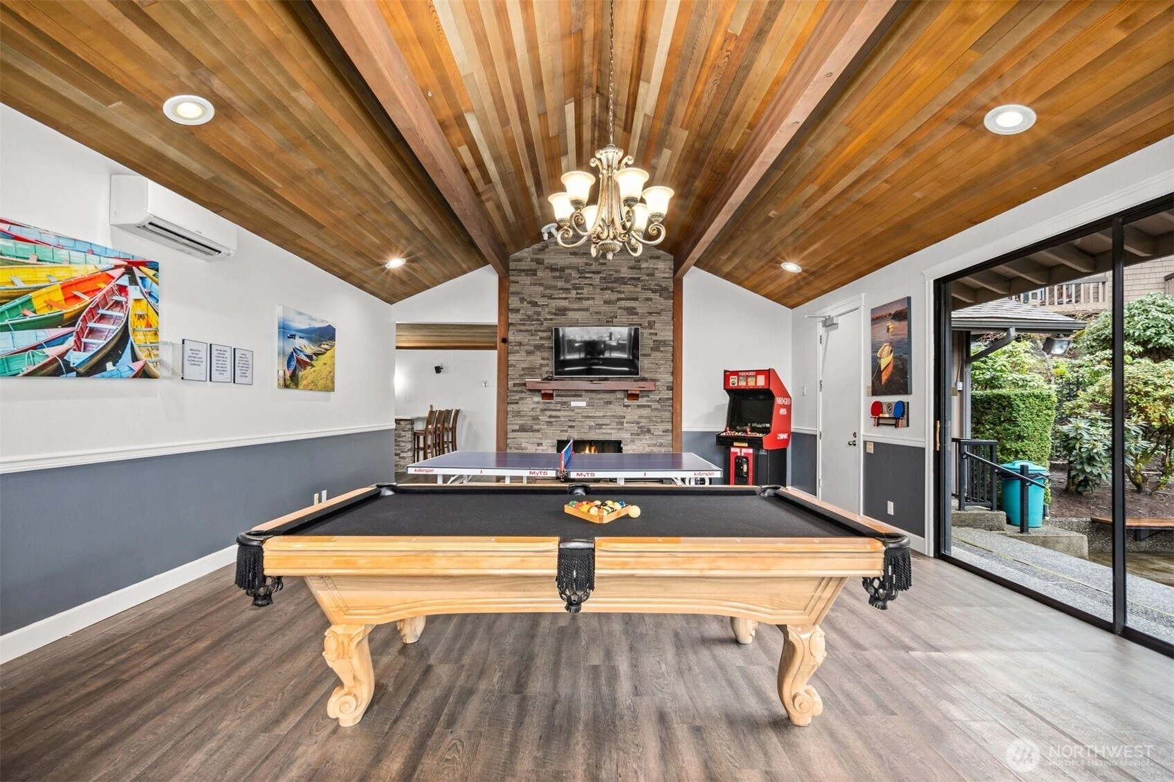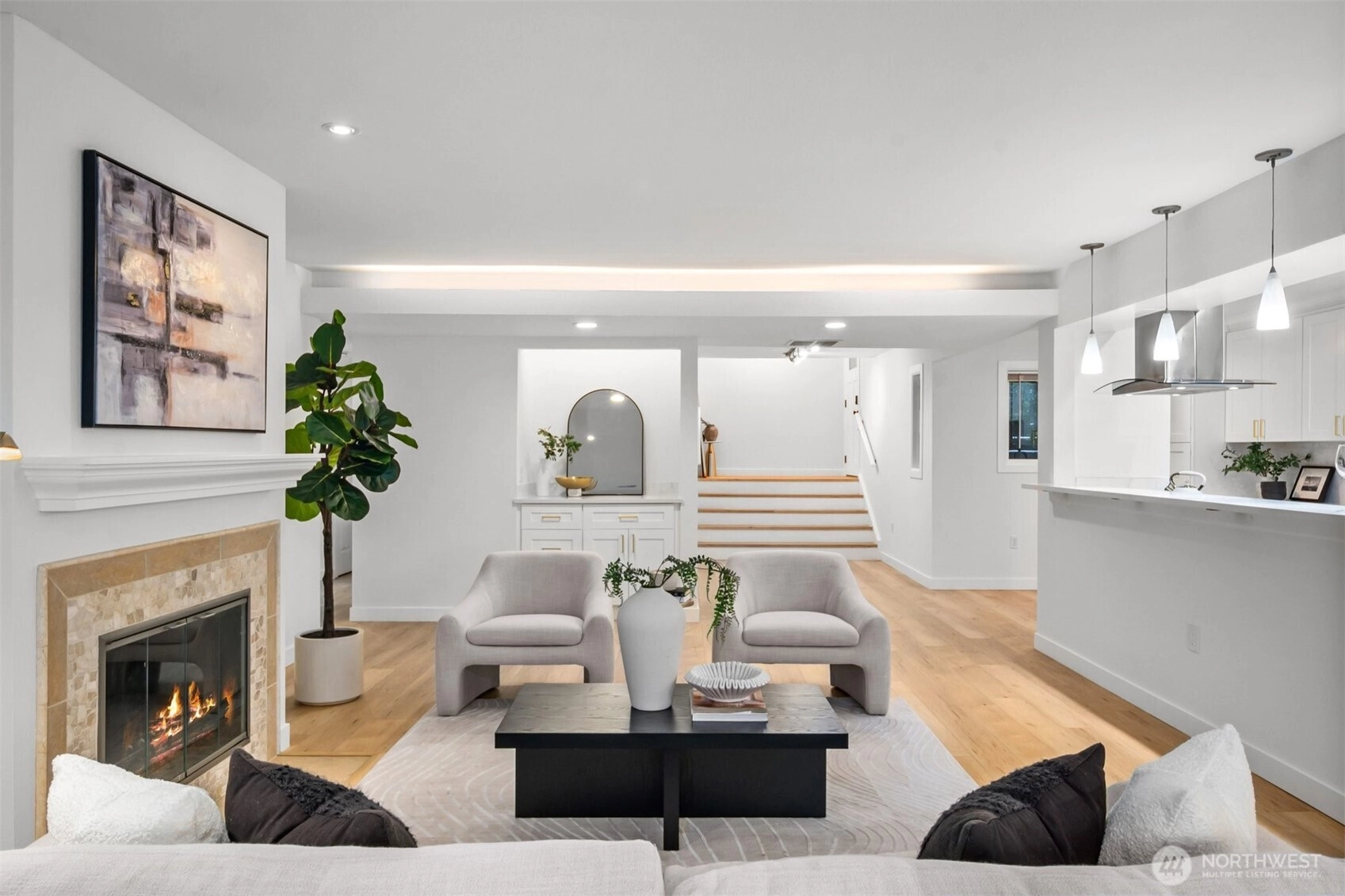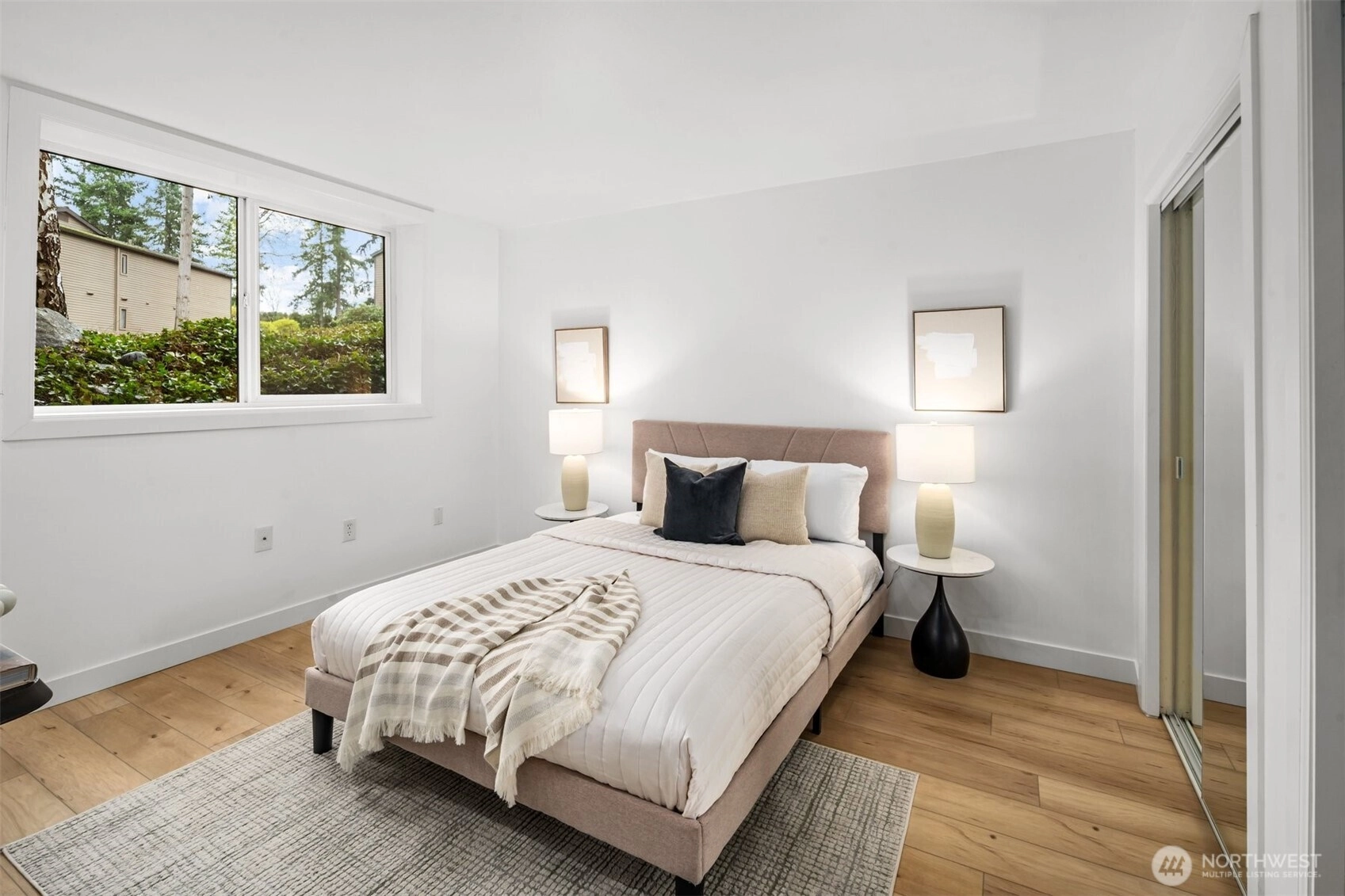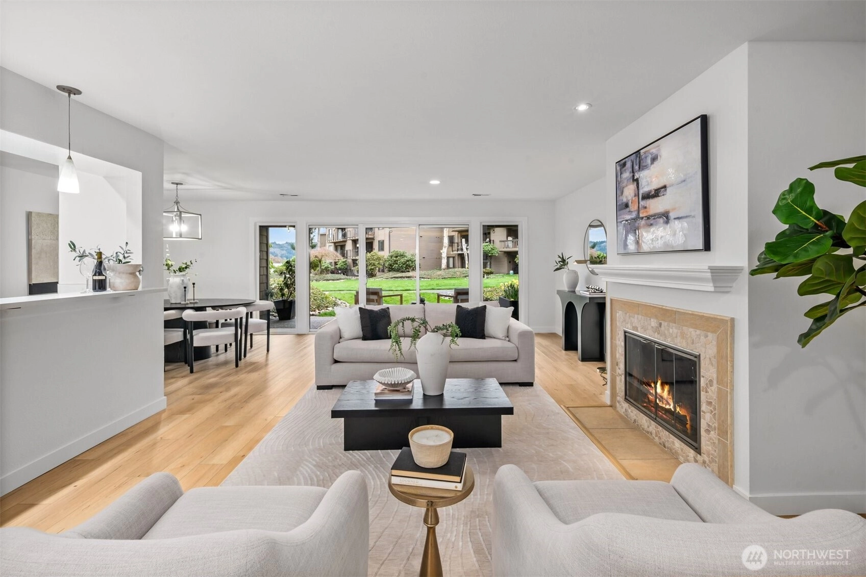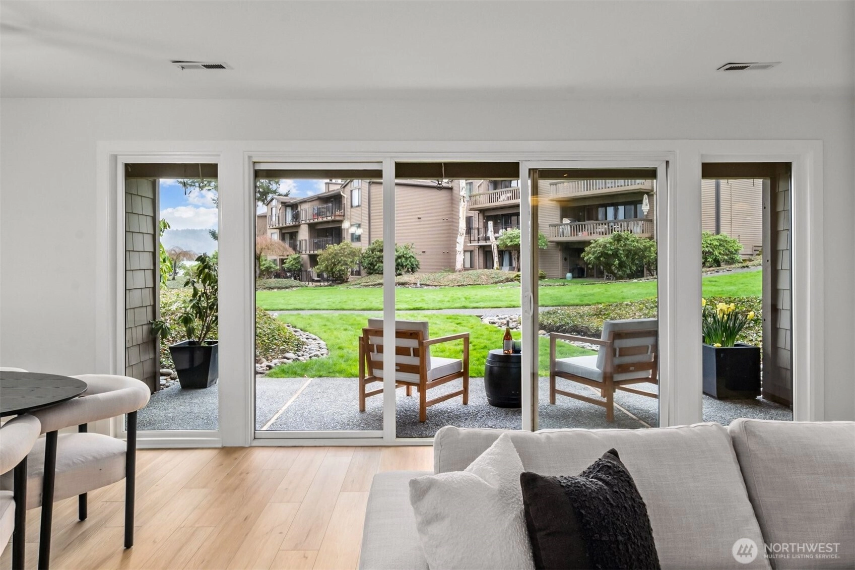 A true retreat for the at-heart lake lover, this rare 3-bedroom + flex room residence on Lake Sammamish offers the largest floor plan, captivating water views, and a DEEDED boat slip. Nestled within the coveted Lake Villas, a gated, resort-style community, you’re welcomed home by lush, manicured grounds & a sense of everyday escape. Perfectly south-facing, this light-filled & tastefully updated retreat features a spacious living area w/ stunning lake views, a cozy fireplace, & a charming coffee bar—flowing seamlessly to a walk-out patio, ideal for sunrise mornings & glowing sunset evenings over the water. The timeless kitchen shines w/quartz countertops, newer appliances, & sleek modern cabinetry, while updated baths, fresh finishes, & a newly painted interior create an ELEVATED LIVING experience. A versatile flex space offers endless possibilities—home office, fitness studio, or additional storage. Enjoy highly sought-after, sizable deeded boat moorage, making spontaneous lake days effortless—from early morning surf sessions to sunset cruises. Two reserved parking spaces, EV charging station, & ample interior & patio storage add ease to everyday living. At Lake Villas, pride of ownership is evident w/ beautifully maintained grounds, an outdoor pool, hot tub, sauna, clubhouse, gym, & space for kayaks/paddleboards. Ideally located near Microsoft, Idylwood Park, Marymoor Park, & light rail—this is more than a home; it’s a lifestyle, where every day begins & ends with the water.