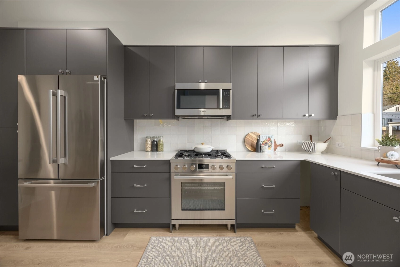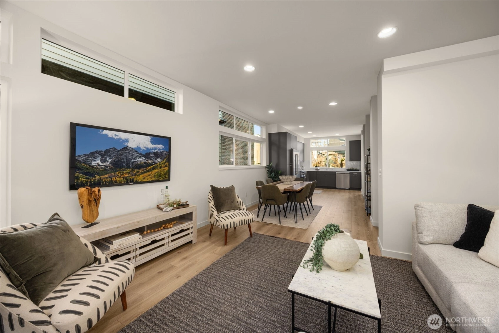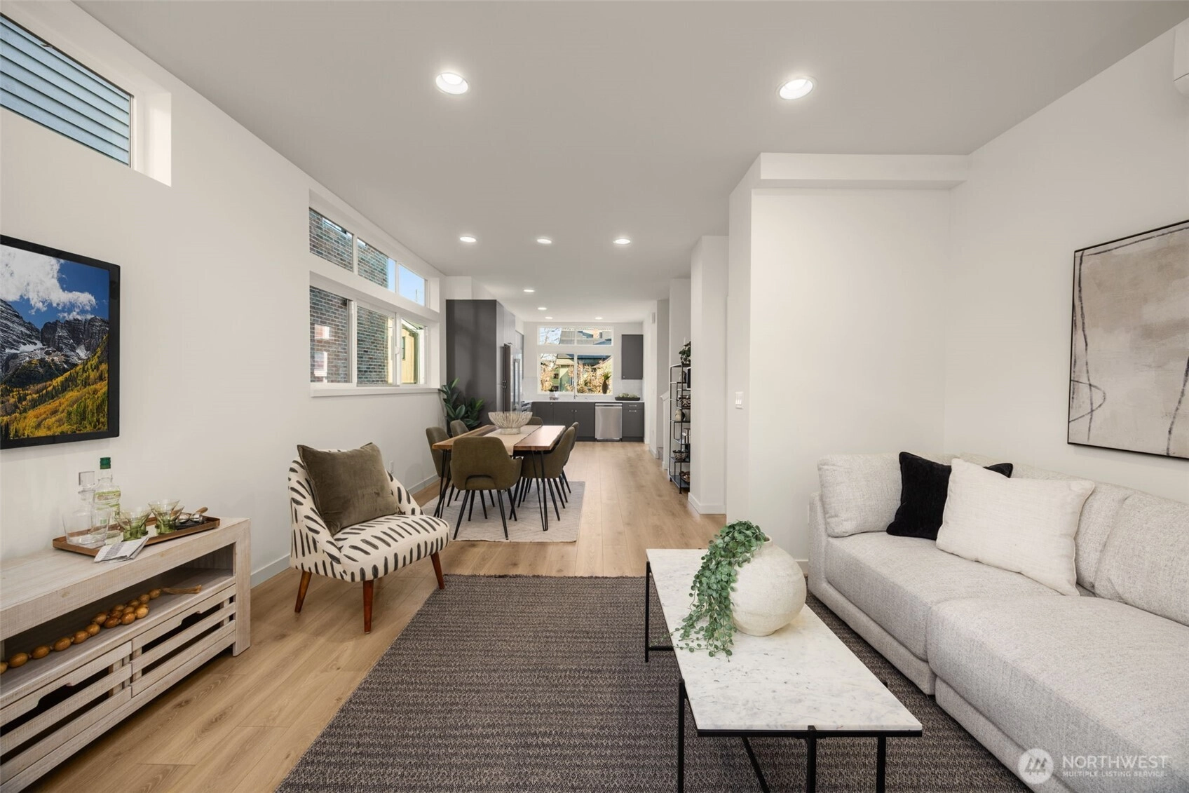 Tucked along a quiet, tree-lined stretch of 12th Ave NW, this Willow 12th residence delivers thoughtful design, outdoor living on multiple levels, and an approachable entry point into one of Ballard’s most livable pockets. A private, partially covered courtyard sets the tone—ideal for morning coffee, container gardening, or an evening unwind—before stepping inside to a warm, modern interior finished with wide-plank floors, clean lines, and abundant natural light. The main level flows easily from a well-appointed kitchen with gas cooking and contemporary cabinetry through the dining area and into the living room, where oversized windows and courtyard access blur the line between inside and out. One level hosts a secondary bedroom, a full bath, and a flexible office or den—perfect for remote work, creative space, or a guest retreat. The top floor is reserved for the primary suite, offering privacy, generous proportions, and direct access to a personal balcony—your own elevated escape above the neighborhood. Comfort and efficiency are built in, with modern systems, smart storage, and dedicated parking adding everyday ease. Just blocks away, enjoy Soundview Playfield, Baker Park, Golden Gardens, and a growing mix of local dining and shopping, all while staying connected to Ballard, Crown Hill, and beyond. A home designed to feel grounded, livable, and quietly special—this is Willow 12th living in its most refined form. (Call to learn about rate incentives)***