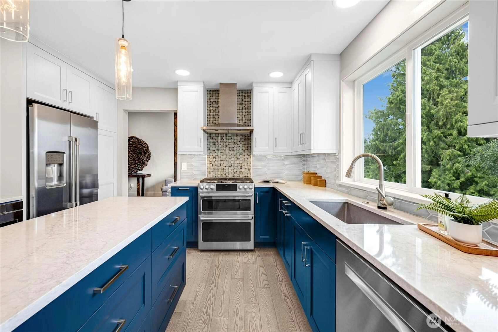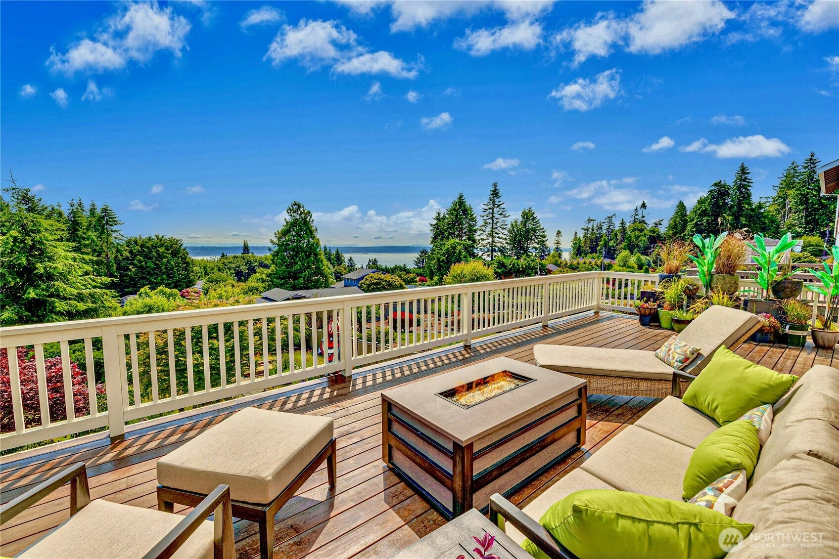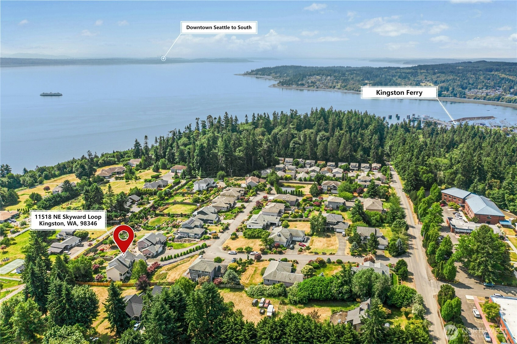 Experience ICONIC SOUND VIEWS & LUXURY LIVING. Perched in Kingston’s premier Skyline neighborhood, this brilliantly remodeled home offers a rare duet of tranquility and seamless city access via the Seattle Fast Ferry. Capture the essence of the Pacific Northwest with panoramic water and Cascade views from most windows, plus Mt. Rainier and the Space Needle. ~THE HEART OF THE HOME: A chef’s kitchen redesigned for entertaining, featuring new quartz countertops, stainless appliances, soft close cabinets and a massive walk-in pantry. The open layout flows naturally into versatile gathering spaces, all framed by stunning everchanging vistas. ~RETREAT & RECHARGE: Revel in sunrises from your serene primary suite, complete with a spa-inspired bath and large walk-in closet. 2 additional bedrooms, an office and a full bath complete the upper level. ~VERSATILE LOWER LEVEL: The walk-out basement features a huge bedroom with a walk-in closet, an updated full bath and two bonus spaces; perfect for multi-generational living, a high-end home office, or a professional gym and studio - all with scenic views. ~OUTDOOR OASIS: Enjoy the 900sf wrapped deck, an all-day destination to watch passing ships or unwind in the hot tub. Set on a lush, fully-fenced half-acre with mature landscaping, you'll also appreciate the new roof, central vacuum, no HOA, and being just minutes to both ferries, beaches, and golf at Whitehorse. This isn't just a home; it’s a true opportunity for a life well-lived.