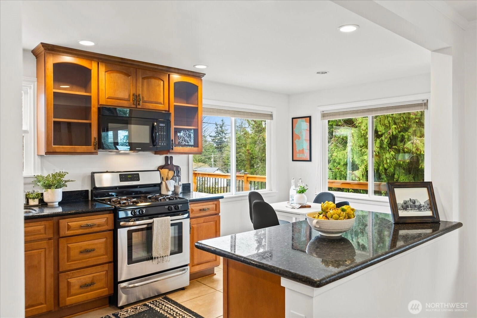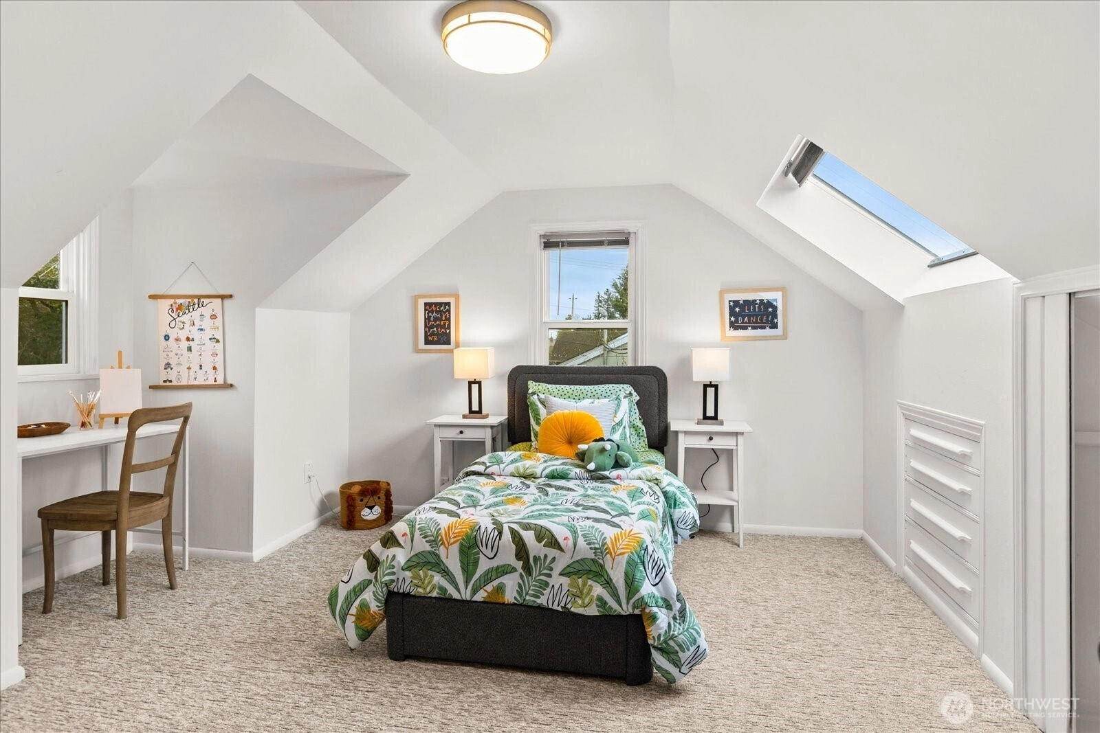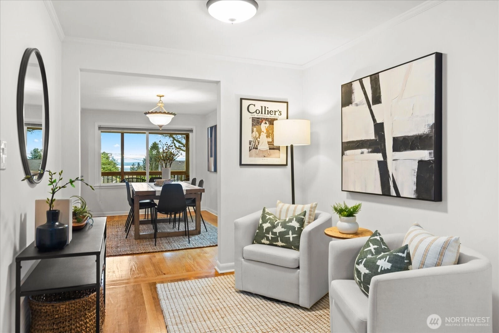 Charming & undeniably special! Fall in love with this light-filled Cape Cod home nestled on a quiet Broadview street, w/scenic Puget Sound & Olympic Mountain views. HW floors flow throughout the main level, where you'll find a spacious primary bedroom, large formal dining & an expansive kitchen w/breakfast nook. Step outside to the covered patio & entertainment-sized deck, perfect for evening dinners & soaking in stunning sunsets. Upper level features two generously sized bedrooms, along with attic/storage space. The lower level offers tremendous flexibility, including a family room or additional office space, plus a fully self-contained MIL suite w/separate entrance, full bath & W/D - ideal for extended living or potential rental income. Attached exterior storage space completes the package. Big-ticket items complete - including new windows (2023), new roof (2025), updated water heater, fresh interior paint, and new upper-level carpet. Large lot w/gated alley access and abundant off-street parking. Conveniently located near Carkeek Park's trails & beach, multiple restaurants, coffee shops, the Broadview Tap House & more. A rare blend of character, views, and versatility. Pre-inspected