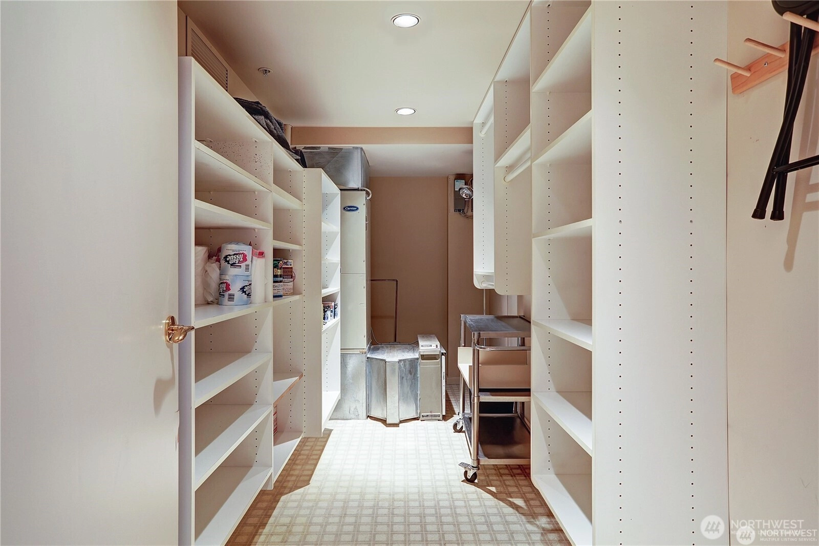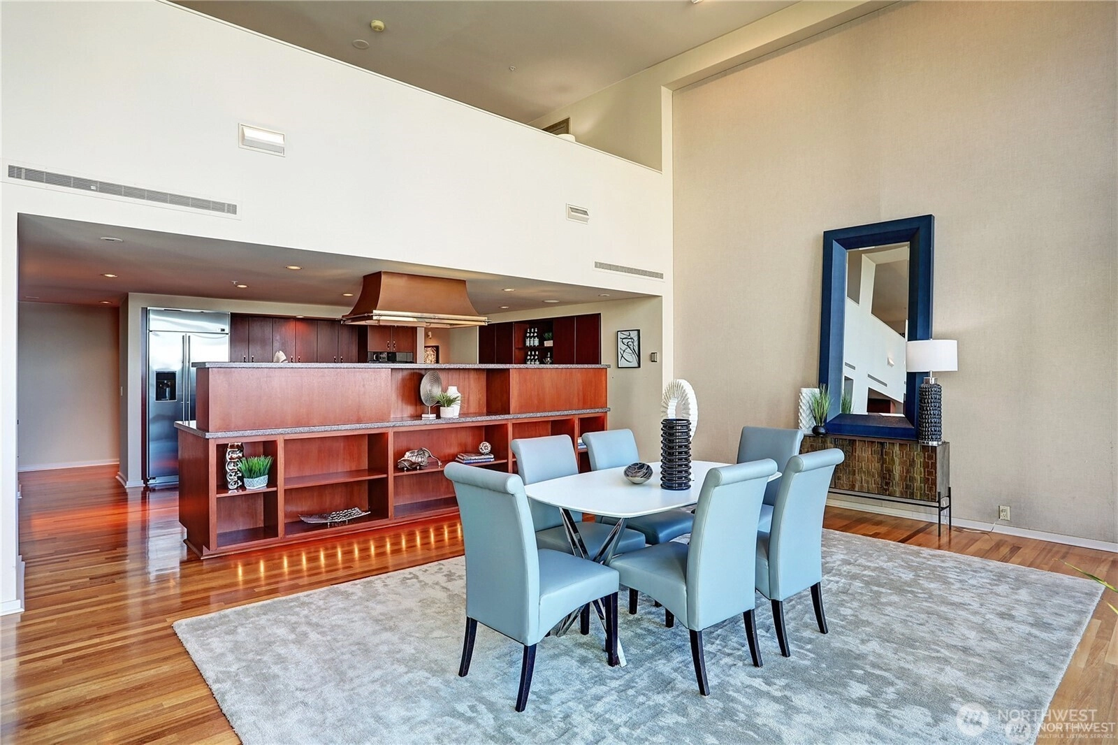 The Banner building is an exceptional, AIA design award-winning building & this is a one-of-a-kind unit within it: two neighboring units have been combined to create an exceptionally spacious Belltown haven. Same loving owners for 26 years; now perfectly timed for you to put your own unique design vision into place. A 20ft high window-wall frames Puget Sound with two view decks and vast living and dining space. French-doored front entry with gracious foyer. Generous kitchen featuring slab granite, gas stovetop, double ovens & prep island. Wet bar with vitrine-doored cabinetry. Lofted office/great room, space needle view from guest room and TWO secure garaged parking spots. Expansive wall space & directional lighting to showcase an art collection. Delightful copper accented jewel-box powder room. Prime location to enjoy the newly re-envisioned Seattle waterfront, Olympic Sculpture Park, Pacific Science Center, Stadiums, Benaroya Hall, Pike Place Market and all the city has to offer. "Walker's Paradise" score of 98 out of 100, earned for proximity to restaurants & amenities. No rental cap.