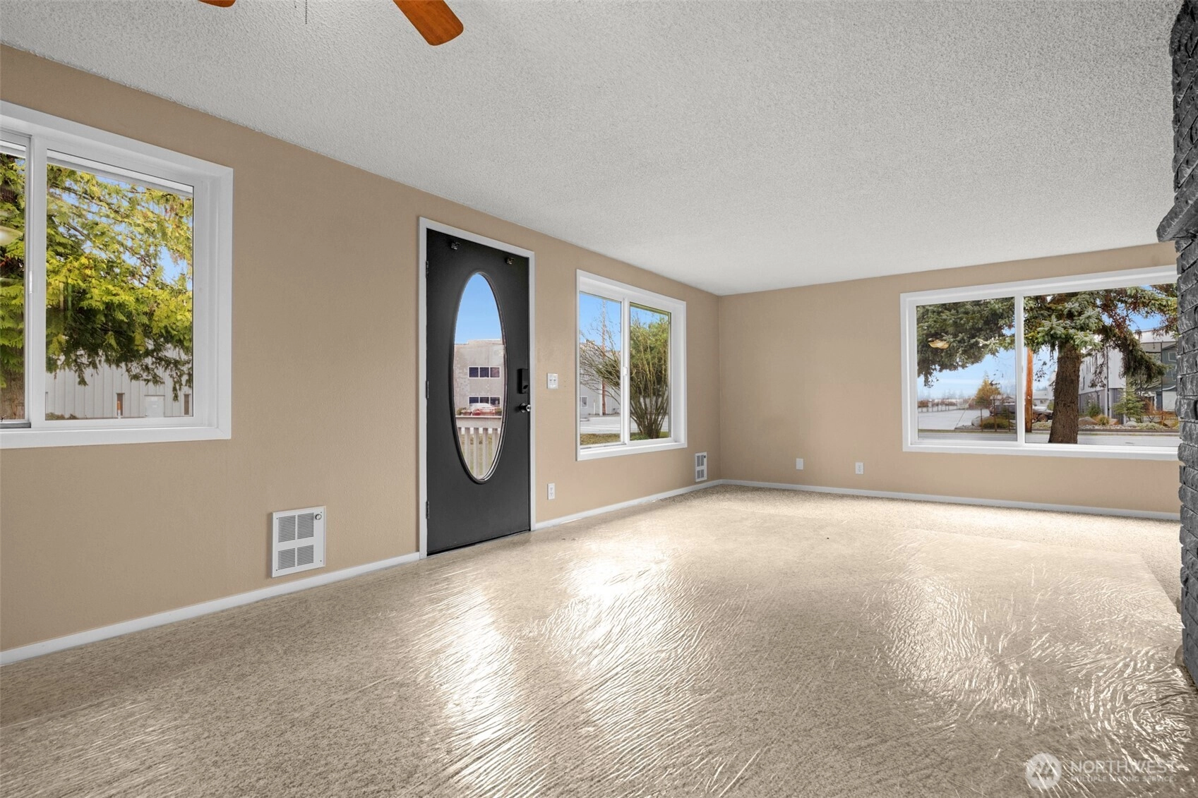 Welcome to your peaceful Pacific Northwest retreat with the Centennial Trail literally in your front yard. This beautifully refreshed and well-maintained 1,254 sp ft home sits on a level 1/2+ acre lot and includes a detached 1-car garage plus an impressive 24x48 shop - perfect for hobbies, storage, or workspace, and easily park 2 additional cars. Extensive updates completed in 2025 include new LP siding, Trex deck, windows, gutters, interior and exterior paint, with kitchen and bathroom updates. A natural gas stub-out installed by Cascade Natural Gas is ready for future connection. Roofs on the home and garage are approximately 10 years old. Enjoy the perfect blend of privacy, tranquility, and outdoor recreation with miles of walking, biking, and rollerblading along the Centennial Trail right outside your door. Cable/Internet is available; disconnected during siding installation.