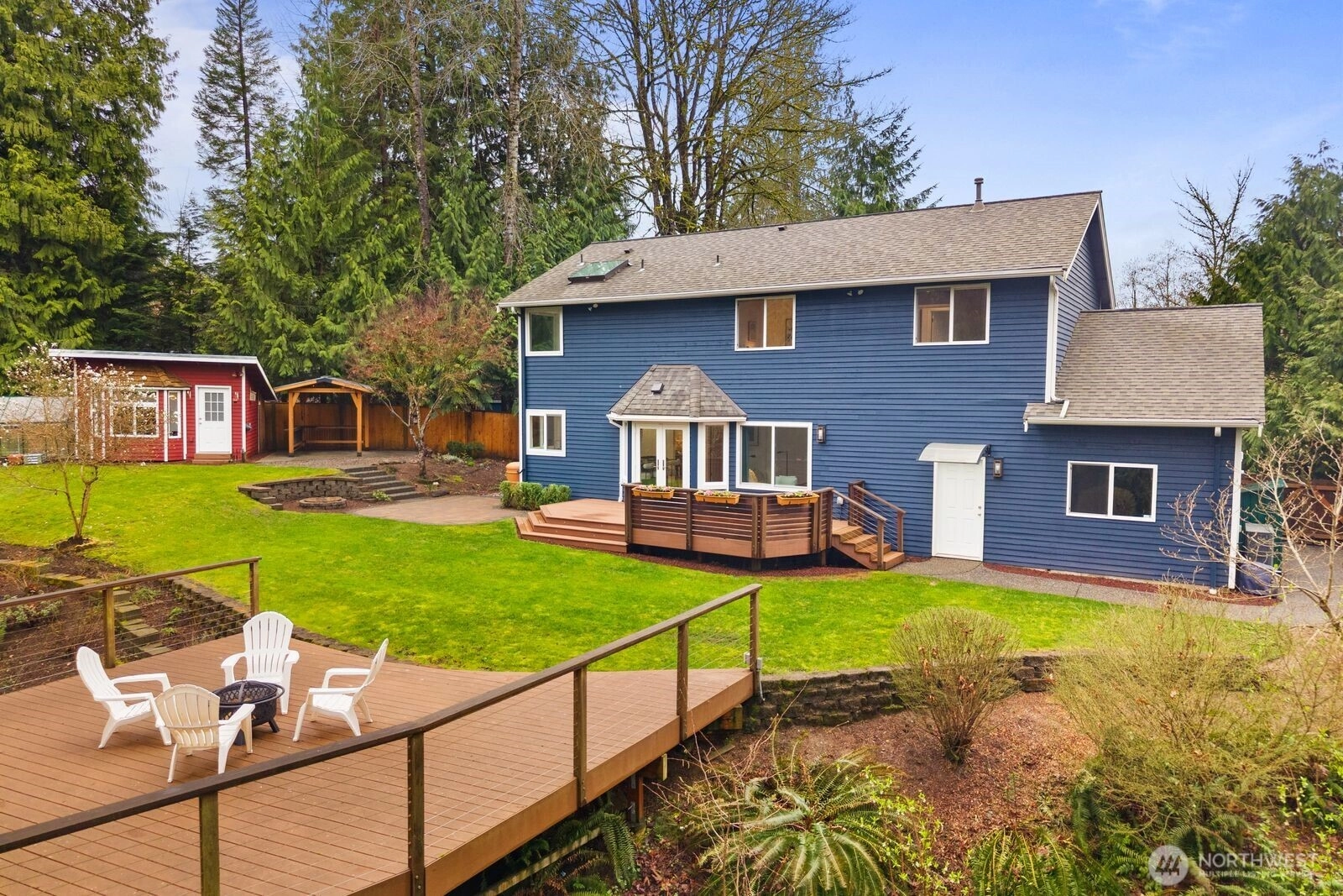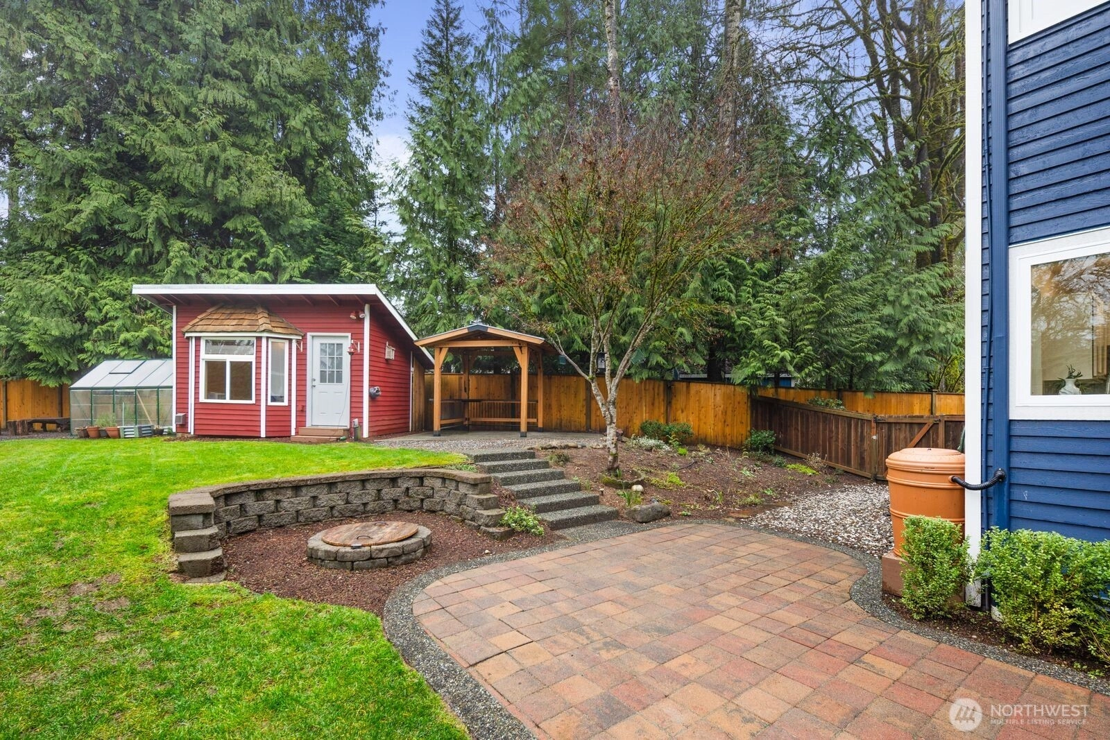 Step into this bright, open home in sought-after Taylor’s Ridge. Set on over an acre backing to a greenbelt, this 4-bedroom home welcomes you with a dramatic two-story entry and light-filled formal and informal living spaces. Upstairs, the primary suite includes a walk-in closet and ensuite bathroom. There are three additional bedrooms and a guest bath, all complemented by beautiful oak plank flooring. The open kitchen features granite counters, stainless steel appliances, and generous storage. French doors open to the patio, creating effortless indoor-outdoor flow. Relax in your private oasis with a treehouse deck, greenhouse, gazebo, flower beds, berry bushes, and garden, all framed by winter peek-a-boo mountain views. A detached 136 sq ft heated and cooled office/studio provides flexible space for work or hobbies. Modern updates include a heat pump, generator-ready setup, and fresh interior paint. Just minutes from downtown, shops, dining, playgrounds, and parks. Pre-inspected.