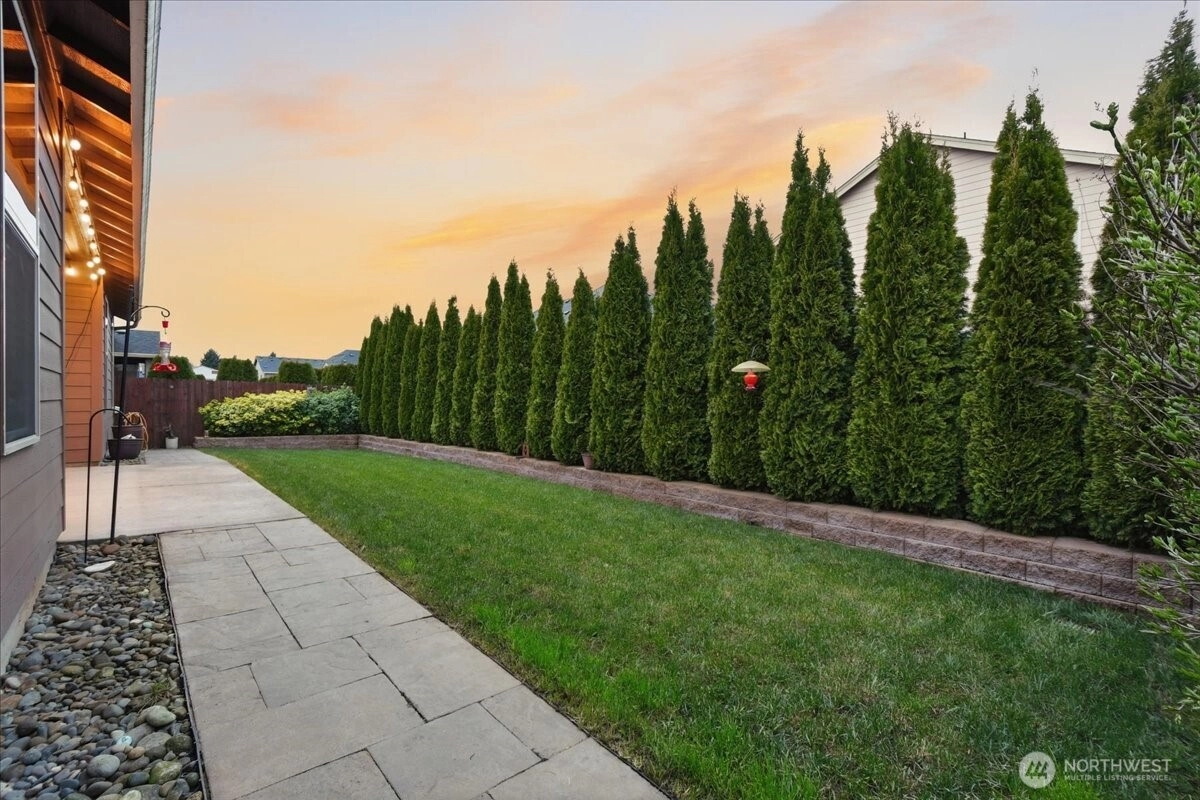This is the kind of main-level living that homeowner dreams are made of. A 3-car garage, a split-bedroom floorplan & a covered patio...this contemporary 3-bed, 2-full-bath home is a true stand-out! 2024 sqft feel even more spacious with high ceilings & an impressive great room design. The main living area is open & versatile. You’ll be able to cozy up in front of the gas fireplace, or be the life of the party after cooking up a storm in the roomy kitchen. In the kitchen, you’ll find lovely quartz counters—much of which are showcased on the sprawling central island that features an eating bar & extra storage. With the pantry, all the cabinets & drawers, all your kitchen gadgets, pots & pans will have places to go! The dining area is large enough for full on entertaining, draws in natural light & flows through a full glass swing door to the covered patio. The living room views to the patio & backyard & centers around the gas fireplace. The primary bedroom is a private suite w/ a walk-in closet & ensuite bathroom including a walk-in shower & a tub. The laundry room boasts a sink, cabinets & hanging bar. Out back, the covered patio is plumbed to connect your gas grill...so no more trips to exchange those empty tanks! The backyard is fully fenced, low maintenance & lined by arborvitae for privacy. Sprinklers & drip lines run throughout the landscaping front & back. All appliances stay & you’ll want to stay, too & be able to call this one home after you take a tour!