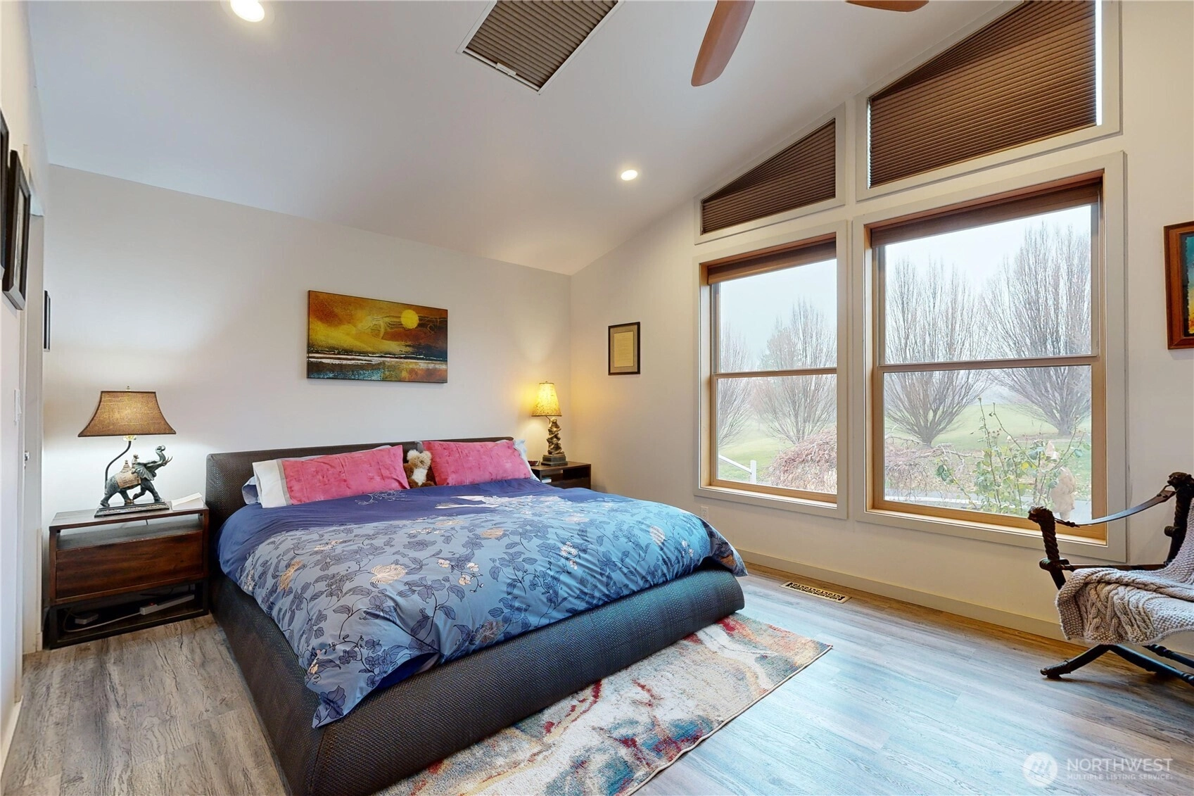 Set along the 14th fairway in a quiet cul-de-sac with minimal traffic, this remodeled home offers an open layout filled with natural light, vaulted ceilings, skylights, and a wall of windows framing golf course views. The main level opens into a spacious, connected living and dining area centered around an island kitchen, all oriented toward the views and outdoor access. The primary suite includes dual closets and a full bath with double sinks, soaking tub, and separate shower. Two additional bedrooms and a full bath complete the main floor. The daylight basement is well suited for extended living, multi-generational use, or guests, accessed by a walnut staircase that adds warmth and character. Highly versatile, it offers a large rec room with private exterior access, an additional room for office or media, a bedroom with egress window, a full bath with shower and sauna, a spacious laundry with folding aera, a bonus room ideal for wine or food storage, and a generous utility room with storage space. Outdoor living is designed with two decks: a west-facing deck to take in stunning sunsets and an east-facing deck to enjoy morning coffee overlooking the golf course. The landscaped, oversized backyard includes a retaining wall, patio, garden beds, and is fully fenced with two access gates. A 3-door garage with work area, plus a separate golf cart garage for additional storage. No HOA, offering more freedom and flexibility. Minutes to amenities, shopping, dining, and downtown.