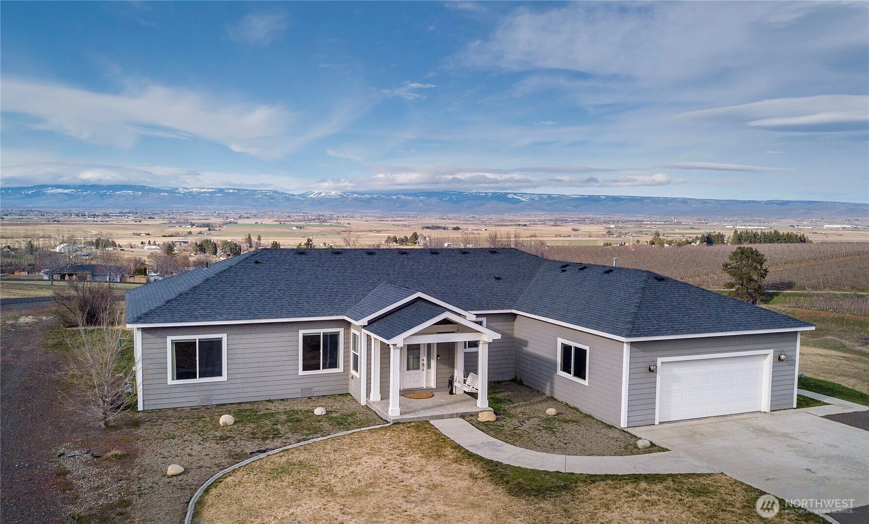 Its all about the view! Located on the south slope of the Kittitas Valley, this 2481 sqft. single level home boasts world class views of the Cascades & Mount Stuart Range. Welcome-in to the spacious great room, perfect for entertaining friends or enjoying an evening sunset through picture window glass. Gourmet kitchen with Miele gas stove, island bar, custom cabinets, granite hard surfaces and amazing built in storage. Sizable owner's suite with the same great views, gas fireplace and a fabulously spacious private bath with double vanity, tile floors and oversized closet space with built in organizer. Split floor plan with 2 additional guest bedrooms and full bath opposite the Owner's suite. Private office off the living room, bamboo hard surface flooring throughout the home, vaulted ceilings, gas fireplace with mantle and central forced air. Full sized laundry room with sink and closet storage. Enjoy outdoor living in every way, stamped concrete patio, perfect for relaxing, gardening or just taking in the view. Neighborhood HOA maintains roads and removes snow. 2 car attached garage with room for storage, plus 448 sq ft detached storage building. 3 acres. KRD Irrigation water.