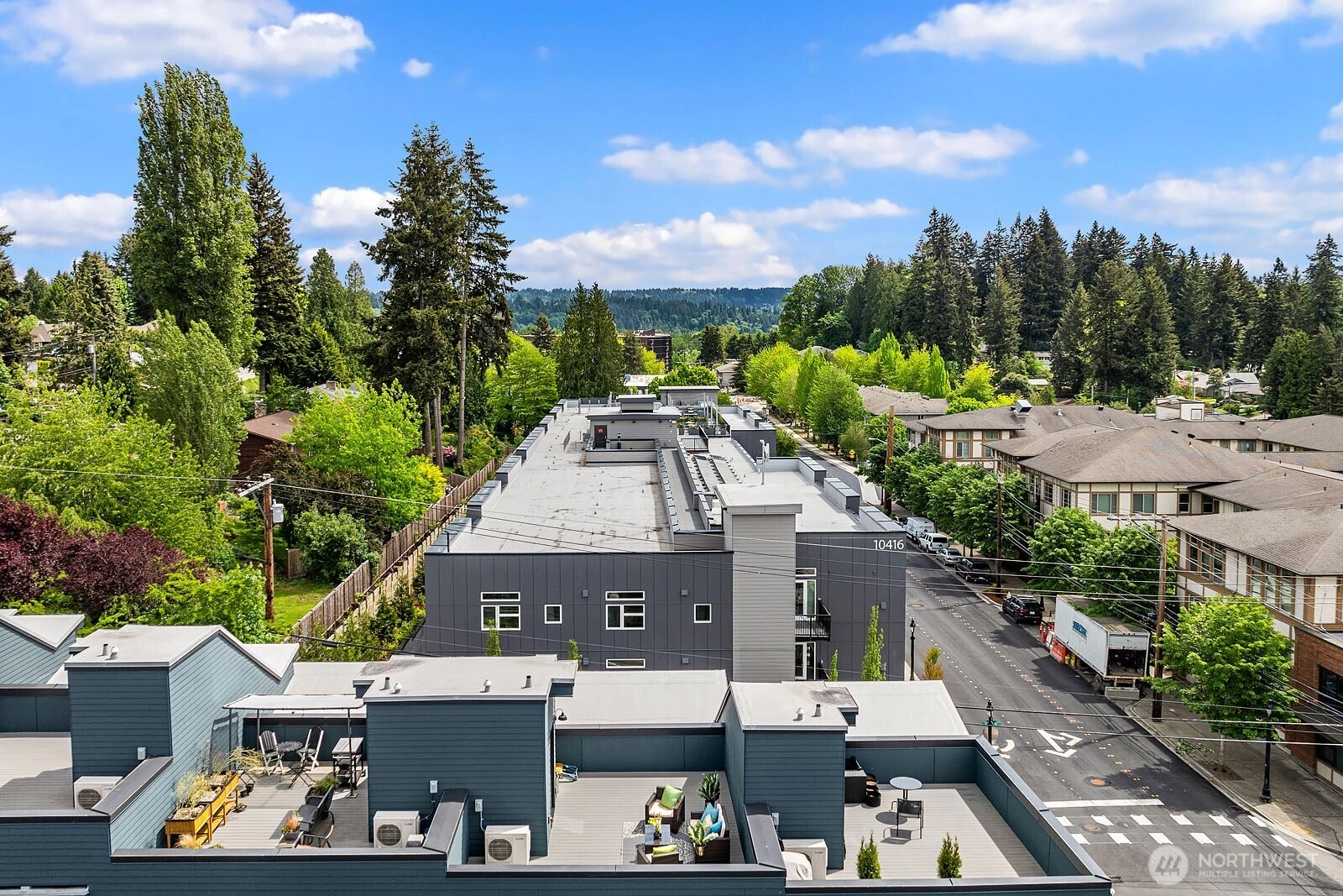Welcome to your urban oasis in the heart of downtown Bothell! This three bedroom townhome has the perfect blend of modern elegance and city convenience. The main floor boasts high ceilings with an open floor plan leading to the kitchen with quartz slab counters, stainless steel appliances, and plenty of cabinet space! At the end of the day, retire to your primary suite with spa like ensuite bath. Not only that, two more bedrooms, two full baths, air conditioning, and a large two car garage meet your every need! Just when you think it can't get any better, a massive rooftop deck to entertain everyone! Enjoy a life right in the middle of it all - shopping, restaurants, parks, top rated schools and the library. Have it all!