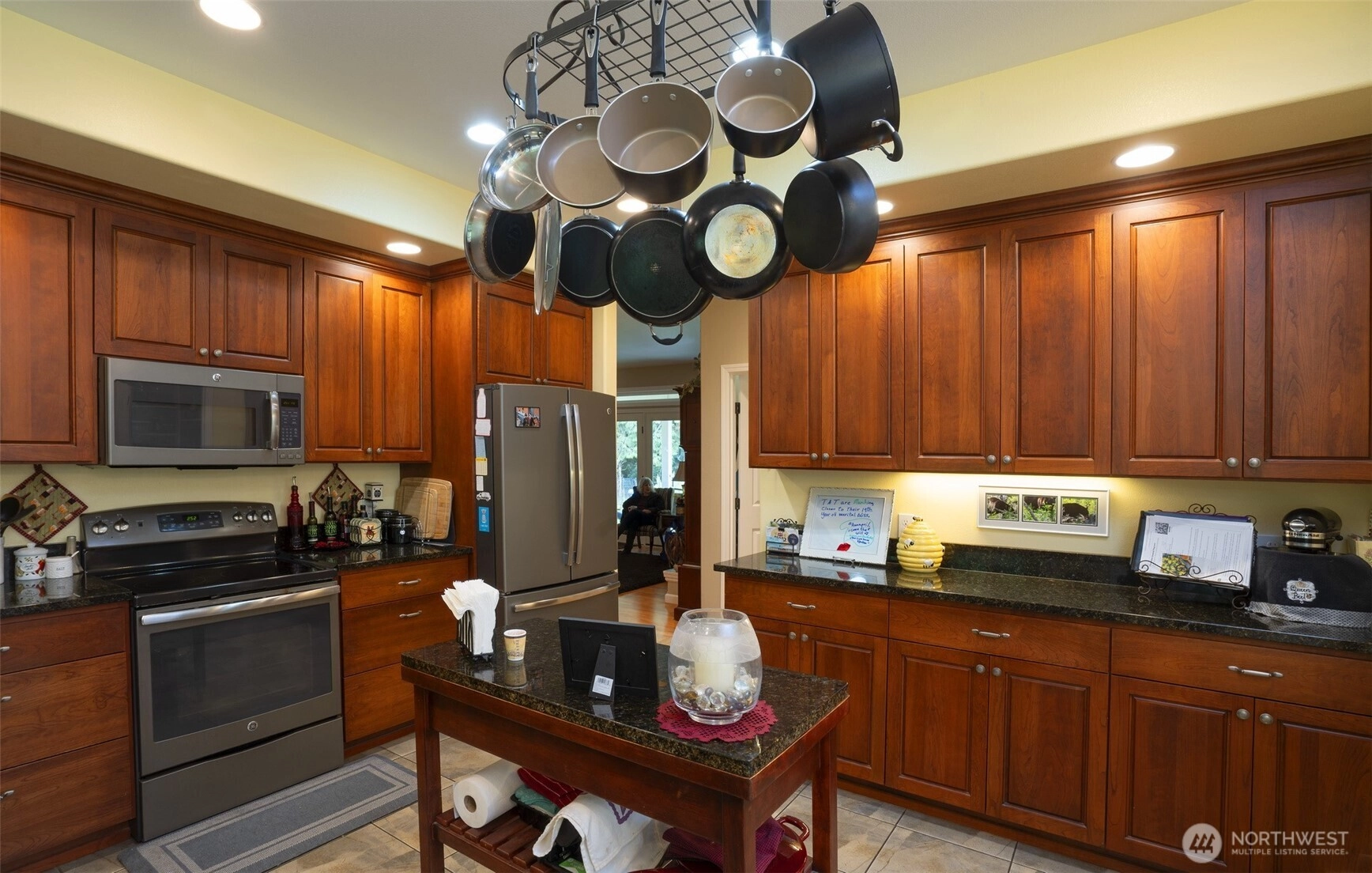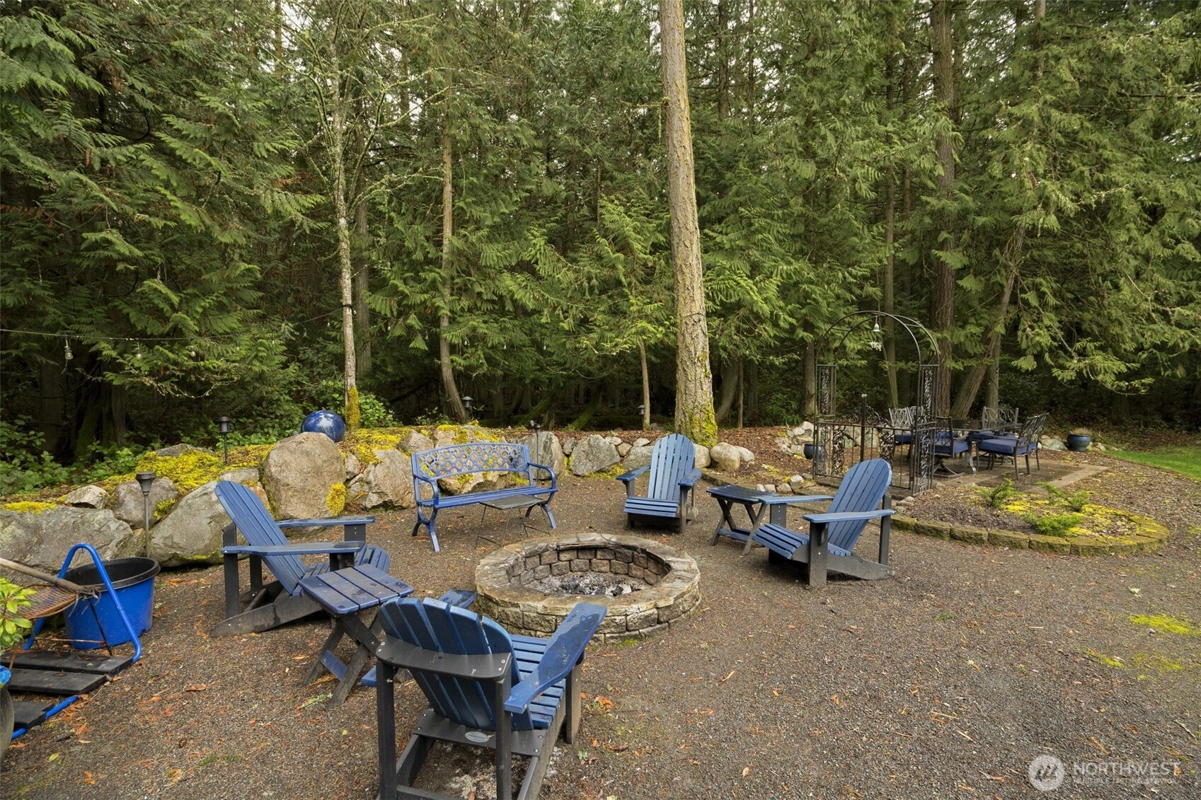 Tucked into the sought-after Panorama Vista community near Sequim, this .86-acre property offers the rare combination of privacy, mature trees, and convenient beach access just moments away. Set at the end of a quiet cul-de-sac and backing to a natural greenbelt, the setting feels peaceful and secluded while still being part of a welcoming coastal neighborhood. Inside, the home offers three generous bedrooms and comfortable gathering spaces designed for both relaxation and entertaining. The kitchen features stainless steel appliances, a walk-in pantry, and adjoining dining space ready for everything from casual breakfasts to holiday meals. The spacious primary suite serves as a private retreat with an oversized bedroom and a beautifully appointed bath featuring dual sinks and a jetted soaking tub. A cozy fireplace anchors the main living area, creating a warm place to unwind during cooler Northwest evenings. Outside, the grounds invite you to enjoy the outdoors with raised garden beds, open space for planting, and a firepit gathering area perfect for evening conversations under the stars. The attached garage includes a versatile studio or workshop space, ideal for creative projects, hobbies, or extra storage. The studio has its own half bath provides additional flexibility. Blending nature, privacy, and coastal lifestyle, this property captures the relaxed charm that makes Sequim living so special.