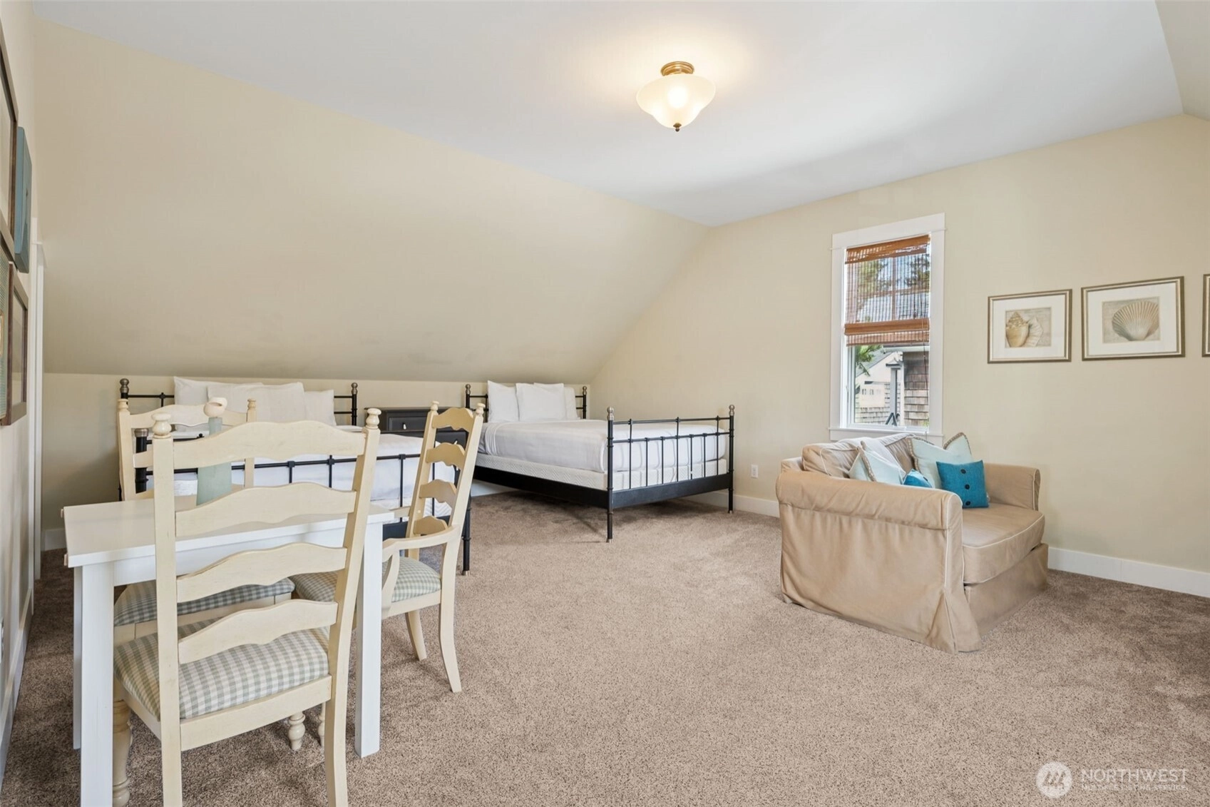 Discover sweeping ocean views at The Nantucket House. An exquisite, fully furnished 2,600+ sq ft beach residence in the tranquil North Glen neighborhood. This coastal retreat offers four spacious bedrooms, three and three-quarter luxurious bathrooms, and a convenient main-floor bedroom. The chef's kitchen boasts state-of-the-art appliances, including double ovens, opening to a cozy living area with a gas fireplace. Entertainment awaits in the dedicated media room. Enjoy panoramic ocean views from the expansive covered porch and two private upstairs balconies. The property also features a private, versatile 624 sq ft carriage house with a kitchenette and full bath, perfect for guests or a studio. Nantucket House is a seamless blend of seaside tranquility, modern luxury, and coastal charm, offered fully furnished for an effortless transition to beachside living.