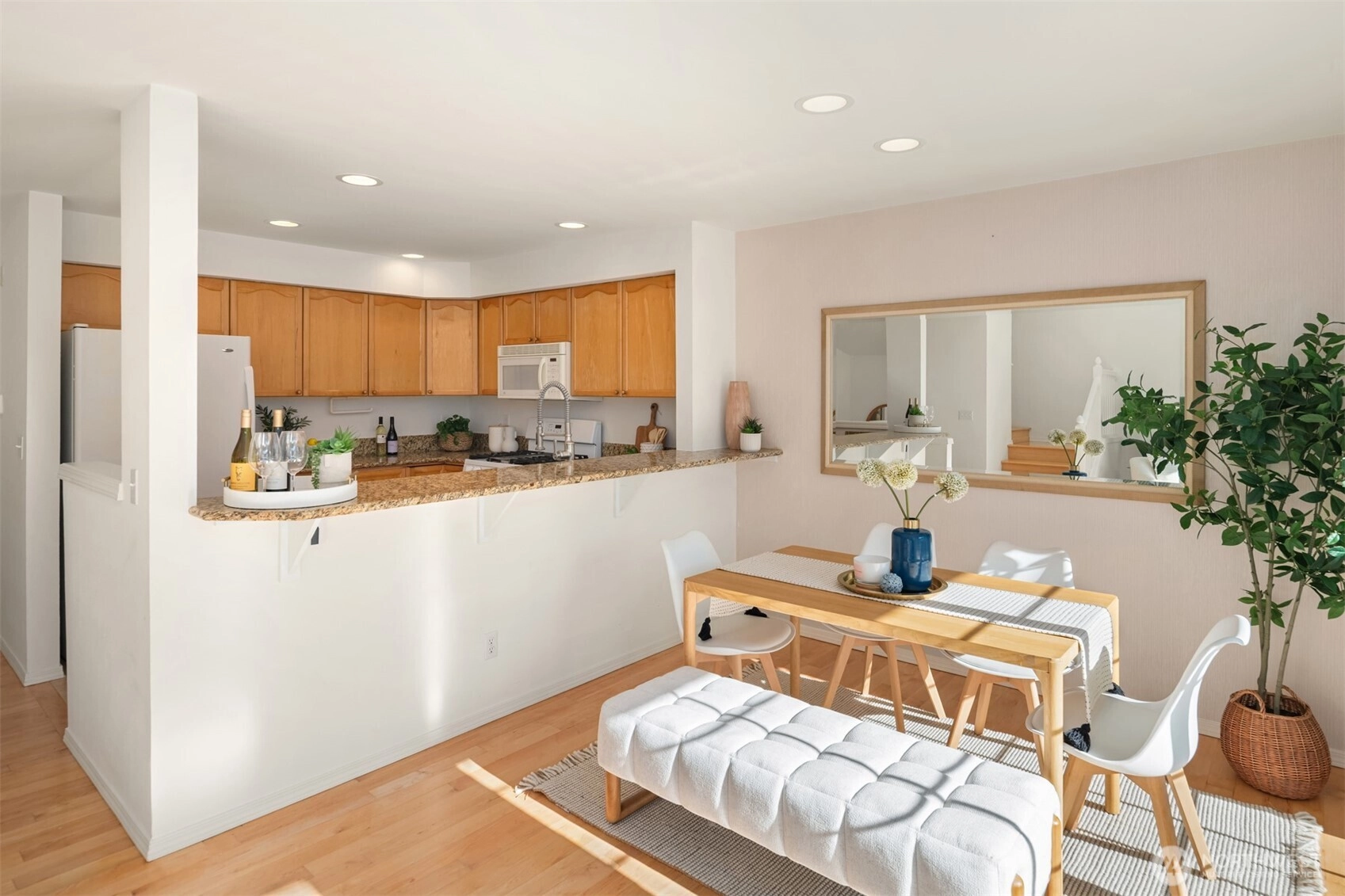 NEW PRICE! Fabulous 3-bedroom townhome at sought-after English Cove! The perfect location just moments from Marymoor, Microsoft & downtown Redmond + the best schools! Fall in love with the sunlight pouring through large windows, double volumn ceiling, open floor plan, spacious kitchen, and hardwood floor throughout! Super functional floor plan with luxury-size primary suite and guest suite on top, and versatile 3rd bedroom/office on Main. Watch fall colors roll in from your private deck, play pickleball on the community courts, or stroll over to beloved Marymoor for outdoor fun. Fantastic community with caring neighbors, and the home enjoys a peaceful, quiet spot. 5-star dining, groceries & more are all minutes away!