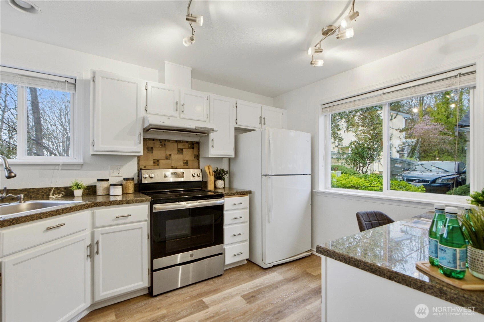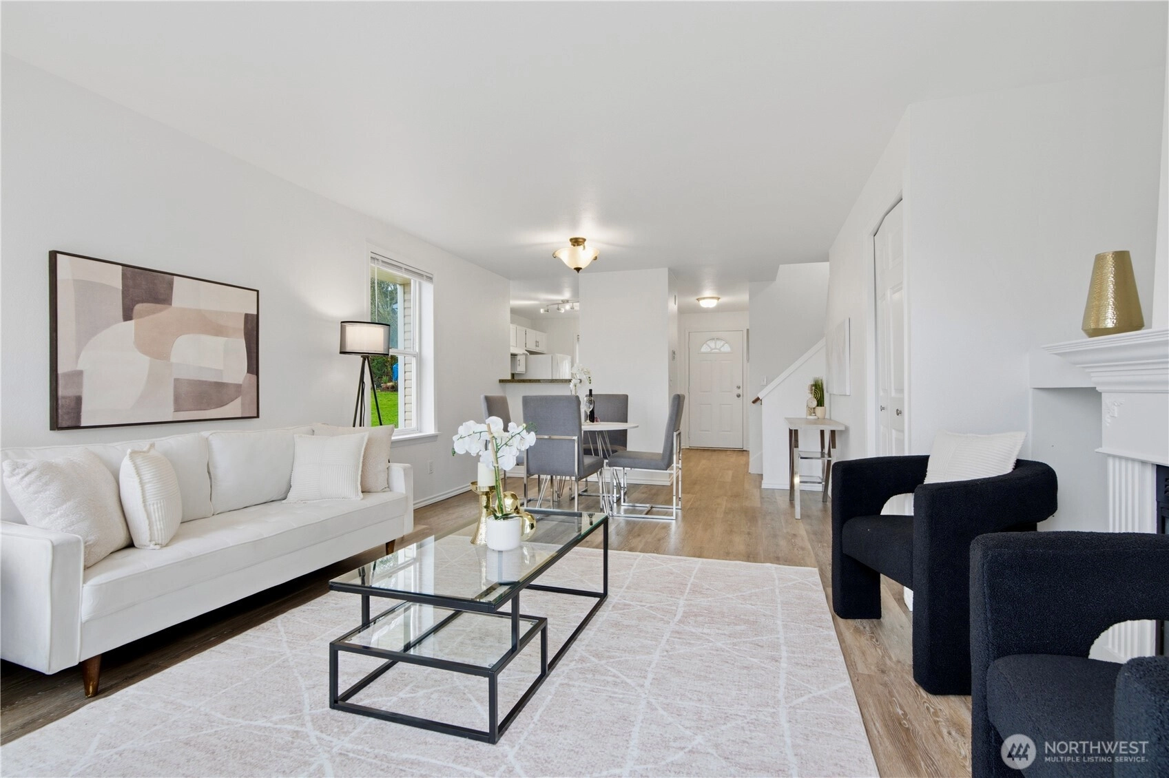 Secluded in its own private setting, this prime end-unit townhouse backs to a peaceful greenbelt with scenic walking trails-offering both privacy and natural beauty. The kitchen and living room feature new luxury waterproof wood-look vinyl plank flooring, and the entire interior has been freshly repainted. Includes two dedicated parking spaces. Ideally located in a central area-just 10 minutes to Boeing, Southcenter, and Costco, and only 17 minutes to Downtown Seattle. Enjoy easy access to I-5, I-405, and Hwy 167. Plus, no rental cap makes this an excellent opportunity for both homeowners and investors.