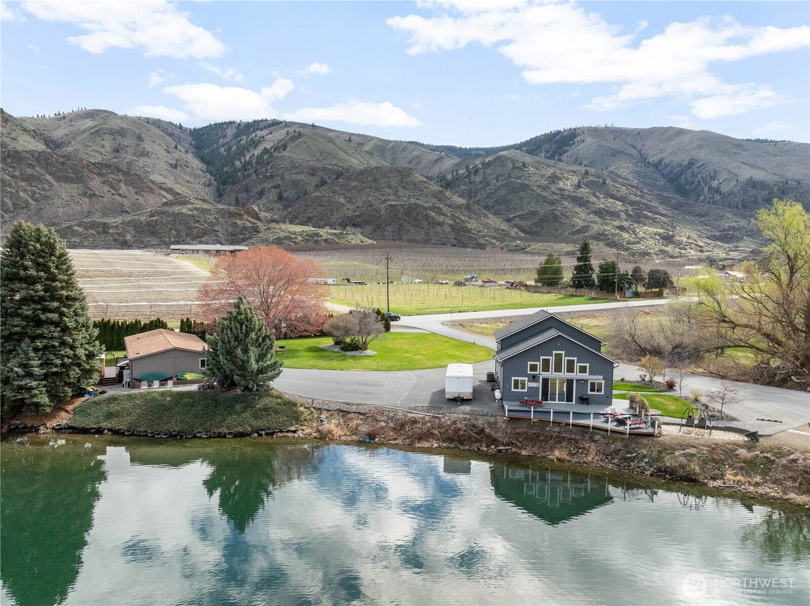 Welcome to your private waterfront 2-home retreat on the Columbia River—where lifestyle, luxury, and income potential come together seamlessly. A beautifully constructed primary home as well as a 4 bed, 2 bath, 1620 sq ft income-generating manufactured home, are set on a rare, expansive low-bank shoreline. This exceptional property offers direct, easy access to the water along with your own buoy—perfect for boating, fishing, and soaking in the beauty of riverfront living. Whether you’re launching into a day on the water or enjoying peaceful sunsets along the shore, this setting delivers an unmatched experience. The primary residence is a beautifully designed, high-end home featuring 2 bedrooms and thoughtfully curated finishes throughout. From the open-concept living spaces to the quality craftsmanship and upscale details, every inch of this home reflects comfort and style. Large windows invite in natural light and frame stunning river views, creating a serene and inviting atmosphere. Adding incredible value and flexibility, the property also includes a separate income-producing rental. Whether you continue generating income, host guests, or create a multi-generational living setup, the possibilities are endless. With its combination of prime waterfront access, refined living space, and built-in investment opportunity, this Columbia River property is truly a rare find. A quick drive to Desert Canyon for golf and 20 minutes to Wenatchee for dining, shopping and entertainment.