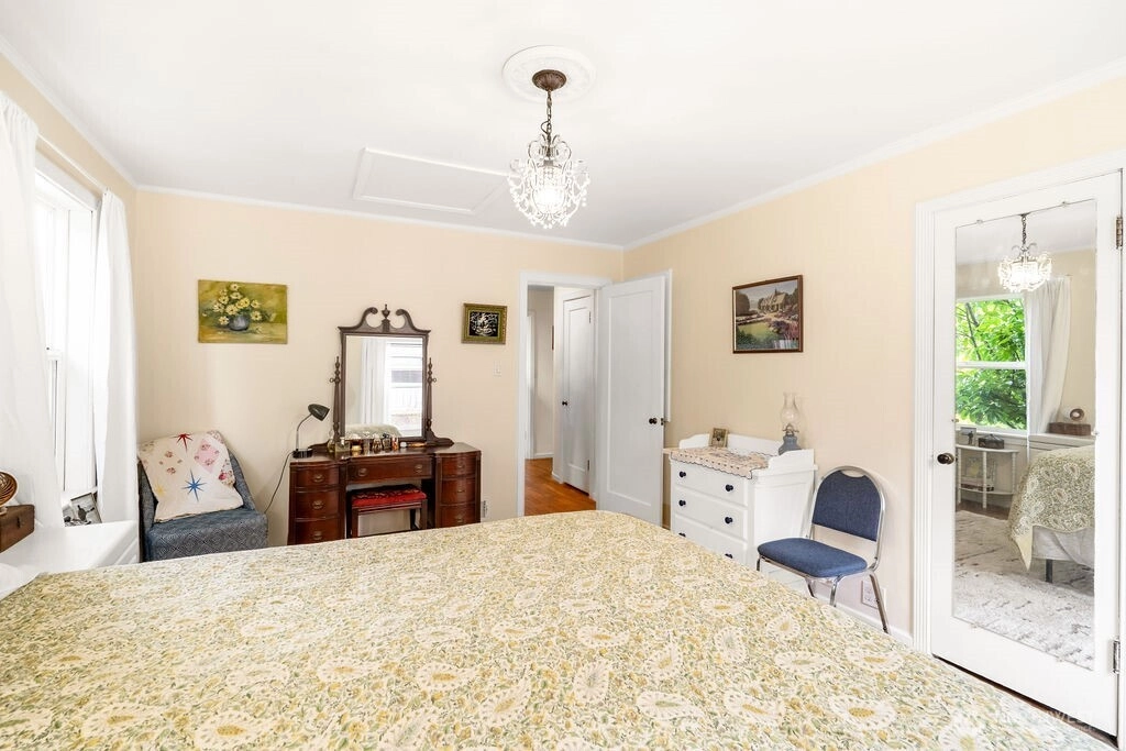 Move-in ready home with thoughtful updates throughout since 2019! Upstairs dormer windows and the stairwell window have been replaced with adjustable models. Dining room features new paint, tile flooring, and a new roof with full ridge vent. Roof caps replaced and additional vents added for improved summer ventilation. Exterior updates include 3” round downspouts routed to the street and freshly recaulked/painted window frames (2025). Kitchen refreshed with repainted cabinets, updated hardware, new Armstrong tile flooring (also in laundry), goose-neck faucet, garbage disposal (2022), double oven, and original California cooler. Interior paint updates extend to dining, living, hallway, entry, and upstairs bedrooms. Remodeled upstairs bath (2025) with new fixtures, surround, and wallpaper. Enjoy a wood-burning brick fireplace in living room, Nest-controlled electric furnace, and basement with fireplace, workshop, freezer, and bonus room. Fully fenced back yard with greenhouse, mature landscaping, apple tree, and extra parking.