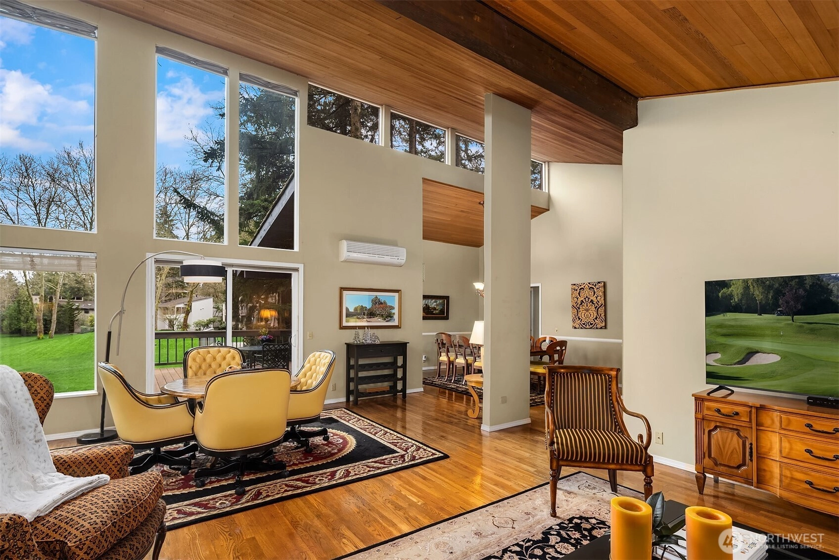The lock-and-leave lifestyle rarely arrives this beautifully appointed — or this well-placed. Positioned on the most private, sun-drenched lot in Medina Park Place, this exceptional home makes an immediate impression with soaring vaulted ceilings, warm cedar detailing, and walls of glass that frame sweeping Overlake golf course views. This home offers all the benefits of single family living with the ease of a townhome lifestyle. We know you will love the beautiful natural light and vistas throughout the day. The main living areas all enjoy incredible golf course views and flow seamlessly to an oversized deck, dissolving the boundary between inside and out. All three bedrooms share a single floor — a rare and practical luxury — including a primary suite with ensuite bath and three generous closets. A second, light filled bedroom with its own fireplace doubles beautifully as a flex space. Lovingly maintained and move-in ready, the home is a true jewel. Walk to Medina Park, the beach, top-rated schools, Overlake Golf & Country Club, and Kitchen & Market. HOA-managed landscaping keeps the grounds pristine year-round — effortlessly. We think this is the most private, sunny home in the Medina Park Place and think you will too! Medina Park Place is one of the Eastside's best-kept secrets, in one of its most treasured communities.