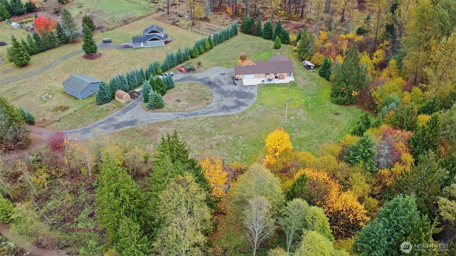 Hard-to-find single-level, no-step home on 5 private acres with room to grow and a creek—perfect for outdoor enthusiasts. This 2,208 sq ft home (built 2012) offers 3 beds, 2.5 baths, and a bright open-concept layout with vaulted great room and abundant natural light. Spacious kitchen features granite counters, large island w/bar sink, propane cooktop, convection oven, built-in microwave, birch cabinets, and walk-in pantry. Living area with cozy wood stove. Primary suite includes walk-in closet, patio access to hot tub, and accessible shower w/dual heads. Flexible space for guests or office. Guest bath with split layout and dual sinks. Features: 400 AMP service, Lennox heat pump, tankless hot water, 24x33 heated garage w/workshop space, no-step entry, wide doorways, mudroom/laundry. Private well (1,700-gal reservoir), septic, 16KW generator, RV hookup, pumphouse w/loft. Circle driveway, private walking path through wooded acreage to your own creek, fenced orchard, abundant wildlife. Plenty of room to build a shop. Peaceful Glenoma setting just ¼ mile to Hwy 12. White Pass Ski Area ~30 min, Riffe Lake ~10 min. Views of Kiona Peak.