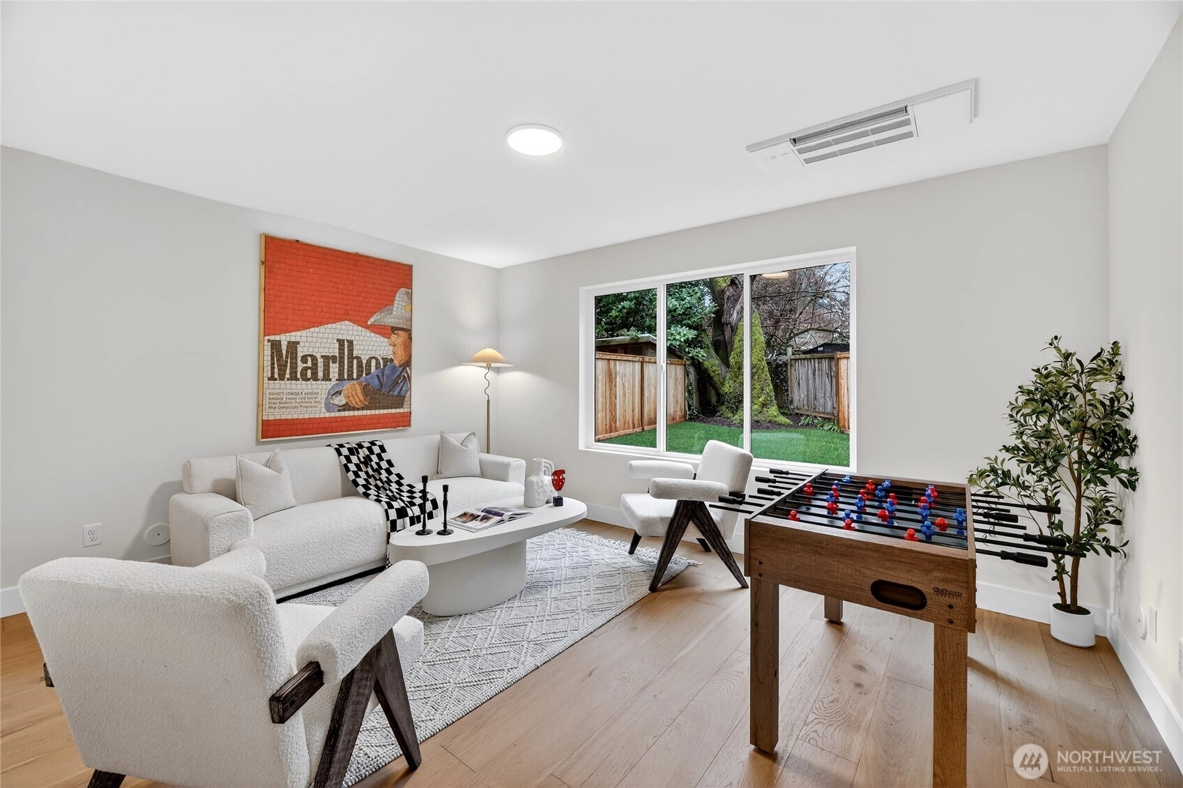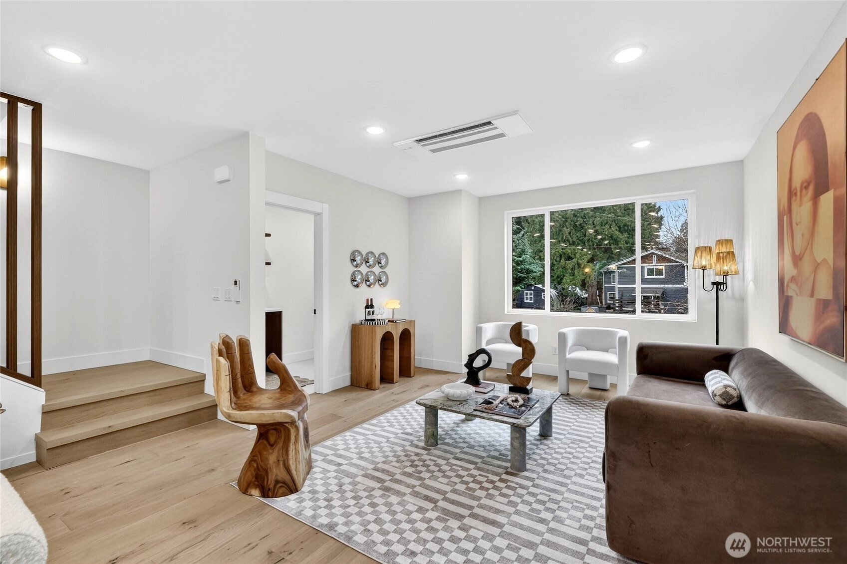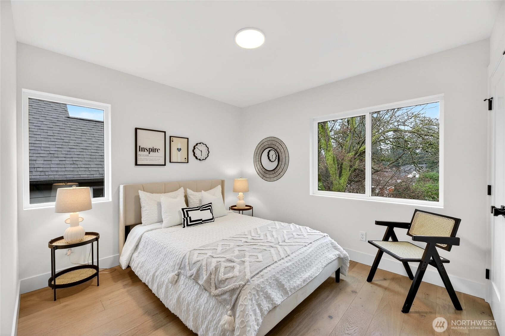 Welcome to this luxury modern 5B3.5BA home built by premier builder Seattle Modern Construction. High end design and finishes define this home throughout: Custom kitchen cabinetry w/ built-in pantry, soft close cabinets, high end Cafe appliances, engineered hardwood, Venetian plaster fireplace, and cassette style minisplit for heating/cooling. Light, bright open floor plan with desirable 3B2B on same level with a primary suite featuring heated floors, spa inspired rainfall shower with dual shower heads and built-in closets. Lower level features a media/flex room and another bedroom. One car garage with driveway parking available for 3 additional cars, and a 220V outlet for EV charging. Located in the heart of Victory Heights, easy commute to SLU/Bellevue, Greenlake, Ravenna and all that Seattle has to offer. Welcome Home!