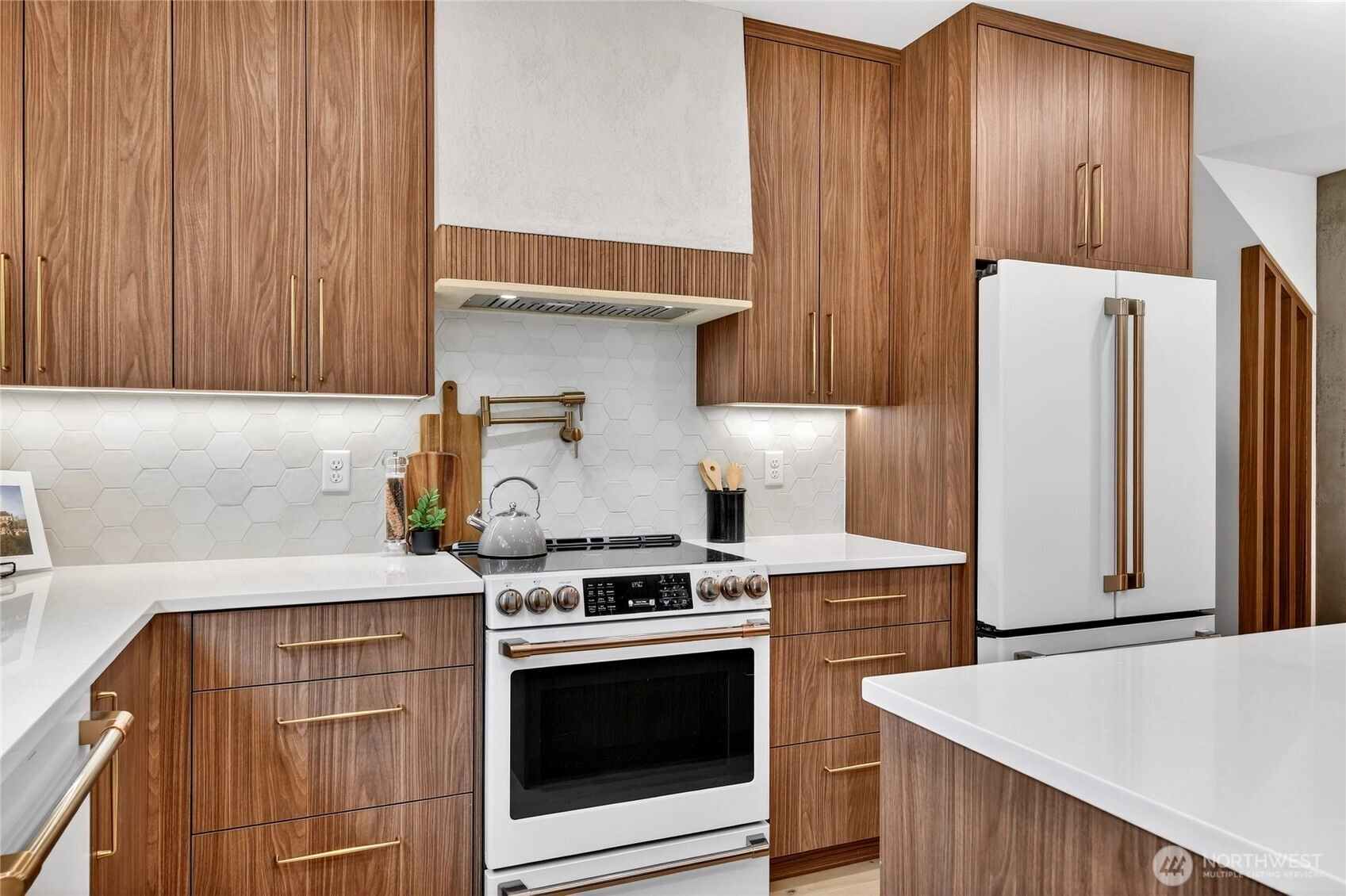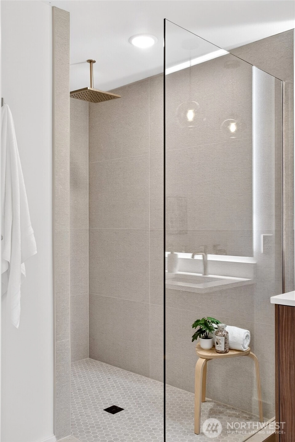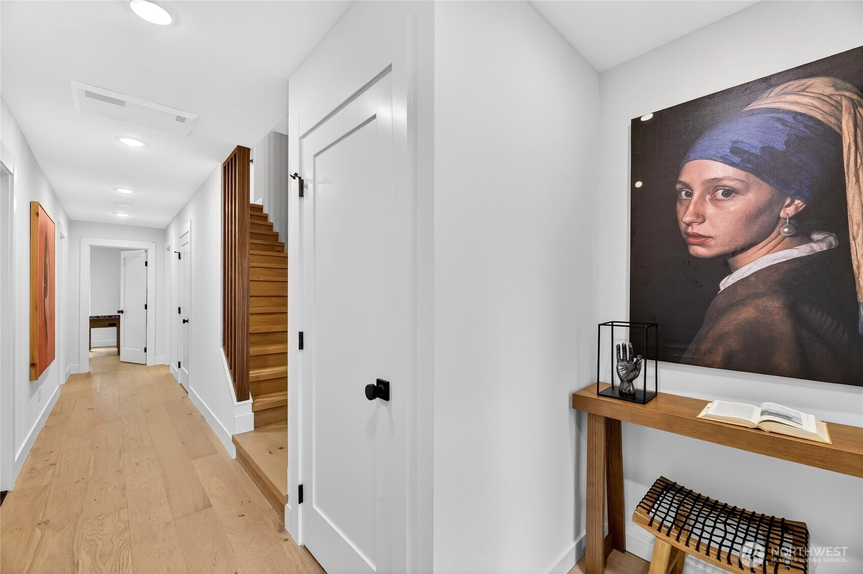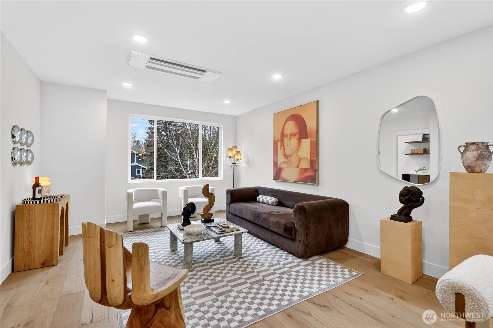 Welcome to this luxury modern 5B3.5BA home built by premier builder Seattle Modern Construction. High end design and finishes define this home throughout: Custom kitchen cabinetry w/ built-in pantry, soft close cabinets, high end Cafe appliances, engineered hardwood, Venetian plaster fireplace, and cassette style minisplit for heating/cooling. Light, bright open floor plan with desirable 3B2B on same level with a primary suite featuring heated floors, spa inspired rainfall shower with dual shower heads and built-in closets. Lower level features a media/flex room and another bedroom. One car garage with driveway parking available for 3 additional cars, and a 220V outlet for EV charging. Located in the heart of Victory Heights, easy commute to SLU/Bellevue, Greenlake, Ravenna and all that Seattle has to offer. Welcome Home!