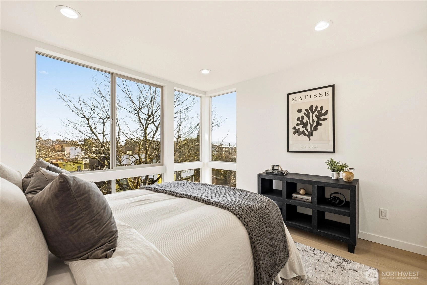 Ivy by Greencity is a boutique collection set in one of Fremont’s most sought-after locations—elevated above the energy of the neighborhood, where modern architecture meets a sense of privacy and calm. This thoughtfully crafted community of residences showcases open, light-filled layouts with walls of glass, refined finishes, and a seamless flow designed for contemporary living. Perched for a more serene perspective, these homes enjoy peaceful outlooks that bring in natural light and a quiet retreat from the vibrant surroundings below—creating a rare balance of connection and seclusion. Enter in to discover open-concept living, high ceilings & expansive windows that flood the home with natural light. The sleek chef’s kitchen shines with quartz counters, premium appliances, custom cabinetry, & designer finishes—ideal for entertaining & everyday living. Upstairs, the primary suite offers a peaceful retreat and treetop outlooks, while additional bedrooms provides versatility for guests or a home office. Take entertaining to new heights on your private rooftop deck—made for sunset views & memorable summer gatherings. Designated parking in a secure garage adds convenience. A stellar 96 Walk Score delivers effortless access to artisan coffee, local dining, boutiques, Woodland Park & Zoo—plus easy connectivity to UW, Ballard, Downtown Seattle, Hwy 99 & I-5. Modern. Private. Timeless Seattle.