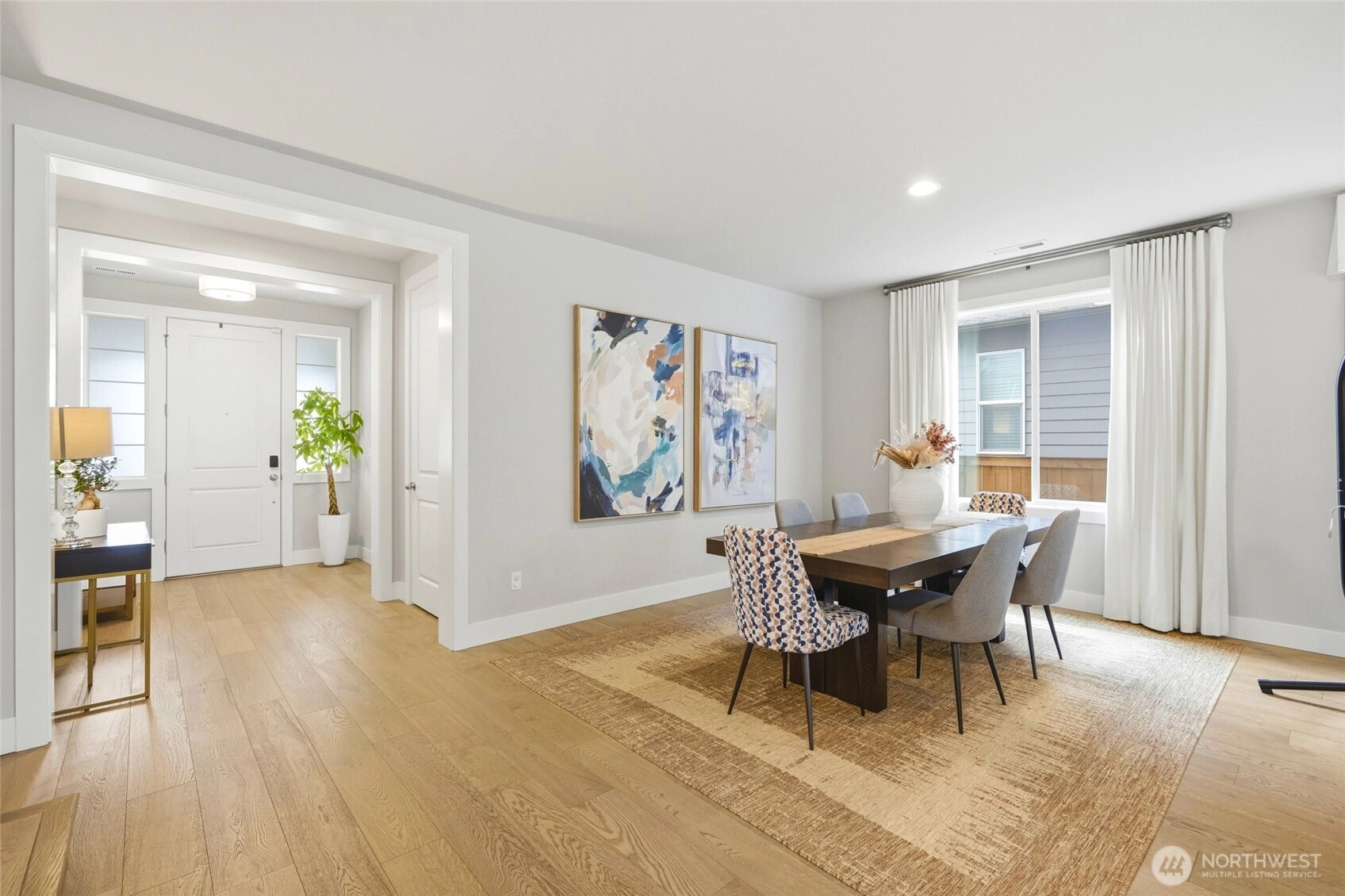 Immaculately maintained residence nestled on a quiet street, offering refined living with exceptional attention to detail. This open-concept home showcases a high-end chef's kitchen featuring premium stainless steel appliances, expansive countertops, abundance of natural light and a generous walk-in pantry perfect for both everyday living and upscale entertaining. House was thoughtfully designed with elegant finishes throughout. The main level is enhanced by custom-made curtains and Luxury wood style flooring. Upstairs spacious loft provides additional versatility for relaxation or hosting guests. Enjoy year-round comfort with air conditioning and the convenience of a newer energy-efficient washer and dryer. The primary master suit offers a true escape, featuring a deep soaking tub and a spa-like ambience designed for enjoyment. Step outside to a beautifully curated backyard oasis, complete with a covered patio and lush, mature foliage designed to bloom thru out the year, an ideal setting for outdoor entertaining or peaceful retreats. The backyard backs up to a serene nature preserve. This exceptional house seamlessly blends sophistication, comfort and tranquility. Come see this amazing home today.