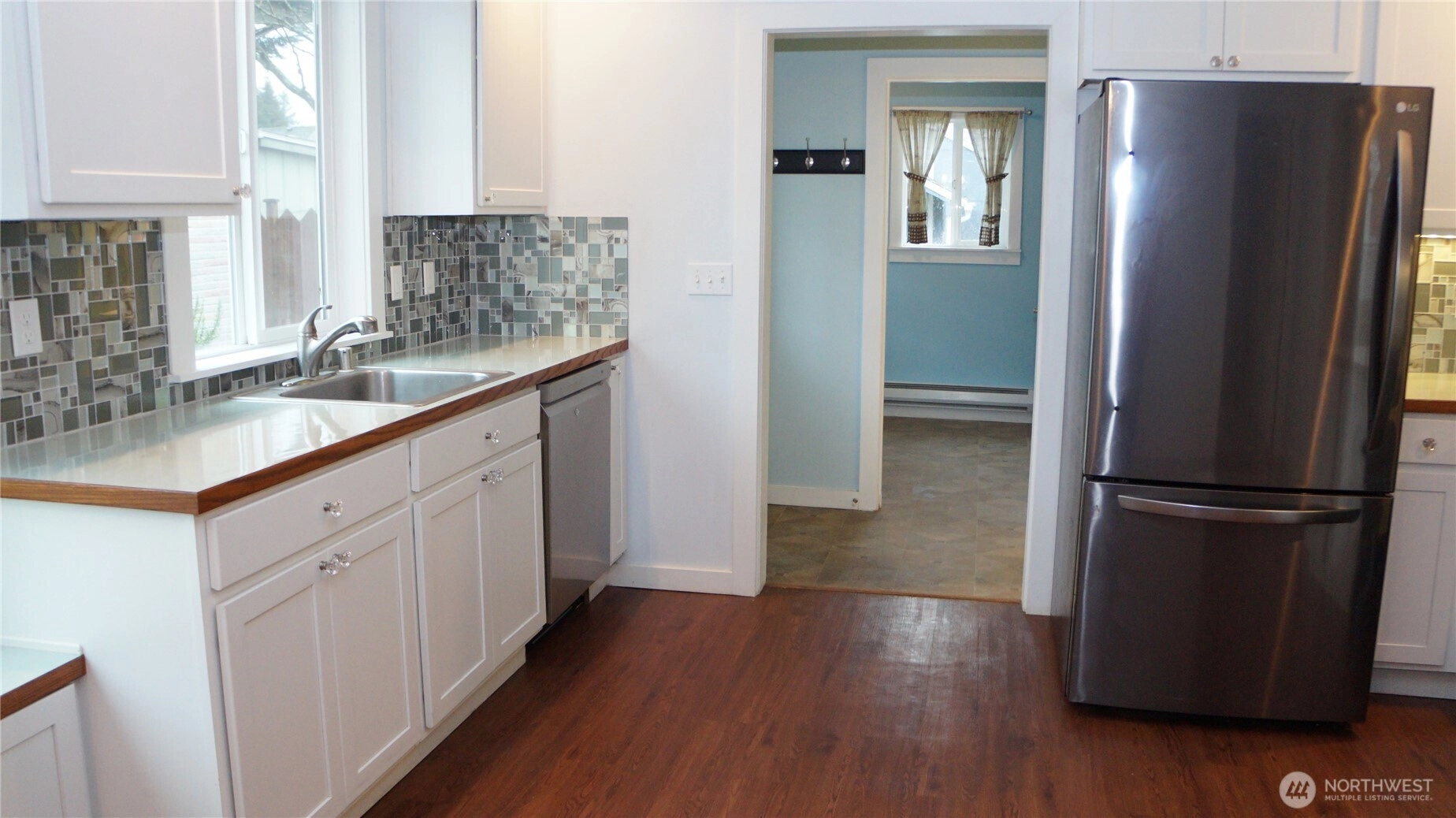 Discover a rare opportunity in the heart of Enumclaw! This charming 3-bedroom, 2-bath home has never been on the market and blends timeless character with modern updates. Originally built in 1945 and thoughtfully remodeled in 2018, it offers the perfect mix of vintage charm and contemporary comfort. Step inside to find fresh interior paint, brand-new carpet, and a warm wood-burning stove—perfect for cozy Pacific Northwest evenings. The large eat-in kitchen features newer cabinets, under-cabinet lighting and a cozy sitting window, creating the perfect space for casual dining and relaxing mornings. The primary suite includes a walk-in sit-down shower/tub for added comfort and accessibility. The versatile converted garage offers 285 Sq Ft of endless possibilities as a shop, craft room, or home office. Outside, enjoy the convenience of dedicated RV parking space—ideal for adventurers or extra storage needs. Roof is approx. 10 years old. Upgraded Andersen windows and wall heater was recently rebuilt and serviced with new fan motor! Great location within walking distance to the elementary school and city park! This one-of-a-kind Enumclaw home is ready to welcome you—don’t miss your chance!