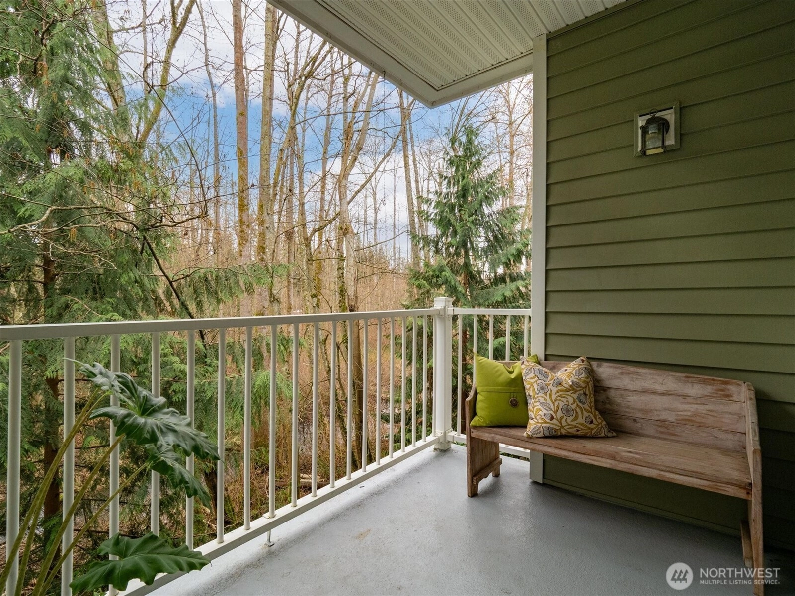 Welcome to this Woodland Retreat. This spacious unit boasts cozy open living area with gas fireplace, hardwood floors, and a large balcony overlooking a protected greenbelt and creek. The open kitchen has plenty of counter space, newer appliances, a good sized pantry and adjacent dining area. The generous primary bedroom has an updated ensuite bath with quartz countertop, and large walk-in closet. The second bedroom has adjacent full bathroom and large linen closet. Plenty of storage with full size laundry, hall closet and large storage area on balcony. One covered parking space and plenty of additional parking for guests. Located in a beautiful setting with community clubhouse for large gatherings, and a well kept play area. The Woodlands has easy access to 1-5, Boeing, shopping, dining and transit. This association is well run with ample reserves and low monthly HOA makes this a great place to call home!