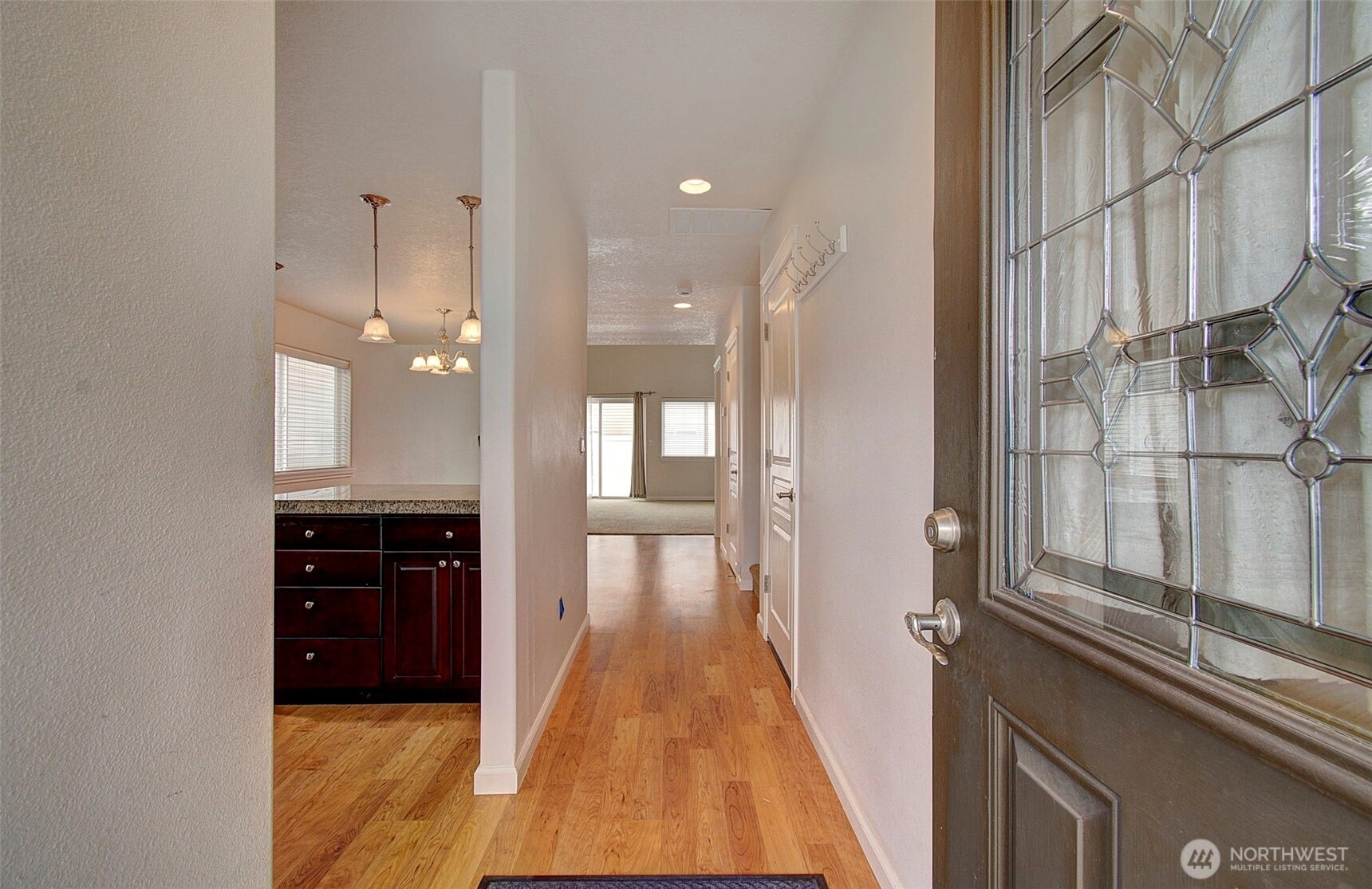 Step inside and feel instantly at home in this inviting 3-bedroom, 2.5-bath residence offering 1,792 sq ft of thoughtfully designed living space. Vaulted ceilings create an airy, light-filled atmosphere, while the upstairs overlook adds architectural interest and a sense of connection throughout the home. The primary suite is conveniently located on the main floor and features a generous walk-in closet and a private en suite bath with dual sinks?your own peaceful retreat at the end of the day. The living room centers around a cozy fireplace and flows effortlessly to the back patio through sliding glass doors, perfect for indoor-outdoor living and entertaining. Outside, enjoy a fully fenced backyard ideal for relaxing, pets, or play. With its open feel, functional layout, and warm, welcoming details, this home is ready to be the backdrop for your next chapter.