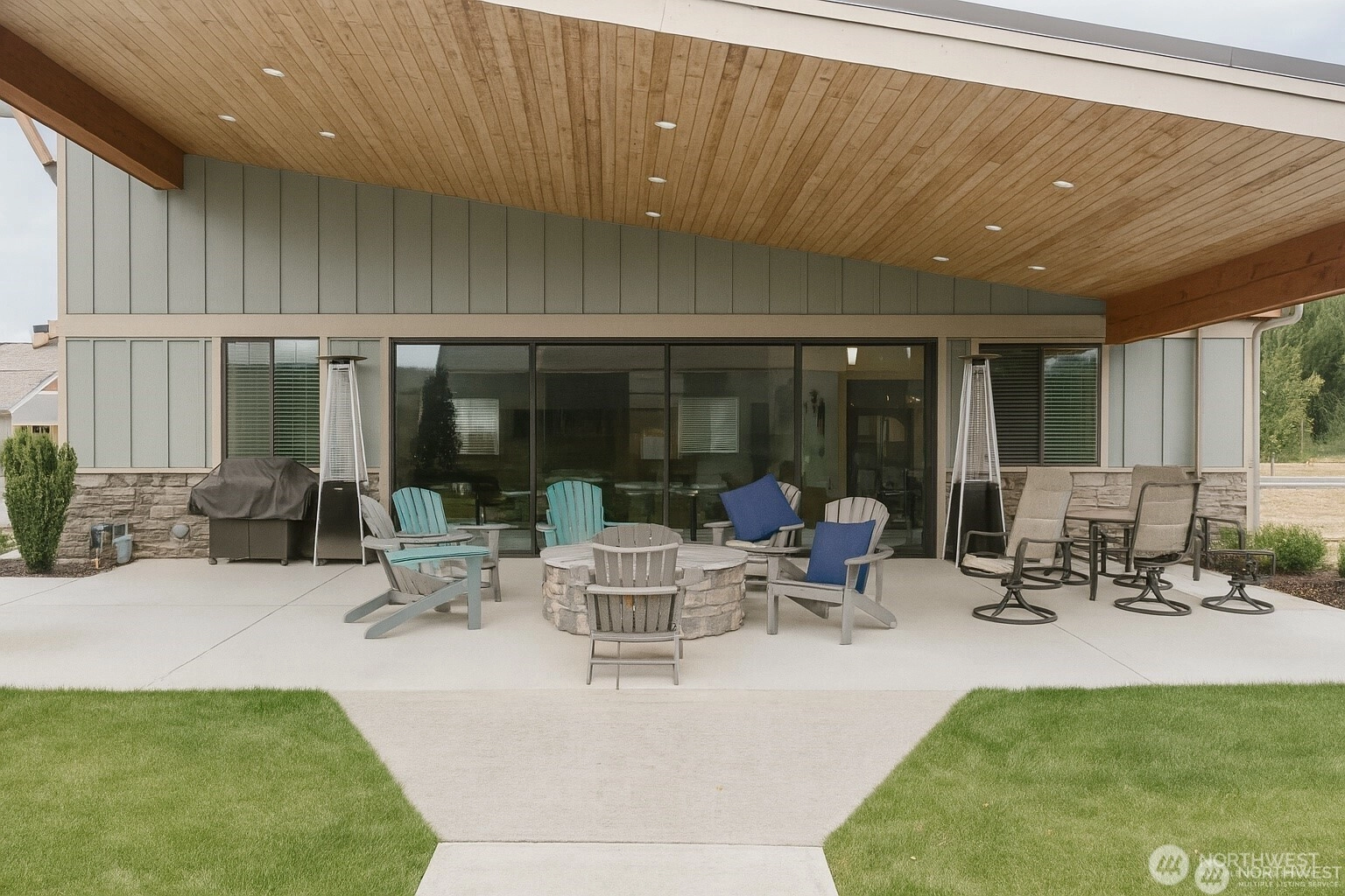 Live the ‘Good Life’ here in the Premier gated 55+ community of Woods Point! Built in 2021, this luxury 1,988 sf—largest one-level floor plan available—includes all builder upgrades, upscale finishes, comfort, and privacy. This luxury haven was designed for effortless living with no-step entry, open living spaces, high ceilings, & a functional layout—including an office. Positioned on a premium lot backing to greenspace w/no rear neighbors, & just 3 doors from the clubhouse. The covered patio w/stone faced, gas fireplace creates a comfortable outdoor living area for year-round enjoyment—perfect for relaxing or entertaining. While the backyard offers a peaceful, low-maintenance retreat with landscaped grounds, garden space, and serene views. Inside, find vaulted ceilings, well-appointed kitchen featuring quartz countertops, a large island, pantry, & classic white cabinetry. The huge spacious primary suite holds a walk-in closet, double vanity, & a beautifully tiled walk-in shower. The clubhouse, covered gas fire-pit w/Adirondack chairs, walking trails, pickleball court, sidewalks, and streetlights make it easy to connect, socialize, & be active. Located just minutes from shopping, dining, healthcare, & daily essentials—a short drive away—this home supports a lovely lifestyle! Woods Point is a unique community w/a welcoming atmosphere and kind neighbors where comfort, simplicity, & community come together!