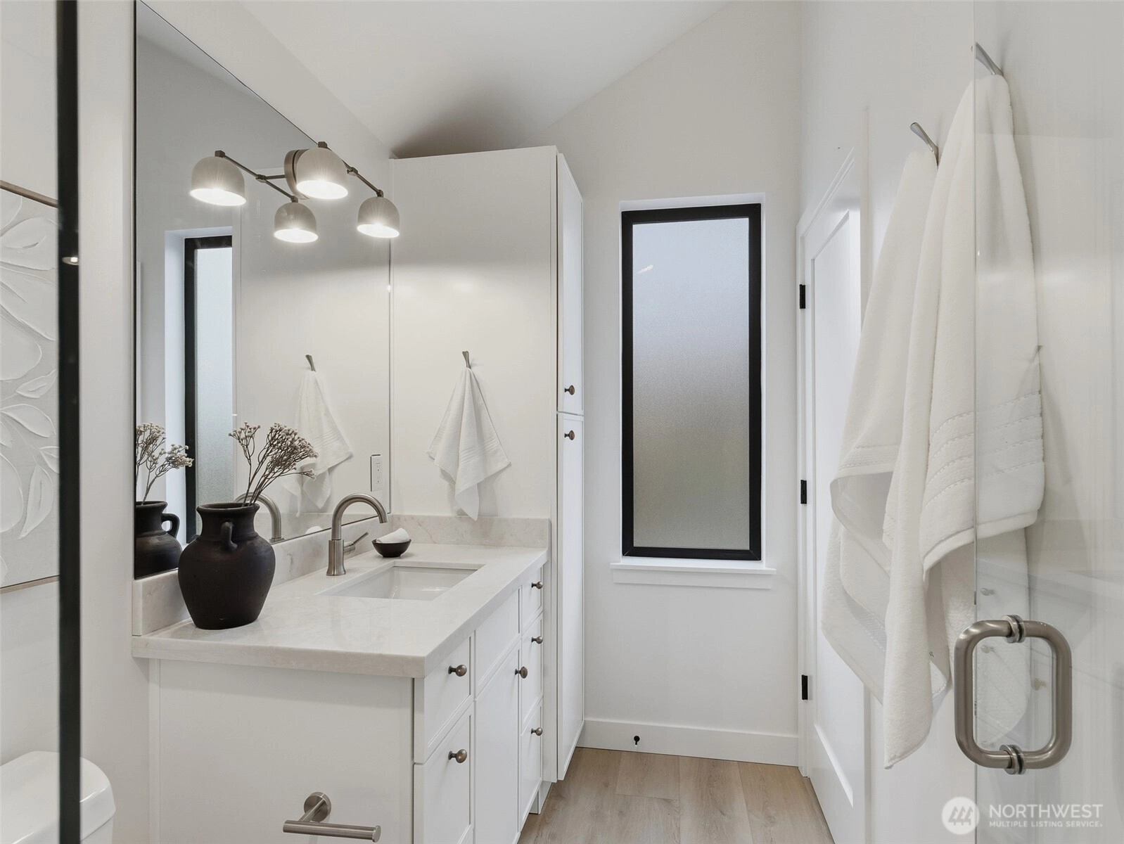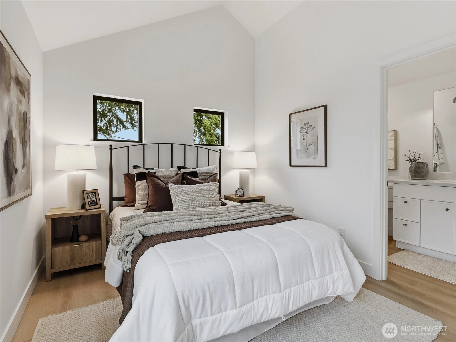 LAST HOME LEFT! The Hollis is part of the brand-new 28th & Dravus community, Cartwright Built’s latest offering of three thoughtfully designed residences in the heart of sought-after Magnolia. Targeting Certified Built Green 4-Star, this detached two-story cottage features a custom floor-plan with two bedrooms, each with ensuite baths, vaulted ceilings, dedicated EV-ready parking, and a fully fenced private patio. Elevated finishes throughout include thermally modified Radiata Pine siding, Level 5 drywall, a built-in kitchen island, in-ceiling ductless heating and cooling on the main floor, custom closet organizers, and an outdoor storage closet. The home is finished with a refined minimalist aesthetic, blending warm textures and clean lines to create a space that feels both modern and inviting. What makes this home so rare? This south facing DADU fronts directly on the street (free yourself from being tucked off an alley!) and lives like a true stand alone home. Convenient access to the Village and whisper quiet inside!