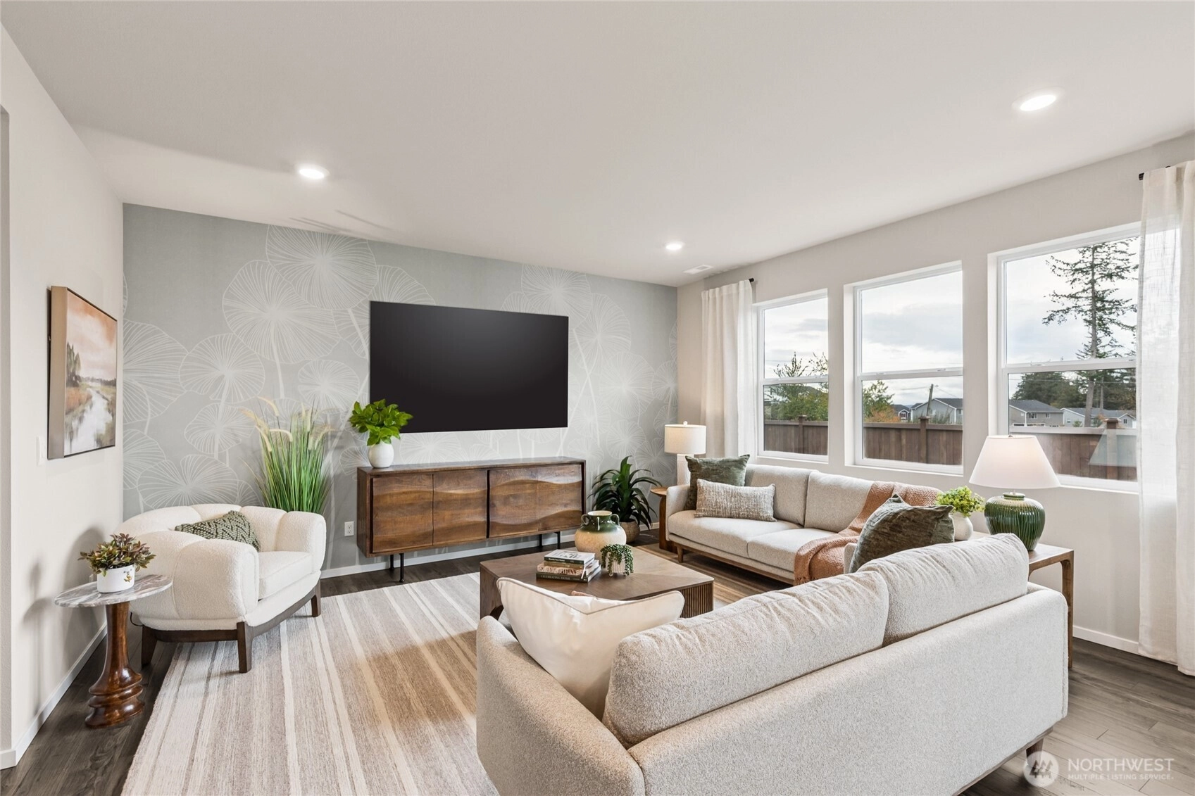Welcome to the Cambridge plan at Blueberry Farm by D.R. Horton in Buckley. Homesite 33 is now our featured Home of the Week with additional promotions! This thoughtfully designed home offers 5 bedrooms, a spacious open-concept kitchen and great room, modern shaker cabinets, quartz countertops throughout, and a formal dining room perfect for entertaining. Enjoy year-round comfort with air conditioning, Electric vehicle charger ready, and a 3-car garage with room for vehicles, storage, or hobbies. Home includes a fully fenced and landscaped yard, ideal for relaxing or hosting summer gatherings. The Home of the Week includes a Whirlpool stainless steel refrigerator making this even more complete for your move this spring. Backing up to views of the Mt. Rainier foothills, this homesite has a very private backdrop to enjoy the morning sun through your windows. Set in a quiet, peaceful community served by the desirable White River School District, Blueberry Farm offers a small-town feel with everyday conveniences nearby including Costco, Walmart, and Safeway. Residents enjoy a community park, scenic nature trail, nearby parks, and easy access to the Foothills Trail for walking, biking, and outdoor recreation with a beautiful Pacific Northwest backdrop with nearby Mt. Rainier foothills. Ask about our preferred lender credits and below market interest rates available for qualified buyers! Buyers must register their broker on-site at their first visit, including open houses.
