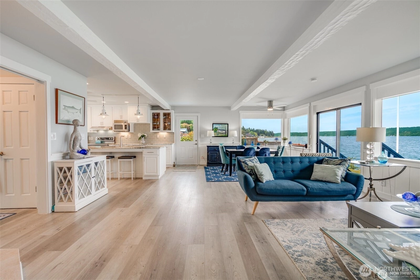 Low-Bank Waterfront Living | Calm Waters of Holmes Harbor From morning light across the harbor to quiet evenings by the shore, life here naturally centers around the water. Positioned approximately 20–30 feet from the shoreline, the home offers a uniquely close connection to the harbor and its ever-changing tides. Expansive windows bring in light, sky, and water, creating an open, airy feel throughout. Enjoy water views from the living and dining areas, kitchen, bedrooms, and upstairs spaces, with the shoreline as part of daily life from morning to night. Set on approximately 1 acre with 101± feet of low-bank frontage and 10,000± sq ft of private tidelands, the property offers a rare opportunity for an immersive shoreline lifestyle. Holmes Harbor is known for more protected, generally calmer waters than many other waterfront settings around the island—ideal for kayaking, paddleboarding, and a range of saltwater recreation. Nearby public boat launch adds to the appeal. Thoughtfully updated with a bright coastal style, the home features a main-level primary suite with a modern bath and curbless shower, additional bedrooms upstairs, and flexible living space for everyday comfort or hosting. The enclosed 60x20 garden area includes covered and open spaces, raised beds, and versatility for gardening or pets. No HOA. Potential for a DADU up to 1,200± sq ft (buyer to verify). Short-term rentals allowed. Close to downtown Freeland and Freeland Park.