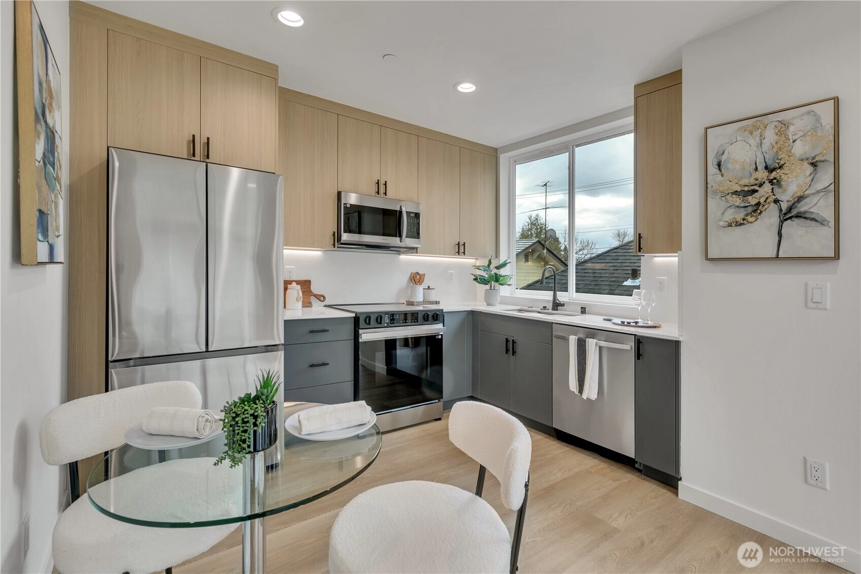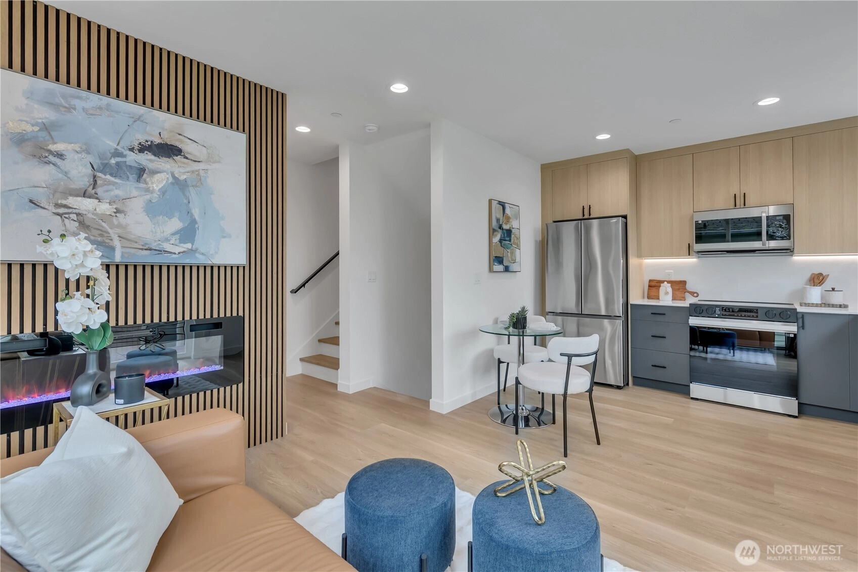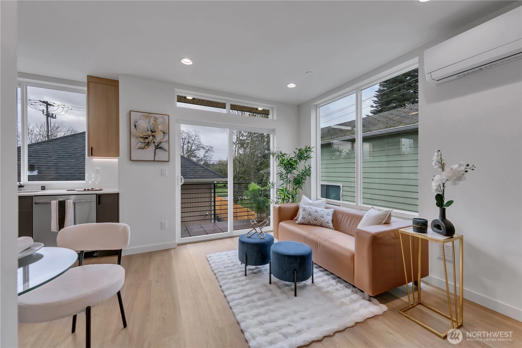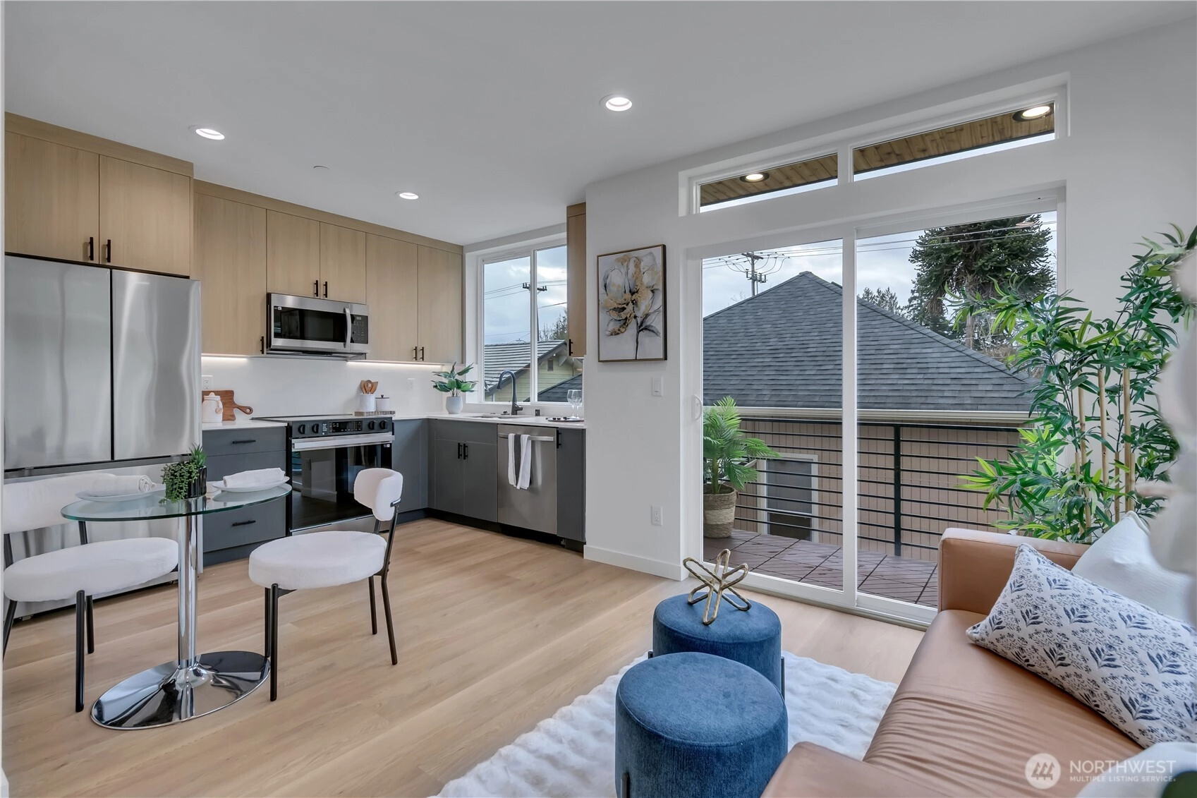 Welcome to this striking new-construction home where modern architecture meets urban convenience in vibrant Southeast Seattle. Designed with clean lines, open spaces, and contemporary style, this thoughtfully crafted residence blends form and function for today’s lifestyle. Inside, a stunning two-tone chef’s kitchen takes center stage, featuring sleek quartz countertops and backsplash for elegance and durability. The kitchen flows seamlessly into a bright, open living area anchored by a modern fireplace and extending to a private covered deck—perfect for relaxing or entertaining year-round. This smartly designed home offers 2 bedrooms, 2.5 baths, and a versatile flex room ideal for a den or home office. The top-floor primary suite is a private retreat, featuring a bathroom with heated floors, while the expansive rooftop deck captures peaceful park views for morning coffee or evening gatherings. Every home is built for comfort and efficiency with high-efficiency heating and air conditioning, modern finishes, and contemporary design throughout. Located just short walk to Othello Light Rail, nearby shops, dining, and parks. Limited-time $10,000 buyer incentive and one-year builder warranty included! NO HOA