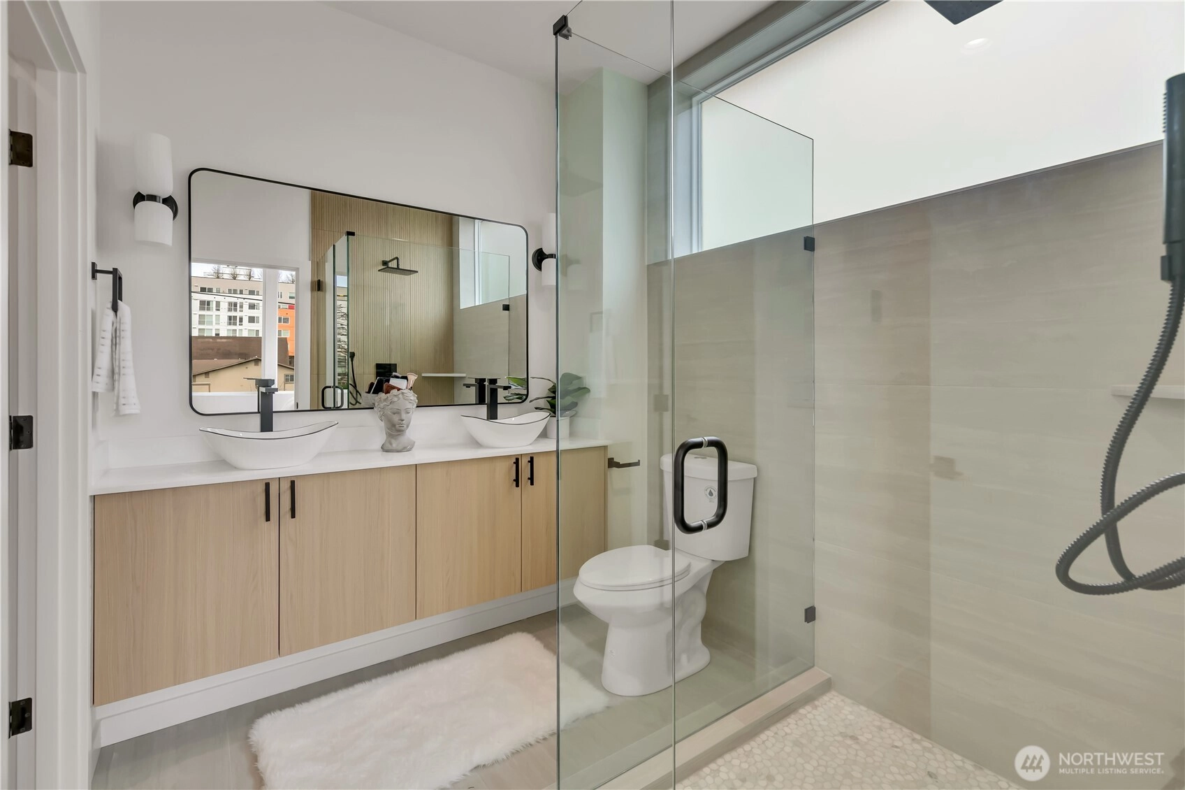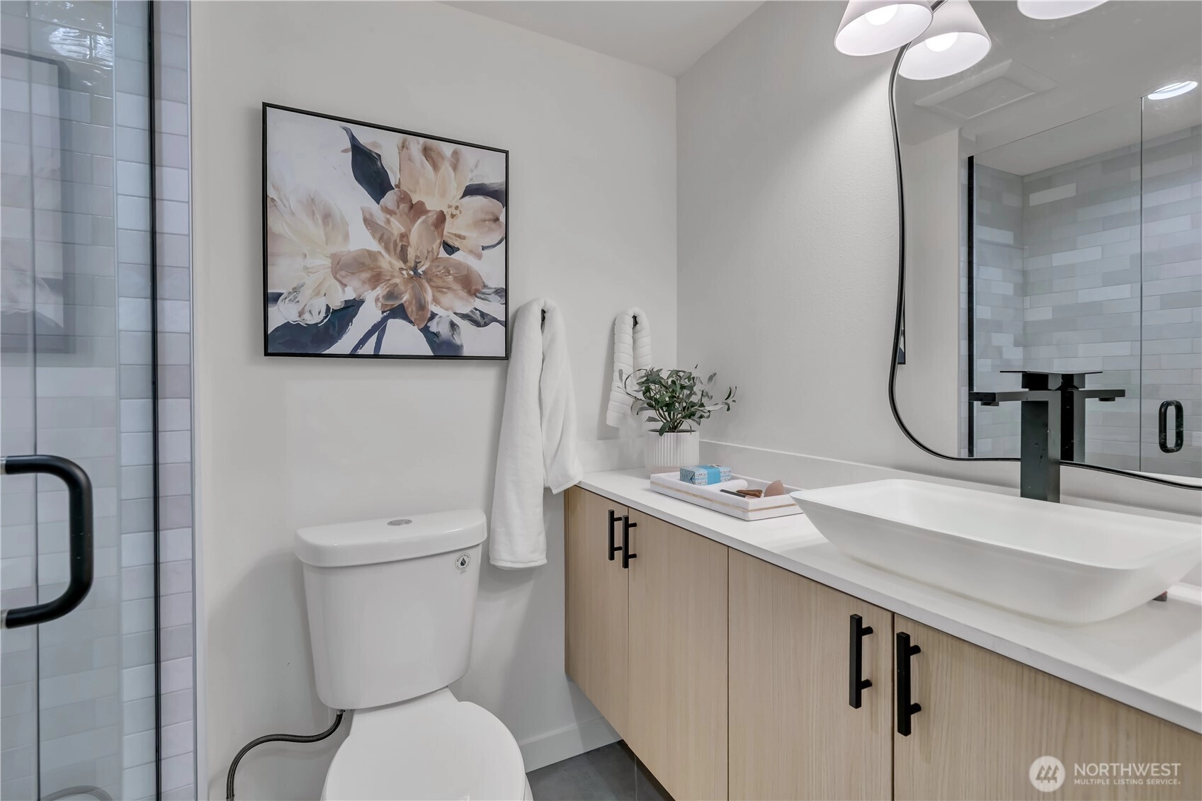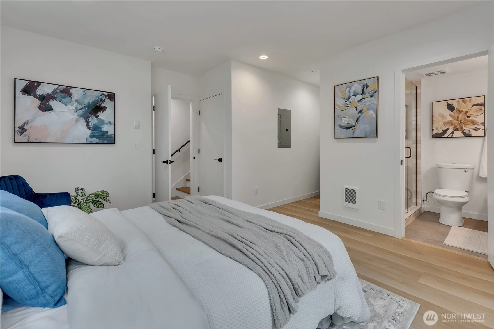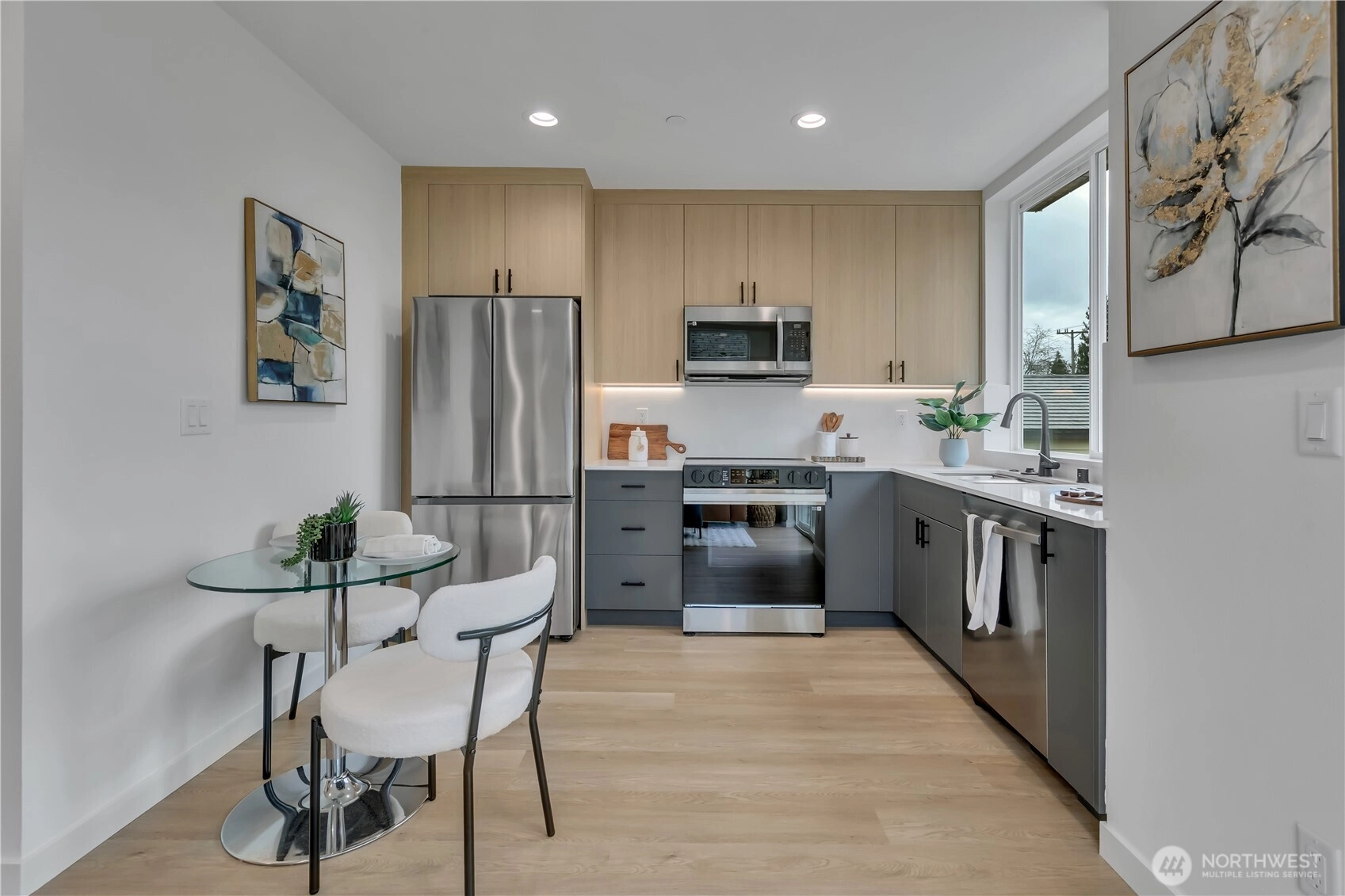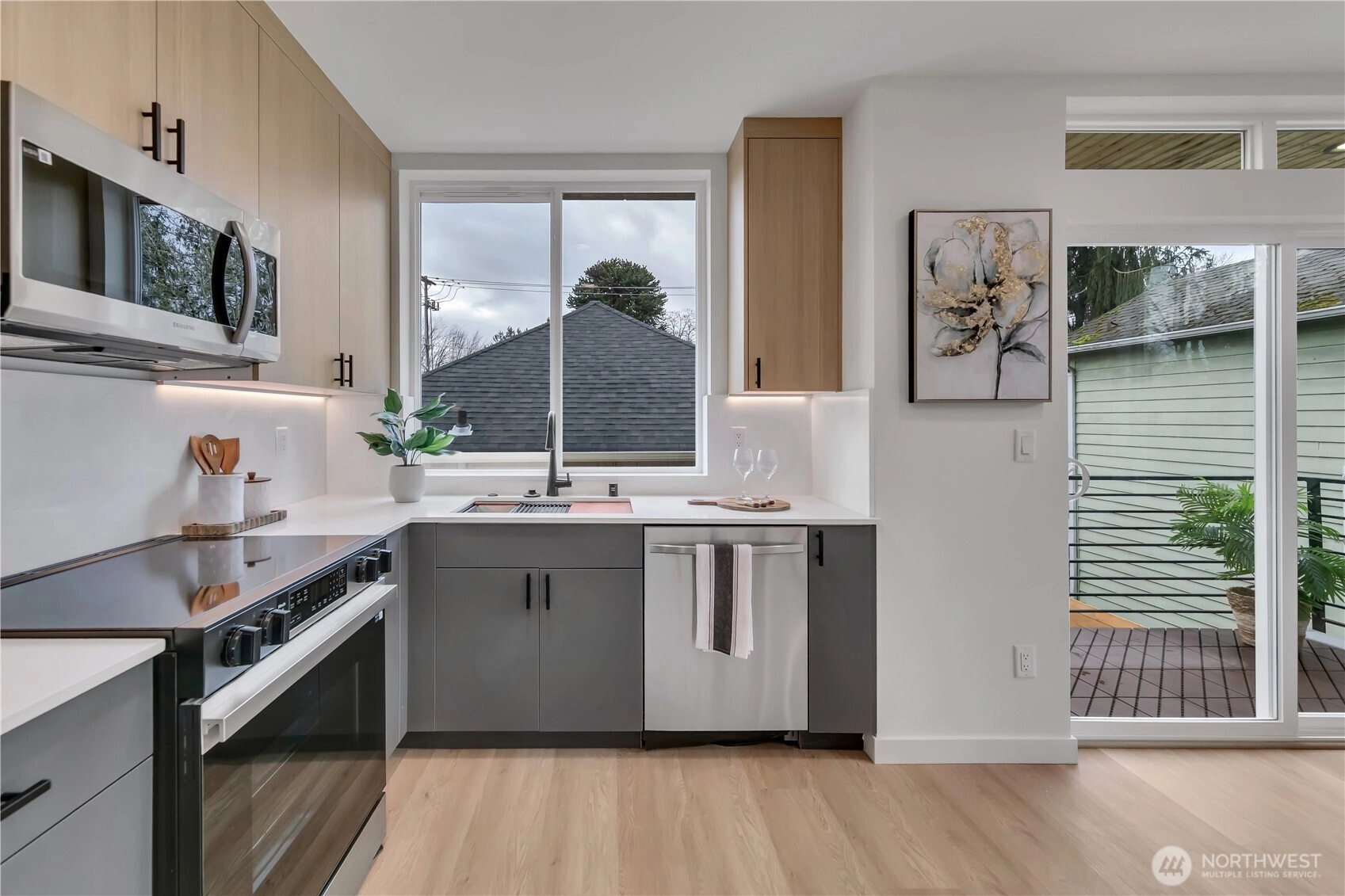 Welcome to this striking new-construction home where modern architecture meets urban convenience in vibrant Southeast Seattle. Designed with clean lines, open spaces, and contemporary style, this thoughtfully crafted residence blends form and function for today’s lifestyle. Inside, a stunning two-tone chef’s kitchen takes center stage, featuring sleek quartz countertops and backsplash for elegance and durability. The kitchen flows seamlessly into a bright, open living area anchored by a modern fireplace and extending to a private covered deck—perfect for relaxing or entertaining year-round. This smartly designed home offers 2 bedrooms, 2.5 baths, and a versatile flex room ideal for a den or home office. The top-floor primary suite is a private retreat, featuring a bathroom with heated floors, while the expansive rooftop deck captures peaceful park views for morning coffee or evening gatherings. Every home is built for comfort and efficiency with high-efficiency heating and air conditioning, modern finishes, and contemporary design throughout. Located just short walk to Othello Light Rail, nearby shops, dining, and parks. Limited-time $10,000 buyer incentive and one-year builder warranty included! NO HOA