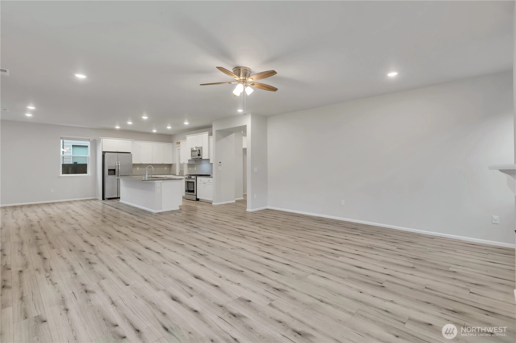 Experience the ultimate in multi-generational living with this beautifully upgraded Bainbridge model in the highly sought-after Daybreak community—where the main-floor Mother-in-Law suite (ADU), truly sets this home apart. This rare, fully private suite functions as its own residence, featuring a separate entrance, a complete kitchenette, dedicated laundry, and spacious living quarters—perfect for guests, extended living, or independent living flexibility. The rest of the main floor is designed for connection and comfort, highlighted by a seamless open-concept layout. The gourmet kitchen—with gas range, quartz breakfast bar, and ample storage—flows effortlessly into a bright, inviting living area centered around a cozy gas fireplace. Upstairs, retreat to the luxurious primary suite with a five-piece ensuite bath, accompanied by a versatile bonus room, private office, utility room, and two additional bedrooms. Step outside to a year-round covered patio, complete with grills and patio furniture, ready for effortless entertaining. A three-car garage outfitted with built-in storage and a mounted TV adds both function and style. Ideally located just steps from top-rated schools, parks, and scenic trails, this home offers the perfect blend of independence, comfort, and community.