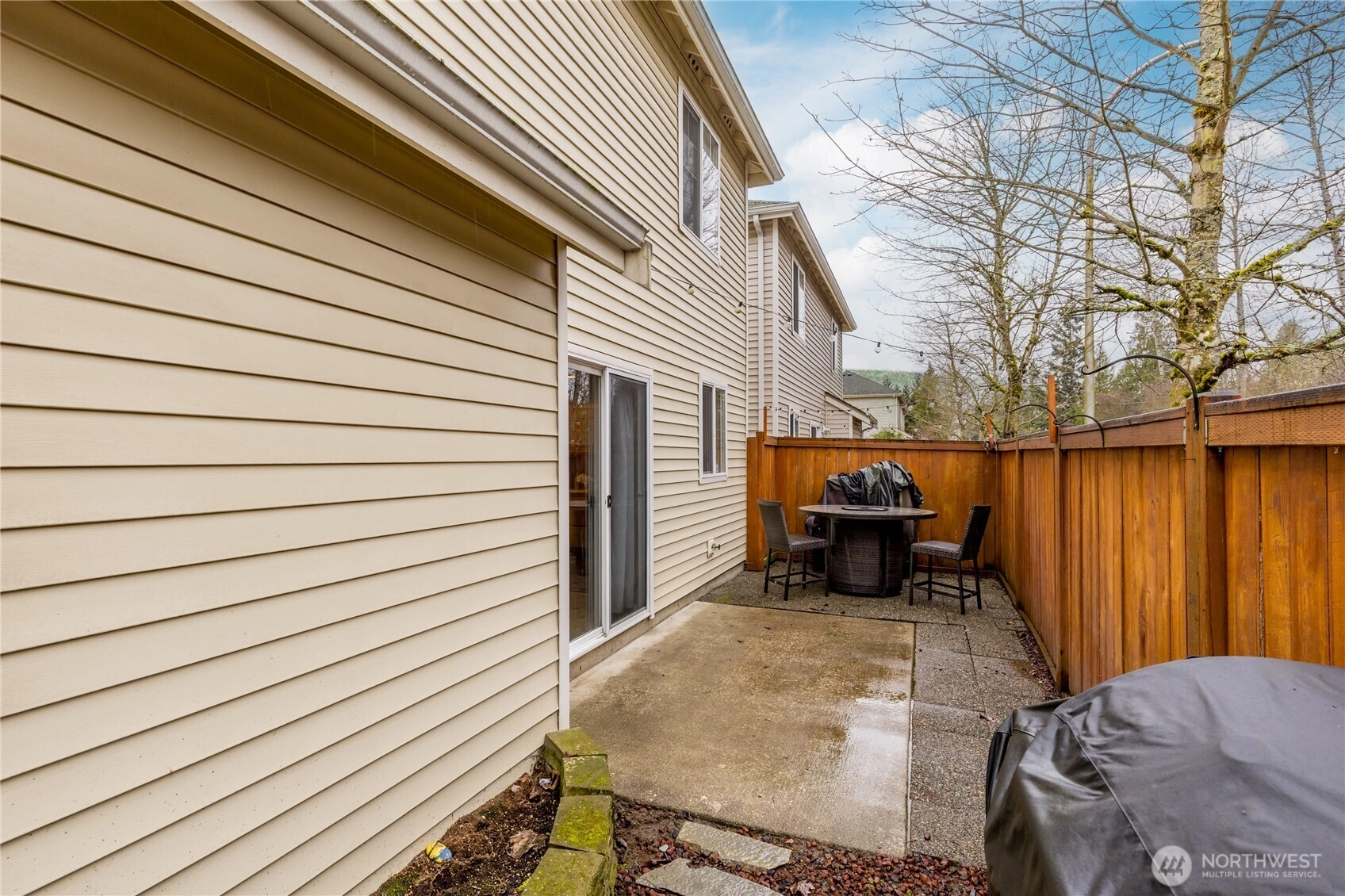 Discover the perfect blend of comfort and convenience in this beautiful move-in-ready condo located in the heart of Lea Hill. Situated at the end of a quiet cul-de-sac for maximum privacy and minimal traffic, this home welcomes you with a covered entry and a thoughtfully designed open-concept floor plan. The main level is built for modern living, featuring low-maintenance flooring throughout. The inviting living room, centered around a cozy fireplace and bathed in natural light from large, bright windows, flows seamlessly into the dining area and kitchen. Home chefs will love the functional kitchen, complete with a center island for extra prep space, a walk-in pantry, and stainless steel appliances that all stay with the home. Step through the dining room slider to enjoy your own private, fully-fenced yard - a rare find for condo living - complete with a patio and an included outdoor table and chairs. Upstairs, retreat to the spacious primary suite featuring dual sinks, a walk-in closet, and a private toilet/shower room. The upper level also boasts two additional bedrooms, a full hall bath, and a versatile loft space that’s perfect for a home office, gym, or play area. With an upstairs laundry room and an attached 2-car garage with ceiling storage racks, this home has it all. Enjoy easy freeway access and a prime location within walking distance to schools, shopping, and dining. This Lea Hill gem is ready for you to call it home!