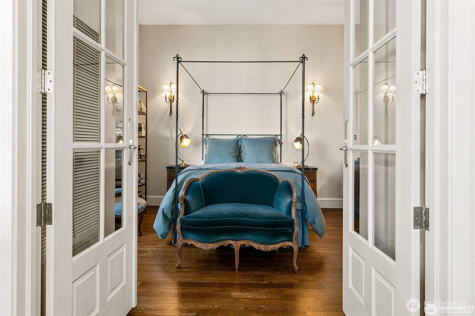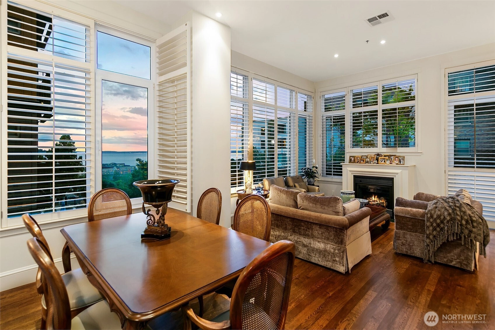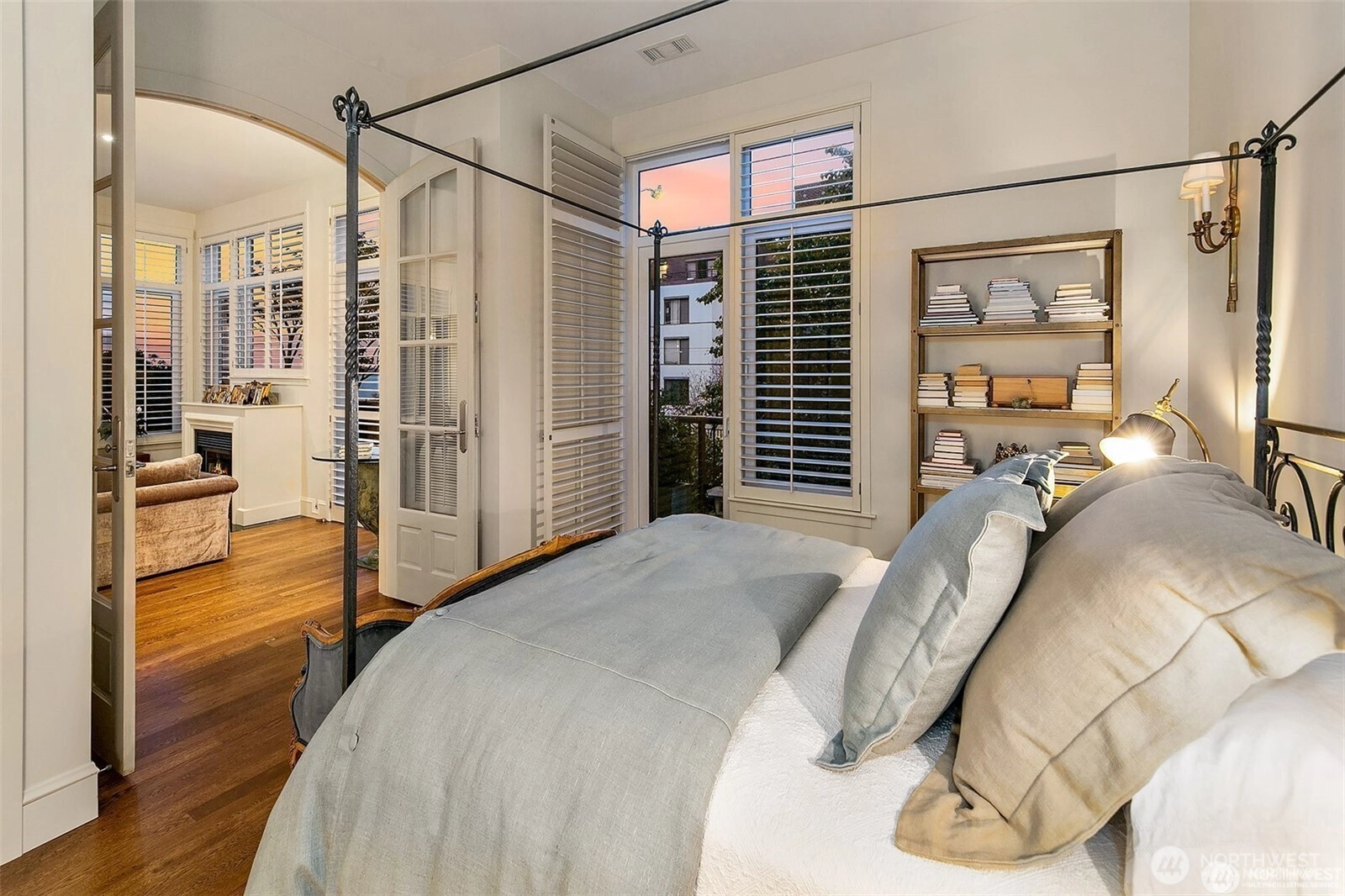 Stunning 2 bedroom NW corner Water View Condo perfectly perched above Elliot Bay, mins to Iconic Sculpture Park & Space Needle. Ideal location, just 2blocks to the waterfront. You'll feel like a tourist, enjoy dining at Edgewater hotel, Kraken games or concerts at Climate Pledge, fresh food from Pike Place market. Near Bainbridge ferry- Ez walks to stadiums. Friends will always want to visit you for the weekend, especially with 2 guest suites. Enjoy neighbor grab & go deli, nail salon & coffee shop. A well run boutique condo community, The Ellington offers owners lounge, gym & roof deck. A great lock and leave lux condo near Queen Anne and downtown. This location is one of Seattle's best kept secrets, I call it the "Elliot Bay neighborhood". Step into a "Broadmoor/Madison Park style home" at just the right size! Located on arguably the best side of the building home offering soaring 11-foot ceilings that amplify the sense of space and light. Curated finishes throughout, including herringbone-patterned hardwood flooring ,custom French inspired kitchen with solid wood cabinetry. Elegant oversized-Double French arched doors leading to the primary suite with stunning hardware, cedar-lined closet raised, 8-foot interior doors, and a bath design that is so pretty! Custom wood plantation shutters & enhanced custom lighting throughout, creating an atmosphere of timeless luxury & comfort + A/C, 2pk, 1 storage,24/7 concierge.