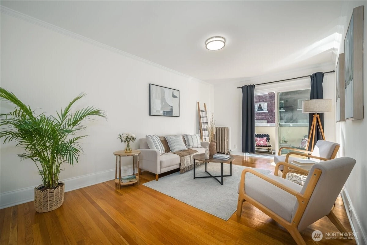 Perched atop Queen Anne, this beautifully renovated residence in the coveted Almalfi Co-op blends historic elegance with refined modern living. Designed by renowned architect Harlan Thomas, the home showcases timeless architectural details thoughtfully paired with sophisticated updates throughout. The gourmet kitchen, complete with a sunlit eat-in nook, offers both style and functionality. A tranquil, well-appointed bedroom provides a peaceful retreat, while the light-filled living room opens seamlessly to a welcoming social lanai—perfect for relaxing or entertaining. The classic clawfoot tub pays homage to the building’s storied past. Ideally situated just steps from vibrant shops and dining, and moments to Lake Union, the shores of Puget Sound, and downtown Seattle, this is urban living at its finest.