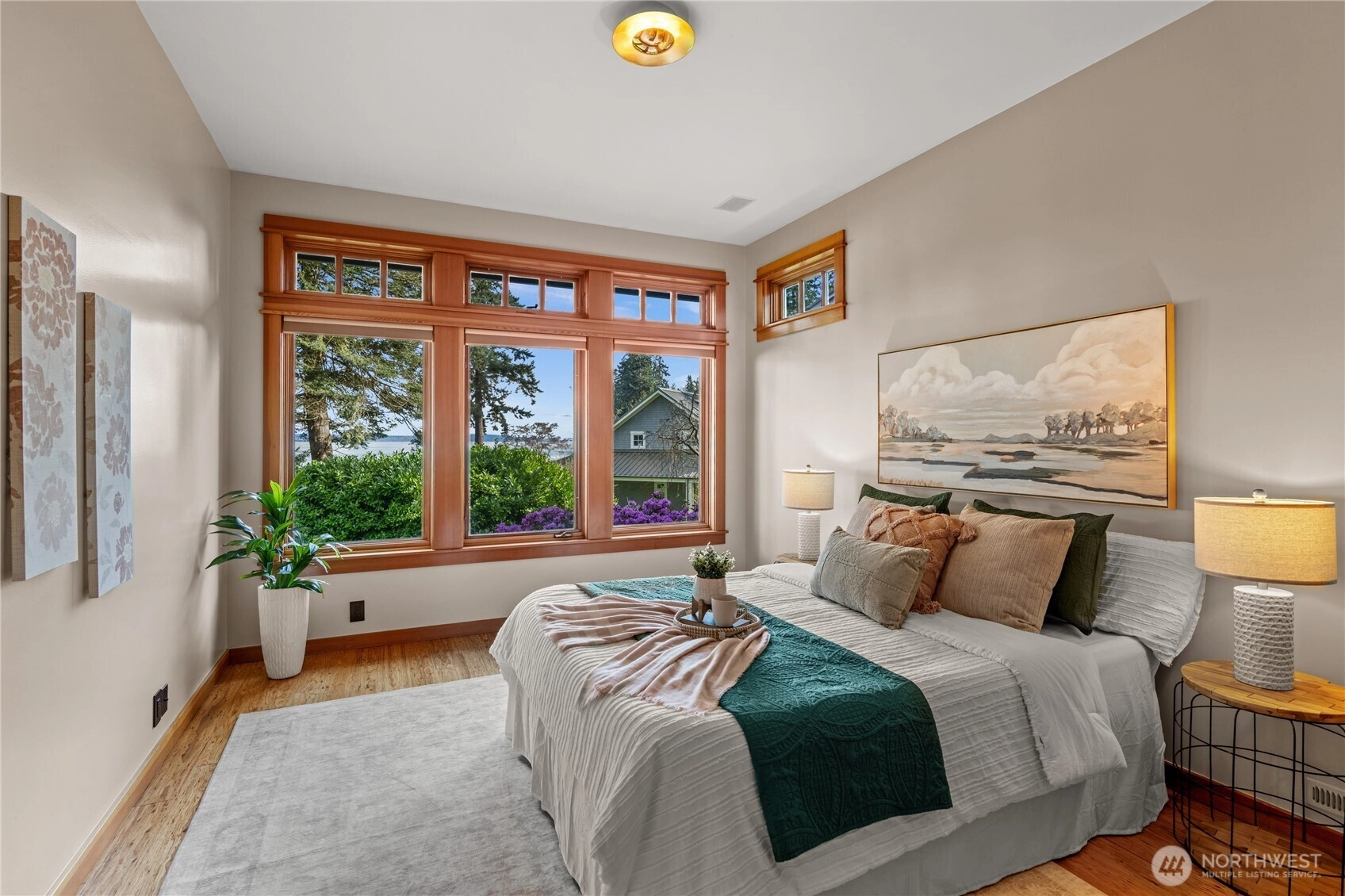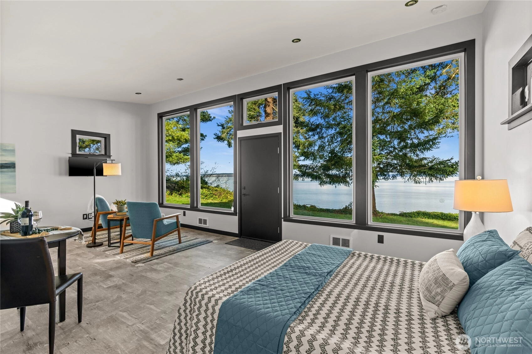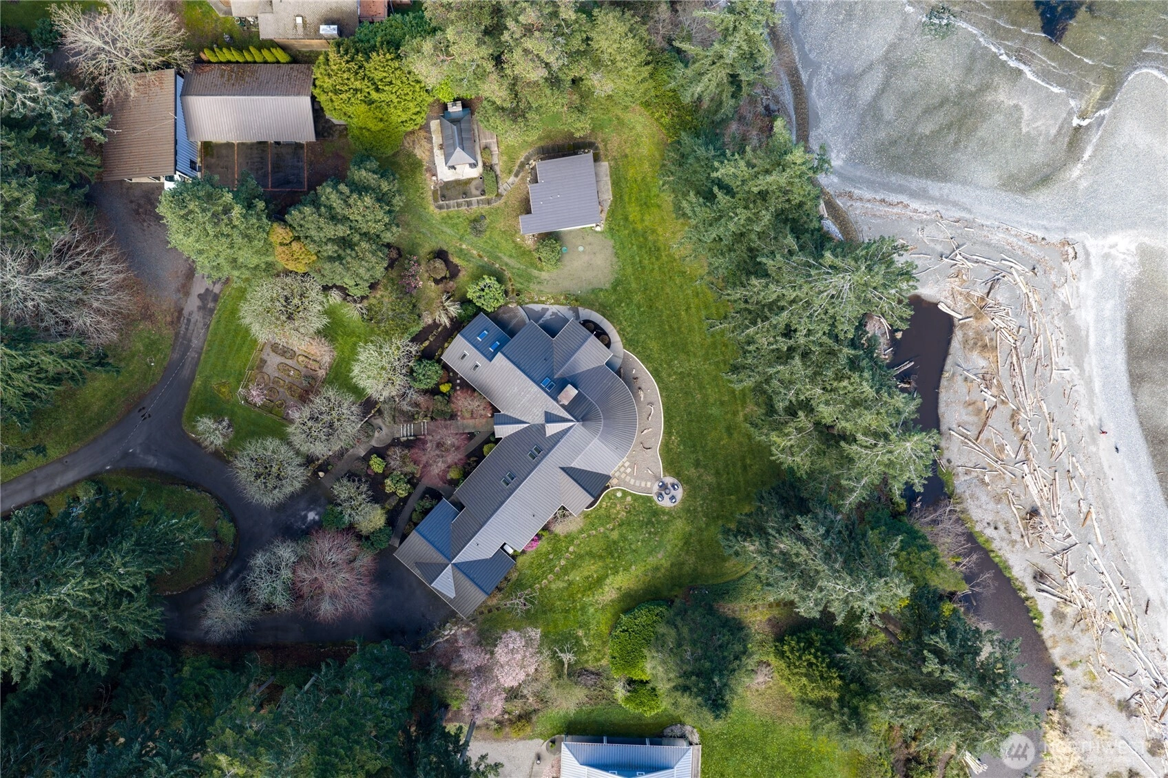 Wake to iconic Mount Rainier and Mount Baker views across 233 feet of accessible Puget Sound shoreline with rare tideland ownership to the water's edge. This nearly 4-acre, 3 tax parcel, waterfront estate delivers something exceptional. Designed by Myrvang Architects and built by Fairbanks Construction. Imagine entertaining in the great room where vaulted ceilings soar above a rounded living room, meticulously matched millwork, and full-plank fossilized eucalyptus and slate flooring, or cozying up beside the floor-to-ceiling Frazier River rock fireplace. Walls of windows frame water views that shift with every season. The chef's kitchen gleams with Sub-Zero, Thermador, and Dacor appliances in custom cherry cabinetry with granite counters. Primary suite features vaulted ceilings, built-in dressing room, and large walk in shower. The sunroom's four 9-foot folding glass doors open completely, dissolving the boundary between inside and out. Rounded out with guest quarters above the attached three car garage. 2nd tax parcel has its own slice of waterfront with 450 sqft home with bath and kitchenet, detached shop with a RV bay, 30/50 amp RV service, 3 bays accommodating up to 6 cars, and workshop. 3rd parcel boasts mature trees offering privacy from the road or potential to build a 3rd home or barn for a hobby farm. Fully permitted, Brockman built, beach staircase, mature gardens, fruit trees, multiple outdoor entertaining spaces and private beach make this property irreplaceable.