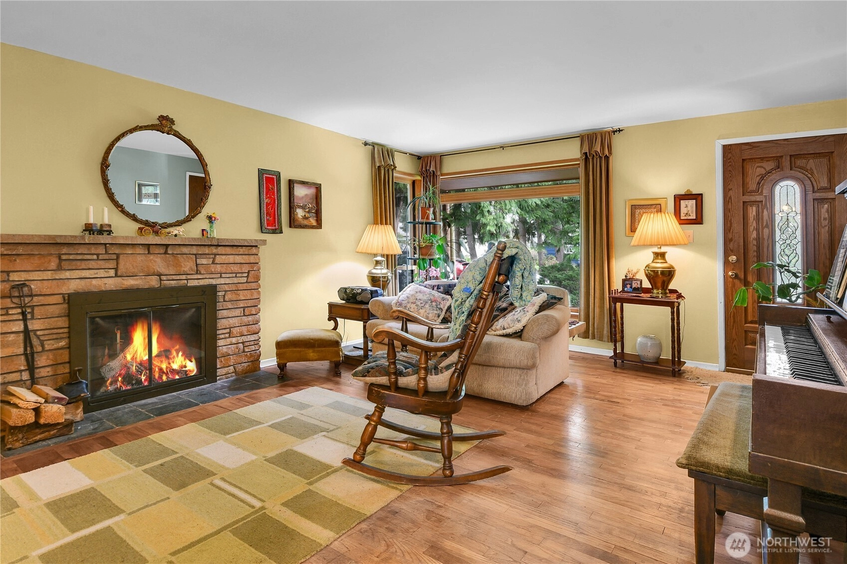 This charming 1870 square foot home sits on a flat corner lot in the heart of Lake Forest Park with 9427 square feet of yard space. There are 4 bedrooms and 2 full baths with hardwood floors throughout.The dining room opens to the living room and the kitchen which has eating space and another dining area. The main floor living room has a wall of windows and a cozy fireplace. There is another living area with wall to wall carpet that leads to a full bath and the 4th bedroom and has access to the back yard. There is tons of potential with this home with a little TLC. The back yard is fully fenced with a nice brick patio. A one car garage completes this home.
