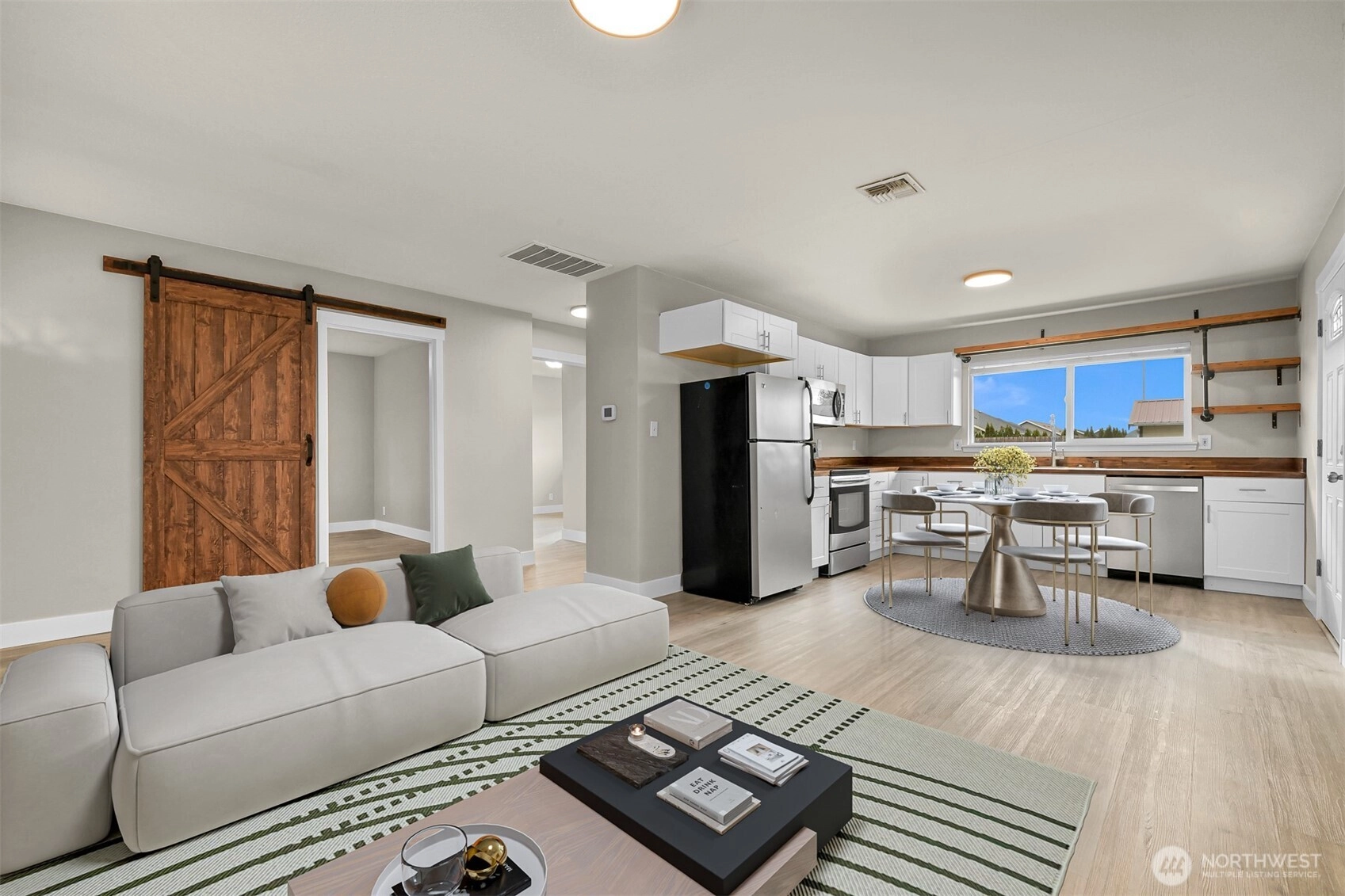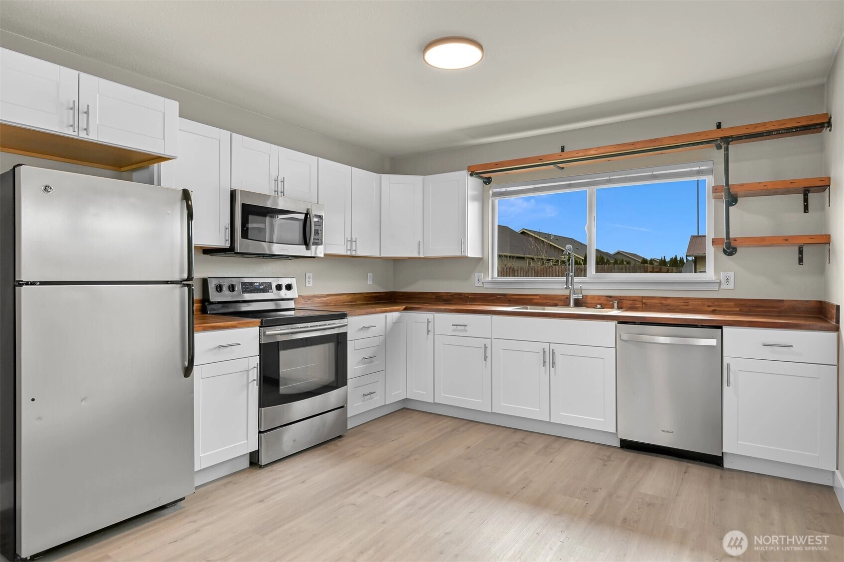 Charming rambler set on a spacious, freshly landscaped, park-like lot in the heart of historic and rapidly growing Nooksack! Surrounded by newer construction, this well-maintained home lives larger than its footprint and offers a perfect blend of comfort and character. Inside, you’ll find luxury vinyl plank flooring, an inviting eat-in kitchen with butcher block countertops, open shelving, and stainless steel appliances, plus updated lighting and fixtures throughout. Additional features include vinyl windows, a tankless water heater, a gas furnace, and a recently re-insulated crawl space for added efficiency and comfort. Step outside to enjoy the fully fenced backyard—ideal for entertaining, gardening, or relaxing—with an oversized powered shed that’s perfect for a workshop or hobby space. There’s even room to add a garage on the north side of the home, offering future potential and flexibility. A rare find in a growing community. Don’t miss your opportunity to make it yours!