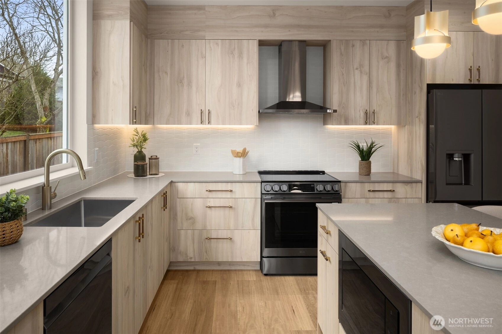 Exceptional new construction by Blackwood Homes at Dogwood Hollow, offering a thoughtfully designed multi-level home that balances modern comfort with functional, everyday living. This home offers intentional separation of living and sleeping spaces, providing flexibility for everyday routines, working from home, and hosting guests. The main living level features an open-concept kitchen, dining, and living area filled with natural light and designed for seamless flow and connection. The kitchen is centered around a spacious quartz island with generous prep space and seating, making it ideal for both casual dining and entertaining. The lower level includes two well-sized bedrooms and a full bath, offering versatile space for guests, office use, or additional living needs. The upper level is dedicated to a private primary suite complete with a walk-in closet and a thoughtfully designed ensuite bath, creating a comfortable and private retreat. A rooftop deck extends the living space outdoors, providing an inviting setting for relaxing, entertaining, or enjoying city and territorial views. EV-wired dedicated parking space, smart storage solutions, and quality finishes throughout. Conveniently located directly across from Brighton Playfield, and near Genesee Playfield, neighborhood cafes and restaurants, the Columbia City Farmers Market, light rail access, and quick access to I-5 and I-90.