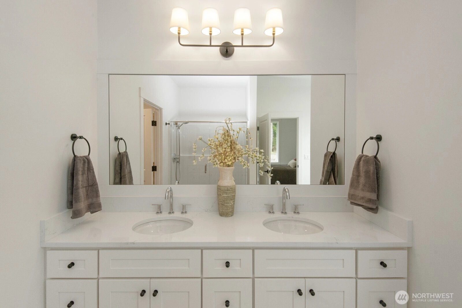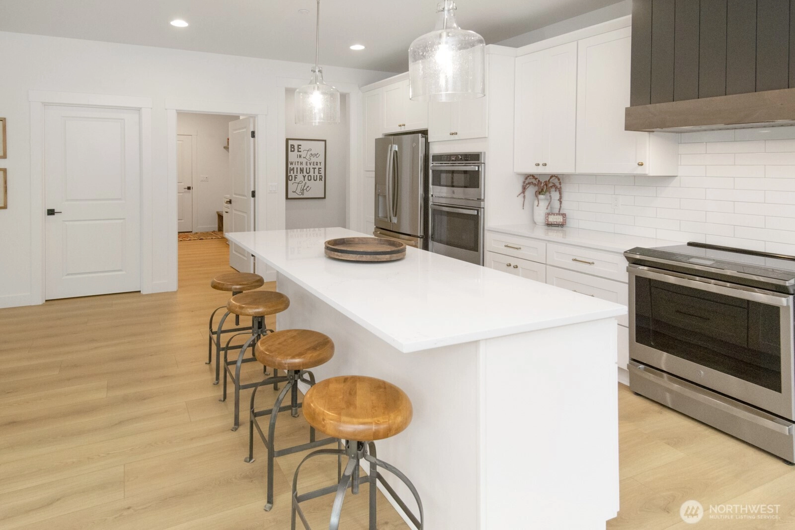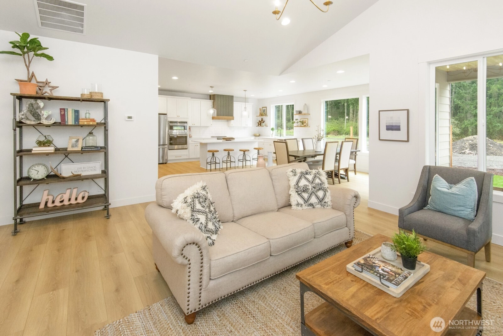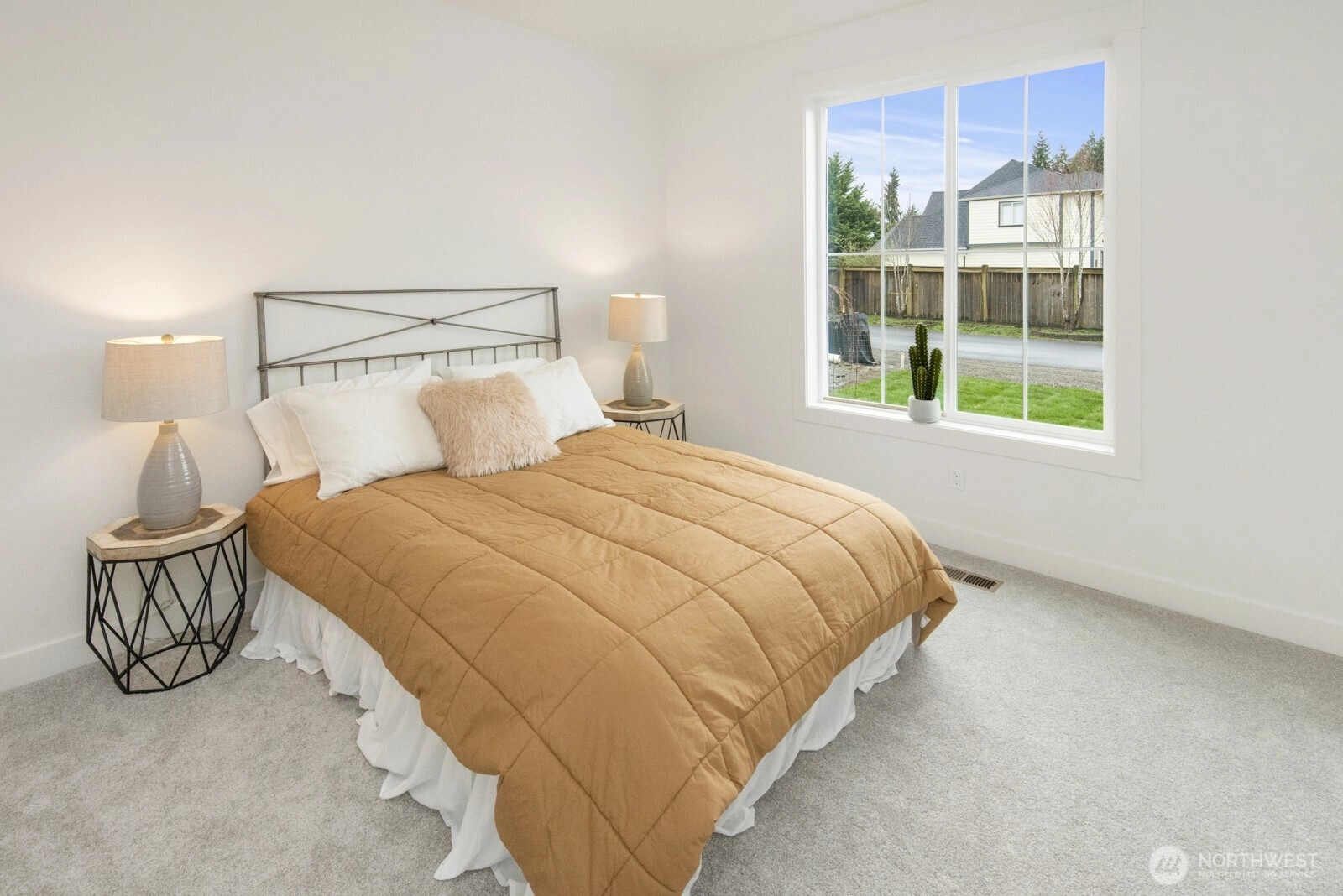 Zetterberg Custom Homes proudly presents its newest 5-lot community in Pierce County, showcasing over 50 years of trusted craftsmanship. Lot 5 features a beautifully designed 2,200 sq ft single-level rambler offering comfortable and functional living. Grand entry hall w/ custom beams, Dual chandeliers, simulated hardwood throughout hall & main living areas. The open great room flows seamlessly into a real cook’s kitchen with all the appliances: Smooth glass top electric range with oven number one, Double wall oven / microwave combination, Dishwasher, Refrigerator with filtered ice & water, creating an ideal space. This 3-bedroom, 2-bath home showcases Zetterberg’s signature attention to detail with white cabinetry, a handcrafted range hood, solid surface countertops, and carefully selected finishes throughout.Very Large mudroom with built in cabinetry, and wall feature mudroom bench and coat hooks off of the garage. A spacious 3-car garage that is fully taped and painted with upgraded insulated garage doors. Covered outdoor living (pre-wired for outdoor ceiling heater) area complete this home, offering the perfect blend of quality, comfort, and style in a limited-release community. Fully Fenced rear yards, front and rear yard landscaping with front yard irrigation included. Septic drainfield is on a separate tract which makes your yard completely usable. This home delivers the perfect turnkey upgraded blend of comfort, craftsmanship, and timeless appeal.
