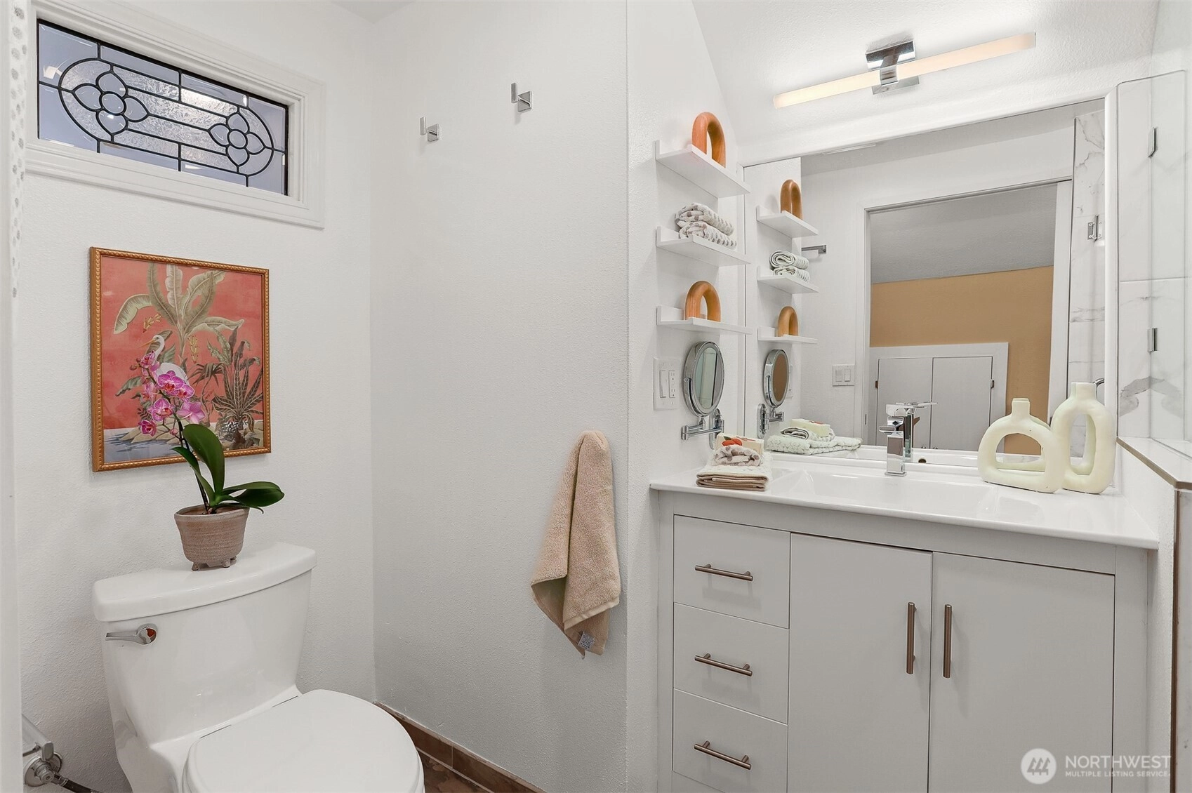 This thoughtfully updated, charming Phinney home offers 4 bedrooms, 2.25 baths and most of its original character intact. Over the past few years, upgrades have touched nearly every corner, culminating in a bright, effortless living space. The kitchen has been reimagined with an open layout, stainless steel appliances, and seamless access to an expansive new composite deck that overlooks the back yard. Light-filled and tranquil, the home flows with a relaxed ambience that invites both everyday living and entertaining. The entire top floor now serves as a luxurious primary suite, featuring a renovated 3/4 bath, a newer mini-split system for comfort (A/C), and a sunny deck with generous southern exposure. All hardwood floors have been replaced, and the fully finished lower level gains brightness and flexibility with the addition of two large egress windows. A possible 5th bedroom on the lower level awaits only a closet, while a dedicated laundry room and a half bath complete this level. Additional conveniences include a single-car attached garage and an extra off-street spot. The neighborhood is a pedestrian’s dream, with Phinney, Green Lake, Ballard, and Crown Hill all within easy reach. Nearby, you’ll find parks, restaurants, retailers, grocers, and even a superb butcher just a few blocks away. There is so much to love in this welcoming community—it's the kind of place you’ll be excited to call home.