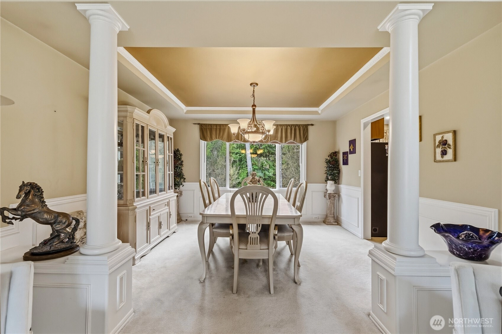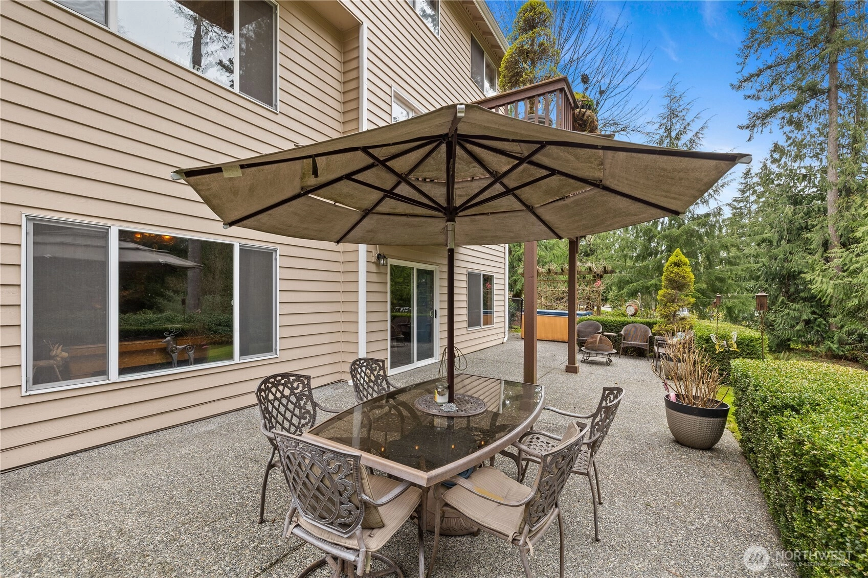 Welcome to this desirable and elegant home in the sought-after Georgetown Estates sitting on just over half-acre lot. Inside, soaring ceilings and abundant natural light enhance the formal living and dining areas. The open floor plan continues into the kitchen, featuring granite countertops, an island, breakfast nook, and plenty of storage. The adjoining family room includes a gas fireplace with a custom hearth, creating a warm and inviting gathering space. The main level offers a flexible bedroom or office, a powder bath, and a convenient laundry room. On the upper level, find the generous primary ensuite with a private deck, double-sided gas fireplace, and spacious 5 piece bath plus three additional bedrooms, an office or 6th bedroom, and a full bath. The lower level provides versatility with a second kitchen, 5th bedroom, 3/4 bath, under stair storage, and additional bonus areas—perfect for hobbies, recreation, multi-generational or ADU opportunities. Mature landscaping surrounds the property and the home backs to a NGPA, providing privacy and a serene natural backdrop. Served by the award-winning Lake Stevens School District, this location offers quick access to Costco, South Lake Stevens, Hwy 9, Hwy 2, and is just 5 miles from downtown Snohomish.