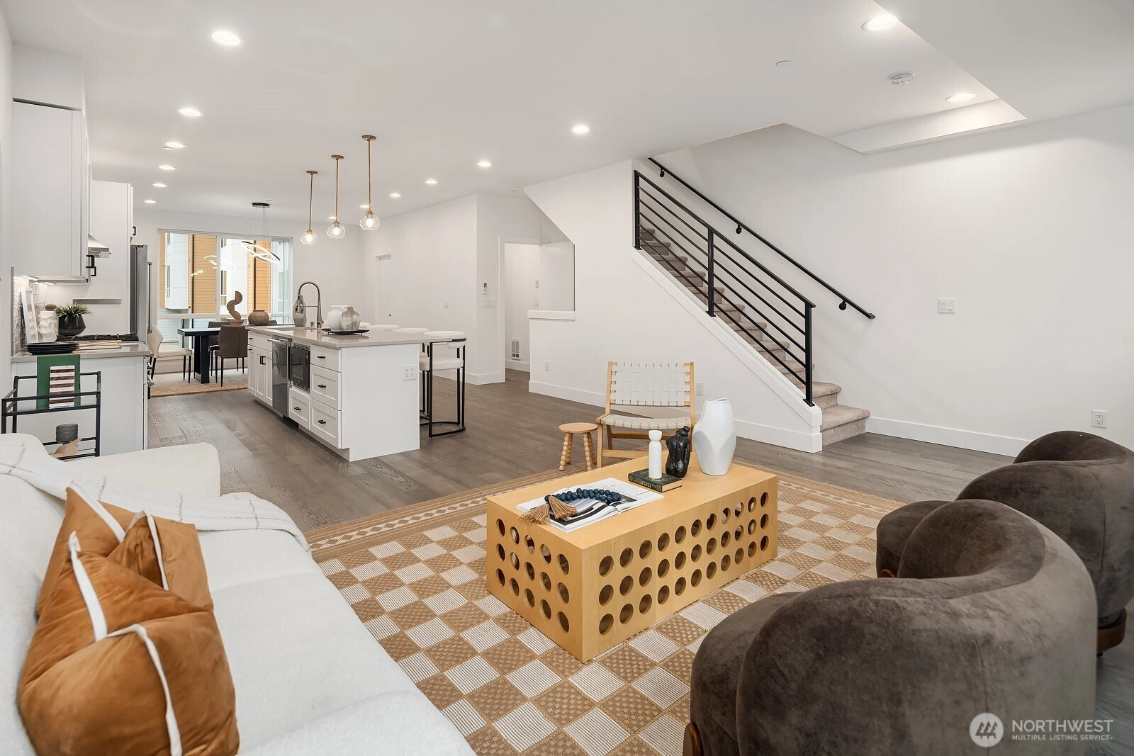 Low HOA, move-in ready luxury townhome at Hiatt Park. This 3 bed, 3.5 bath home features a bright open-concept floor plan designed for modern living and entertaining. High ceilings and large windows provide abundant natural light throughout. The chef’s kitchen showcases a grand-sized island, white quartz countertops, premium Italian appliances, and a spacious walk-in pantry. Two primary suites offer large walk-in closets and luxury finishes, including custom lighting and tile shower surrounds. Flexible third bedroom or office ideal for remote work or guest. On-demand tankless water heater, EV charging ready, and double car garage. Conveniently located in the heart of Kenmore near the Burke-Gilman Trail, Lake Washington, shops, dining, everyday amenities, and within the highly sought-after Northshore School District.