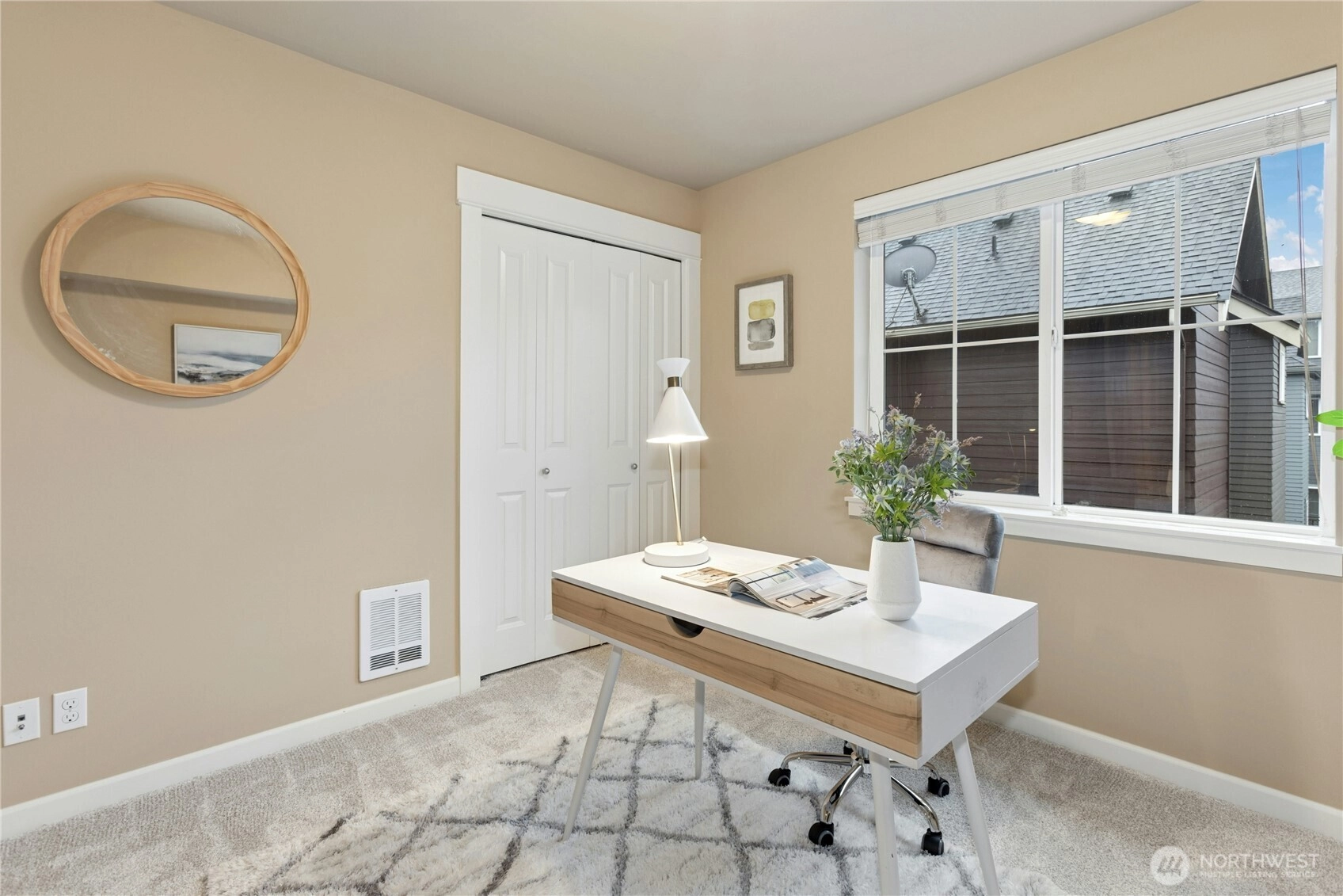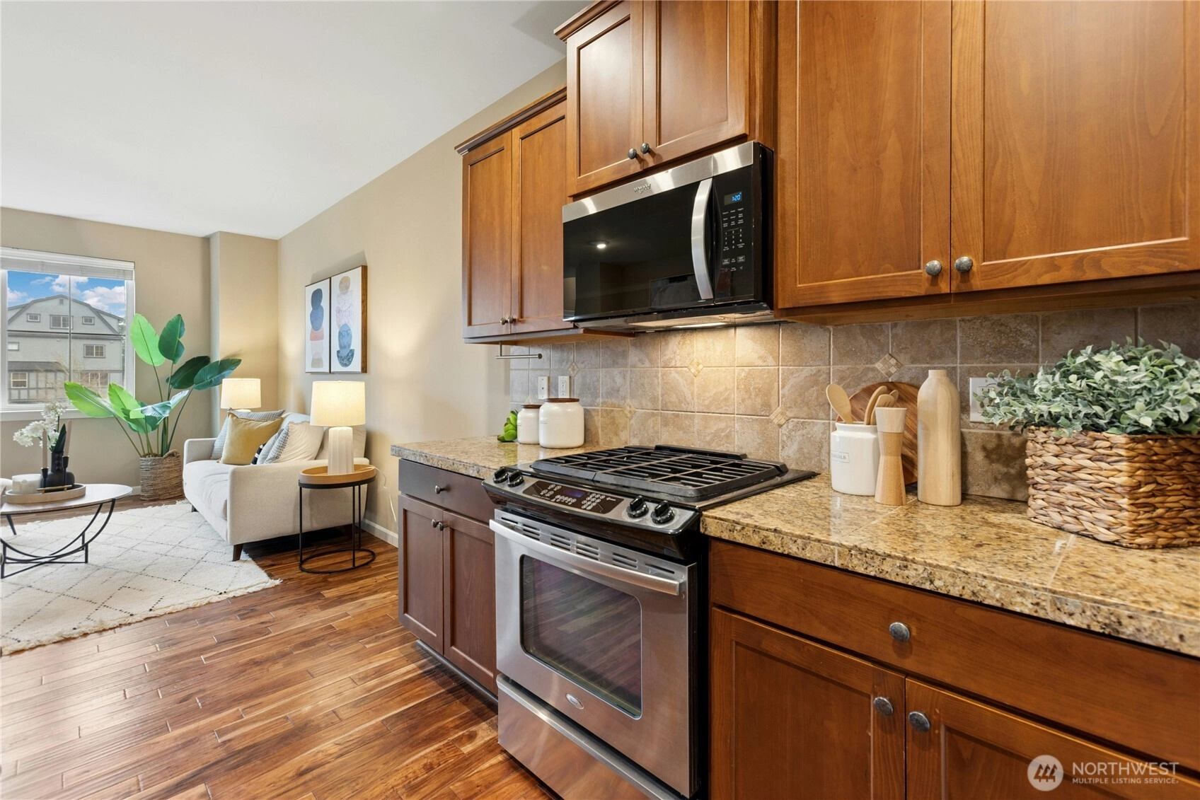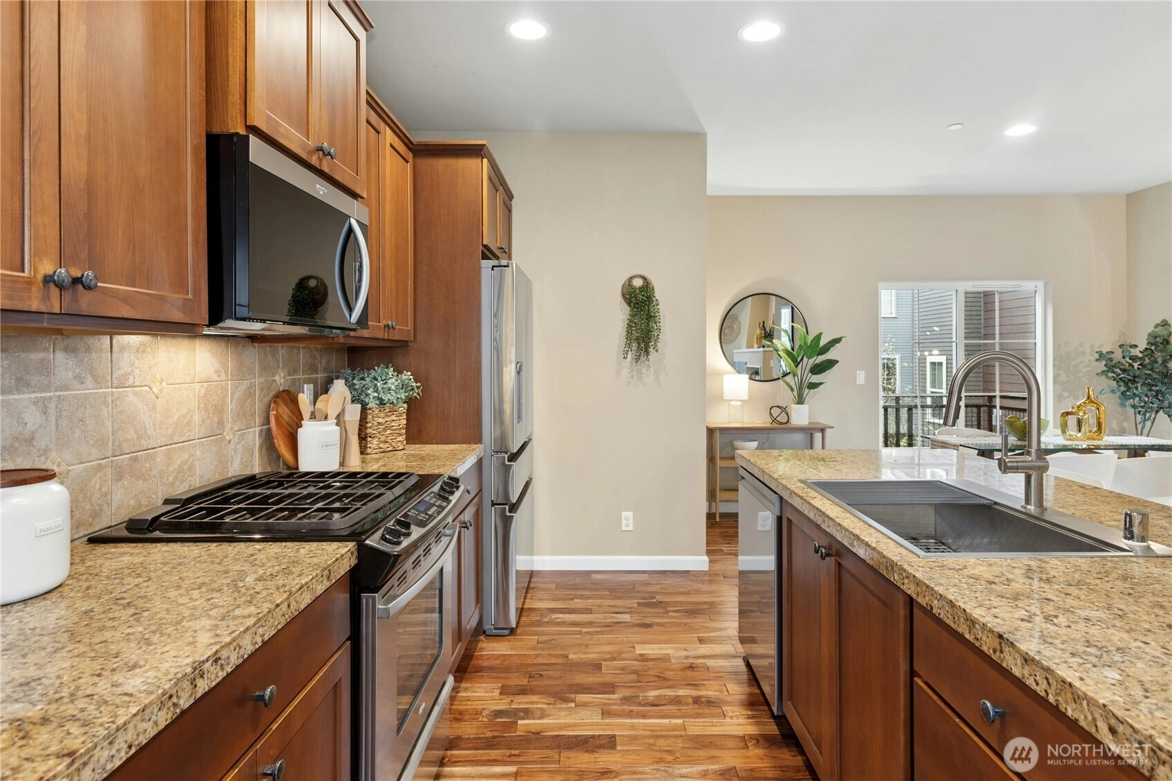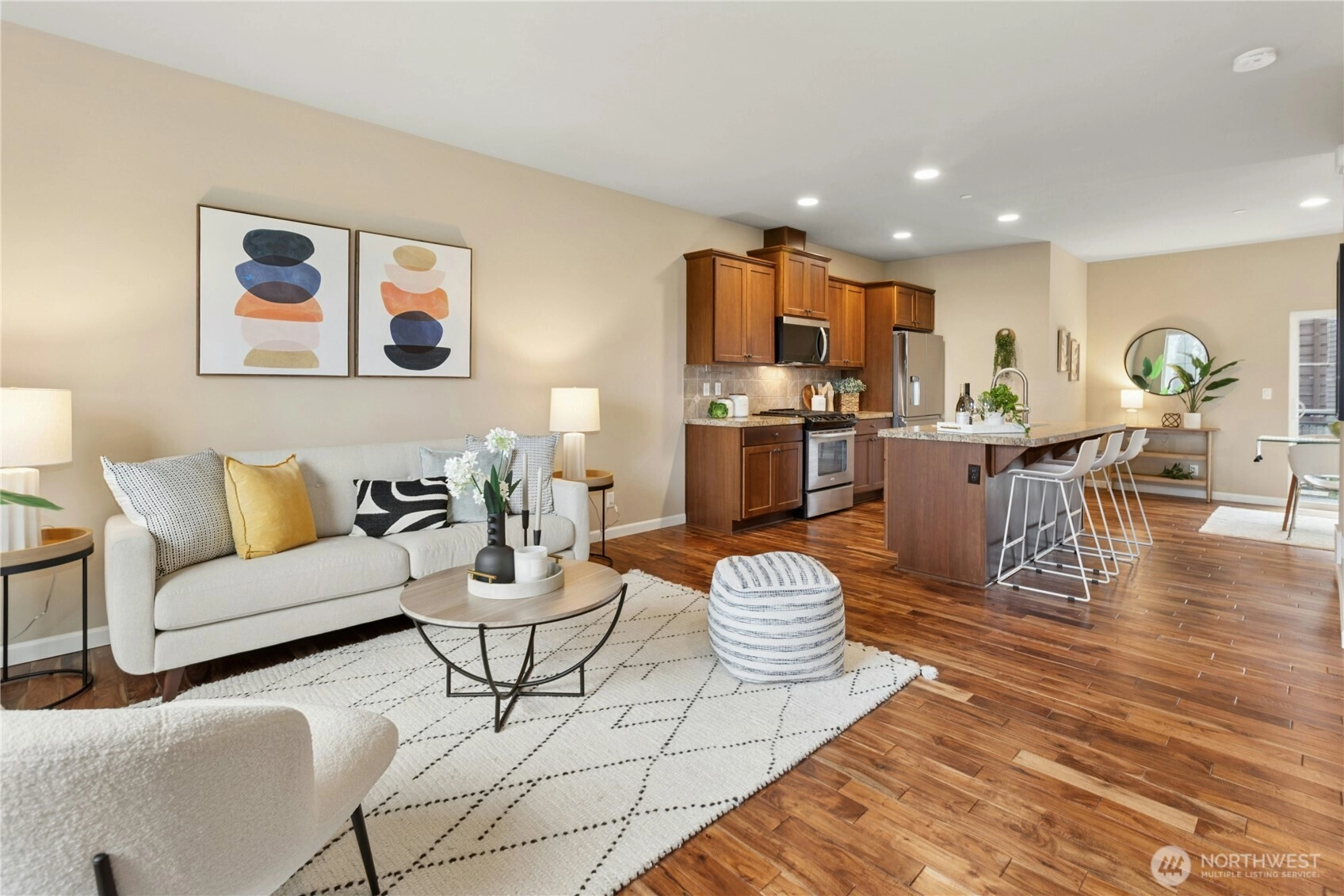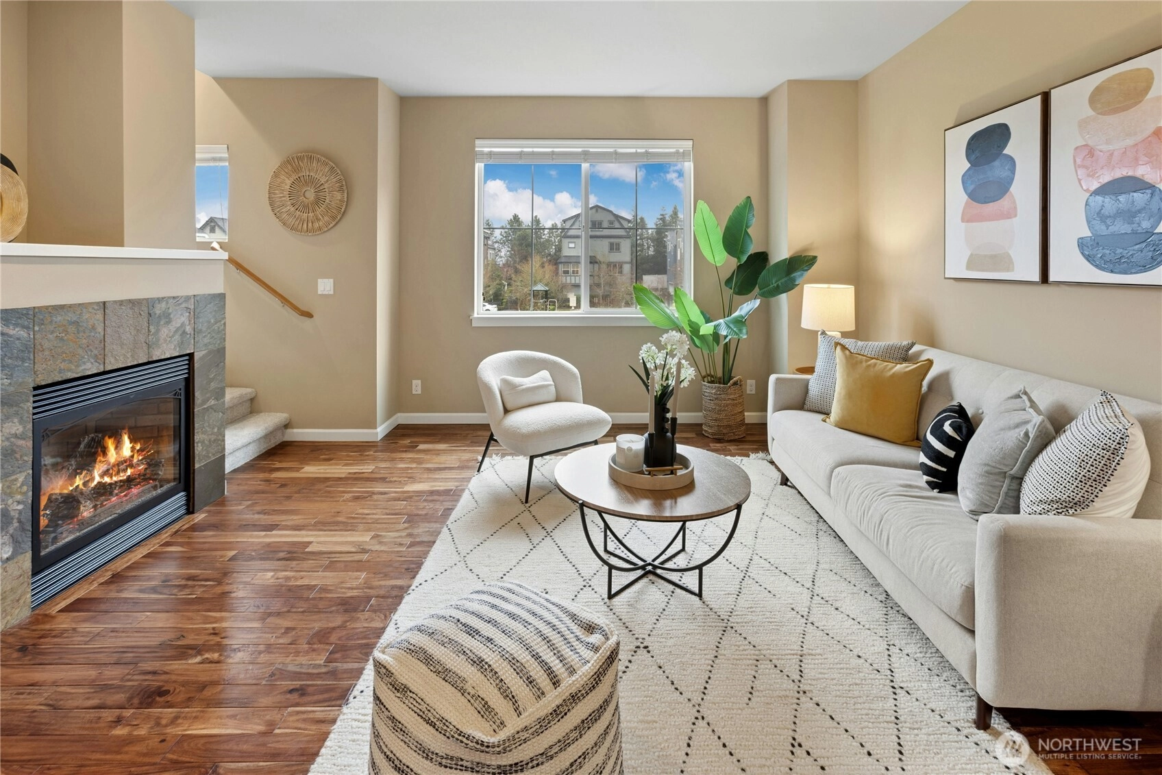 Impeccable 3-bedroom West Highlands Park townhome, located on the park! This updated and charming townhome within the coveted West Highlands/WestRidge neighborhoods offers convenience and sophisticated lifestyle. Checkmarking all the boxes this home has a bright and inviting ambience. The front entry welcomes from a park-side patio area with new exterior and interior paint along with brand-new carpet throughout. The eat-in kitchen shines with refinished cabinets and sleek stainless newer appliances, large kitchen island and a 1-basin sink! An open concept at main with beautiful hardwood flooring includes park views, gas fireplace and deck balcony off dining. Bedroom levels offer a nice primary suite facing the park-setting with Mt. Baker views, additional bedroom or office, plus a 4th level bedroom, and a separate full bath. Add a spacious 2-car garage with overhead storage hangers and an updated belt driven garage door opener and you have it all! All appliances and freezer stay. Tankless hot water heater was recently serviced. Enjoy being part of the vibrant Issaquah Highlands community, with access to parks, trails, shopping, dining, and top-rated schools. A perfect blend of modern updates and prime location - come check this one out!