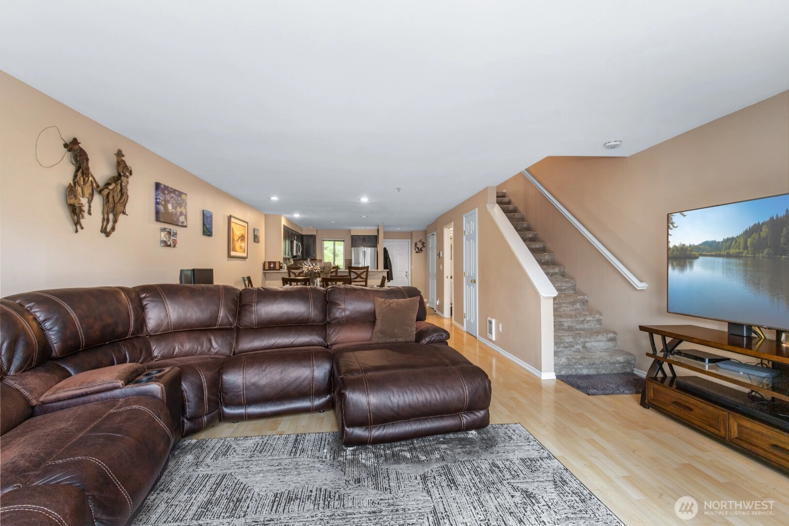 Tucked away in a serene, private setting, this beautifully updated two-story home blends comfort, style, and everyday convenience. The spacious open-concept layout is perfect for modern living, featuring a sleek kitchen with slab granite countertops, an inviting eating bar, and a double sink—ideal for both entertaining and daily use. Unwind in the light-filled living room beside the cozy fireplace, or step outside to your private balcony to take in peaceful territorial views, complete with additional storage. The impressive primary suite is a true retreat, showcasing vaulted ceilings, dual closets, and a private four-piece bath. A generously sized second bedroom also offers its own private balcony, creating a perfect space for guests or a home office. Additional highlights include two parking spaces—an extra-wide garage and an uncovered spot—plus HOA coverage for water, sewer, and garbage. Community amenities feature a sports court and RV parking, all within the highly sought-after Northshore School District. Conveniently located near Hwy 522, I-405, parks, trails, and more, this home offers the perfect balance of tranquility and accessibility.