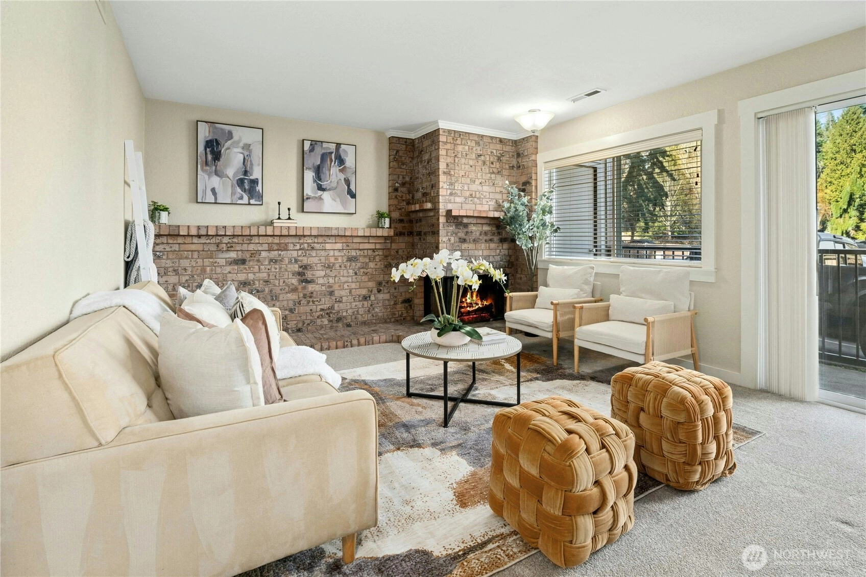 Welcome home to this beautifully refreshed condo in the heart of downtown Bothell, where comfort, convenience, and walkability come together. With brand new carpet and all new kitchen appliances, this move-in ready home offers stylish, low maintenance living. The oversized primary bedroom easily accommodates a king size bed with large nightstands and features two closets providing the kind of storage that’s often hard to find in condo living. In the living room, a cozy wood-burning fireplace with a striking focal wall creates a warm and inviting space to relax and unwind. Enjoy the everyday convenience of an in-unit washer and dryer, stair-free entrance, and one covered parking space, along with ample guest parking. Step outside and take advantage of the incredible location just a short walk to the Bothell Library, the scenic Burke-Gilman Trail, and the shops, restaurants, and charm of downtown Bothell. Community amenities include a clubhouse with sauna and an outdoor pool, offering space to relax or gather with neighbors. Thoughtful updates, an unbeatable walkable location, and no rental cap make this a rare opportunity in the heart of Bothell.
