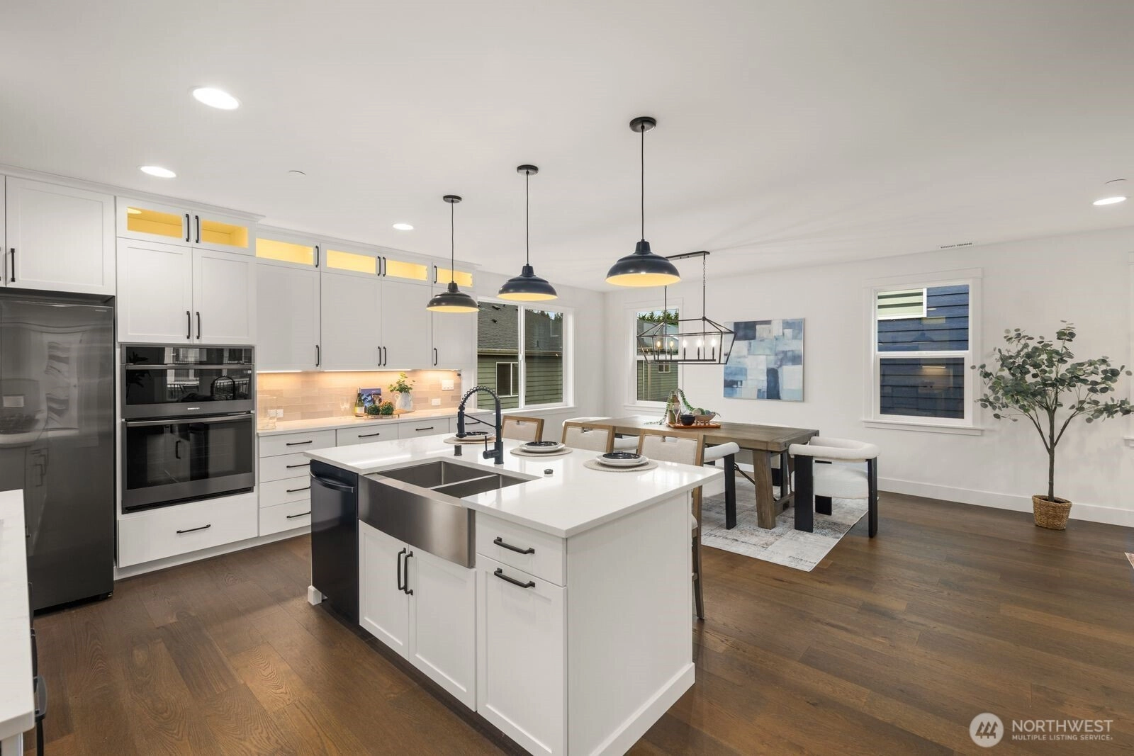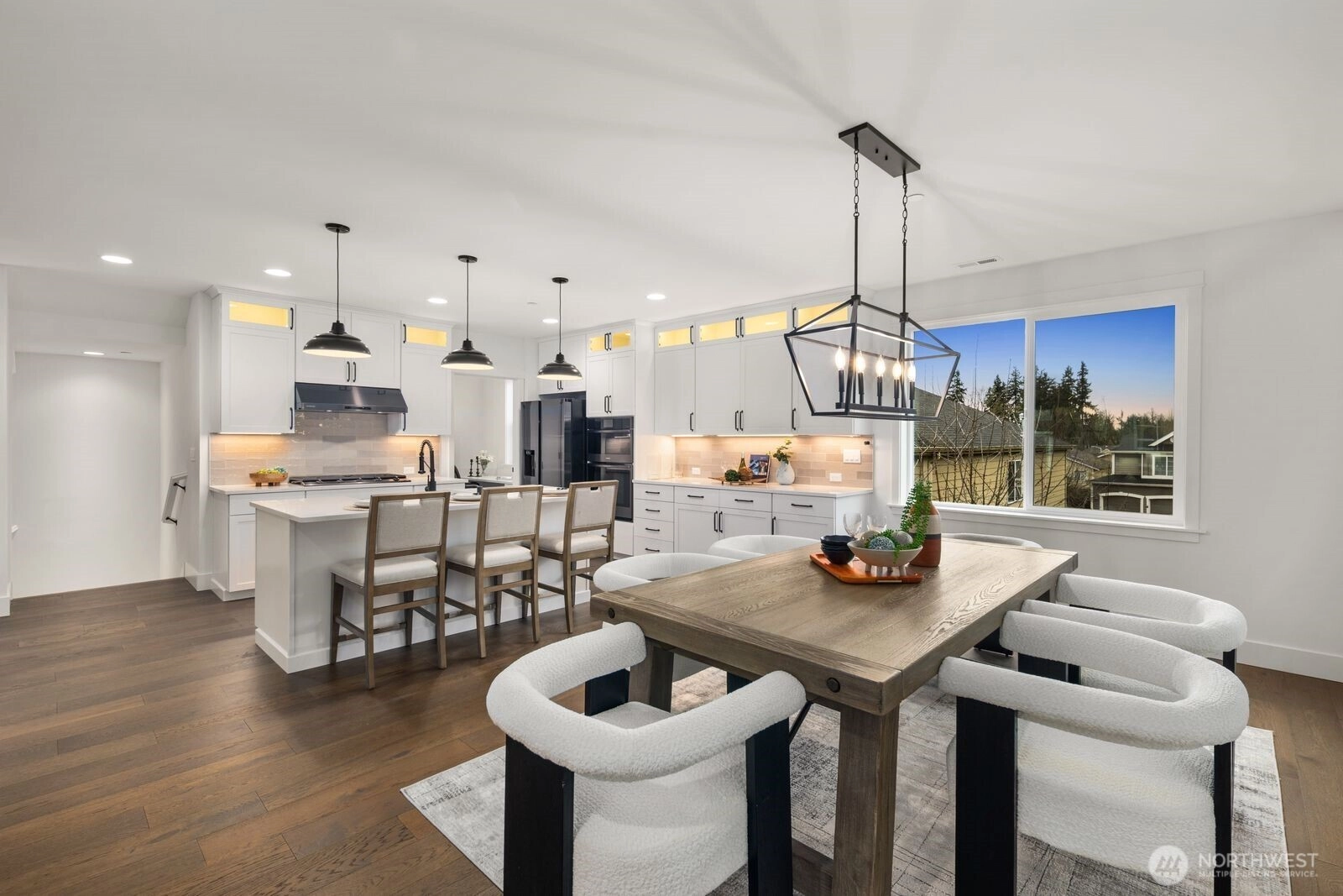Tucked into Bothell’s desirable North Creek area, this home pairs a fresh, modern feel with everyday convenience an easy place to settle in, spread out, and enjoy the best of the Eastside. Top-rated local school options in the Northshore School District include Kokanee Elementary rated 8, and North Creek High School rated 8. Inside, thoughtful finishes create a polished, welcoming atmosphere, including engineered hardwoods and designer tile accents. A cozy gas fireplace anchors the main living space, while smart-wired features add effortless ease for today’s connected lifestyle. A spacious walk-in pantry and generous closet storage keep everything organized, and comfort comes standard with efficient heating/cooling. Outside, an in-ground sprinkler system helps keep the landscaping looking its best with minimal fuss—ideal for relaxed outdoor living and low-maintenance weekends. Errands and evenings out are a breeze with nearby favorites like Safeway, PCC Community Markets, and QFC, plus dining and daily essentials around Canyon Park. Fitness options are close at hand, including 24 Hour Fitness, Orangetheory, and Planet Fitness. When you want fresh air, explore the informal trails and wetlands at North Creek Forest, or head to the Sammamish River Trail and Park at Bothell Landing for scenic strolls and waterfront vibes. For bigger shopping days, Alderwood Mall and The Village at Totem Lake are an easy drive away. *DOES NOT MAP - use 4113 221st St SE, Bothell for GPS*